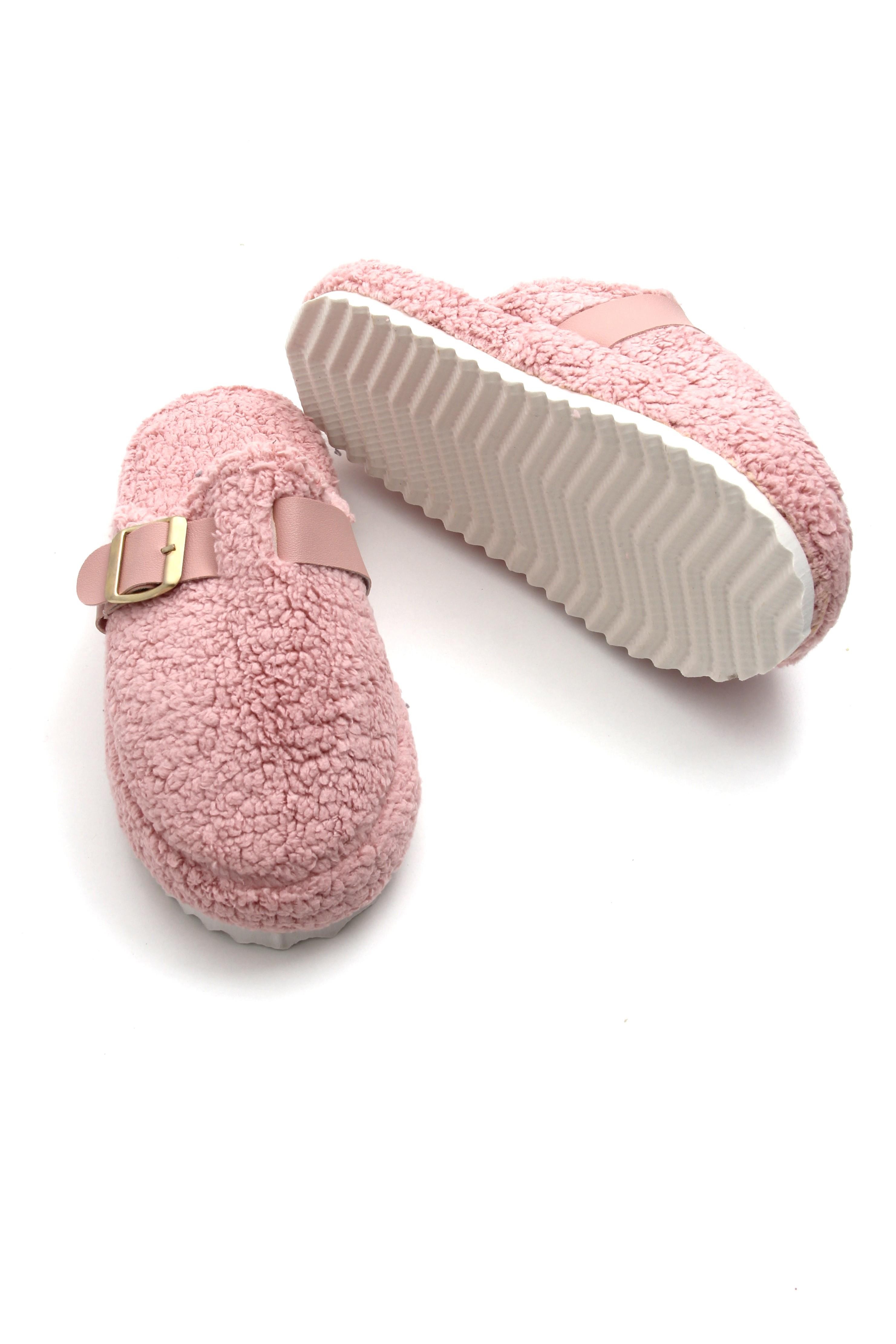Kadın Kışlık Tek Tokalı Pembe Ev Terliği (251394TRLXPMB)