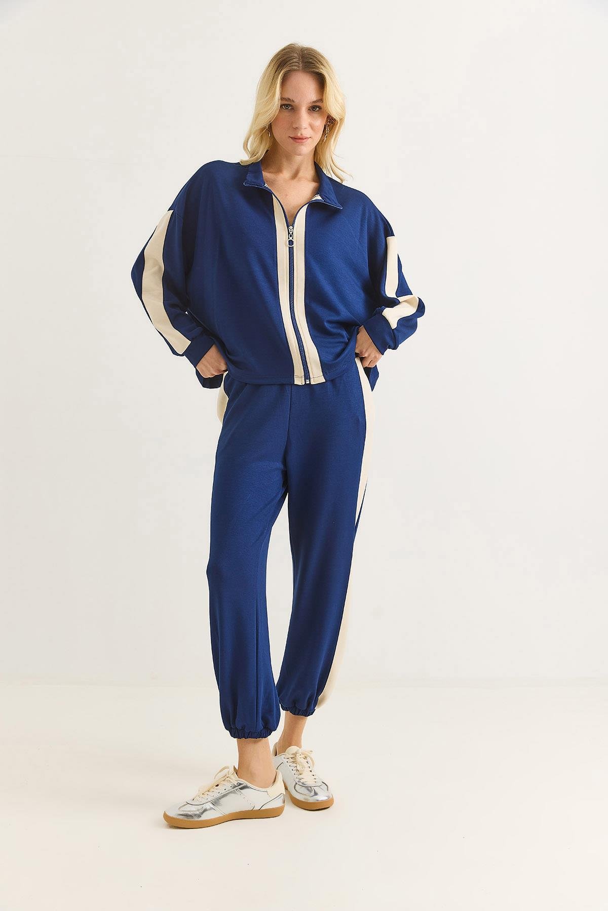 Kadın Kontrast Şeritli Örme Alt Üst Takım (500829TKMXLCV)