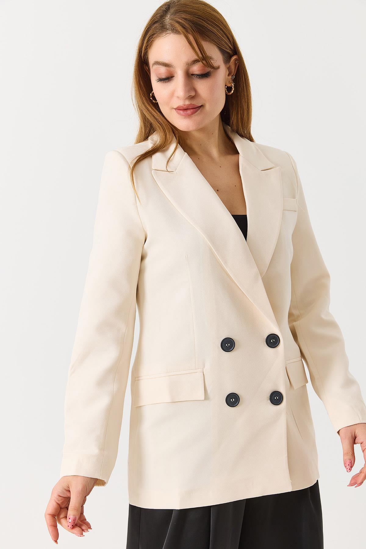 Kadın Kruvaze Yaka Blazer Ceket Krem (600660CKTXKRM)