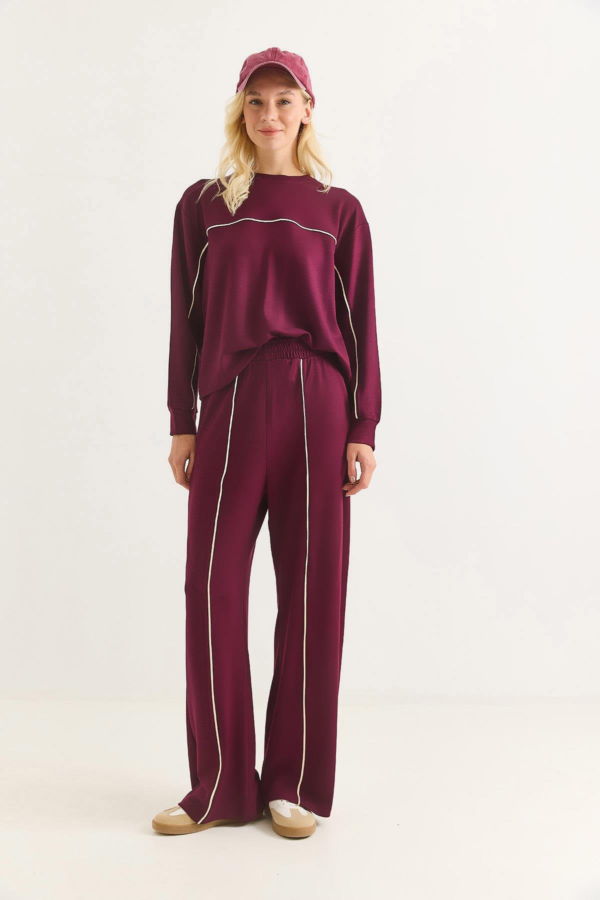 Kadın Modal Kumaş Biyeli Eşofman Takımı Bordo