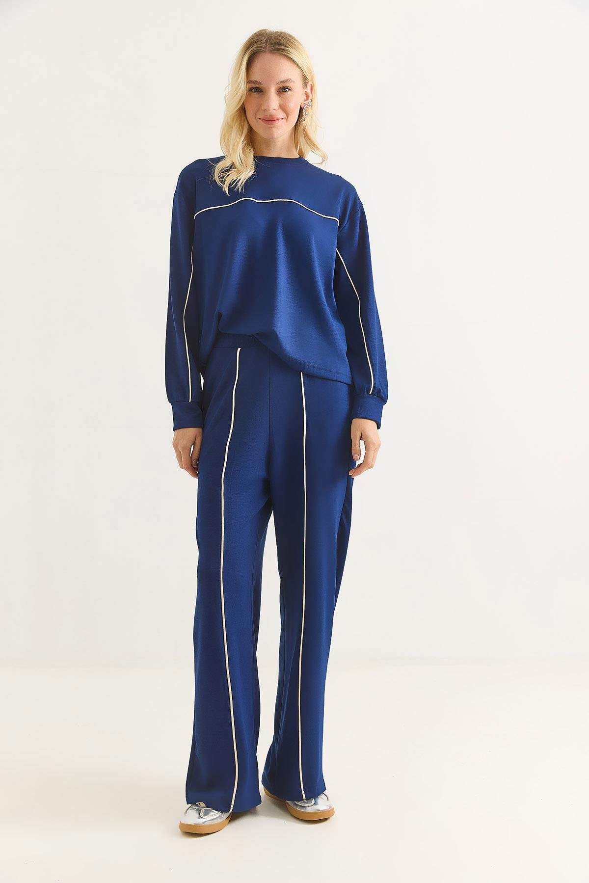 Kadın Modal Kumaş Biyeli Eşofman Takımı Lacivert