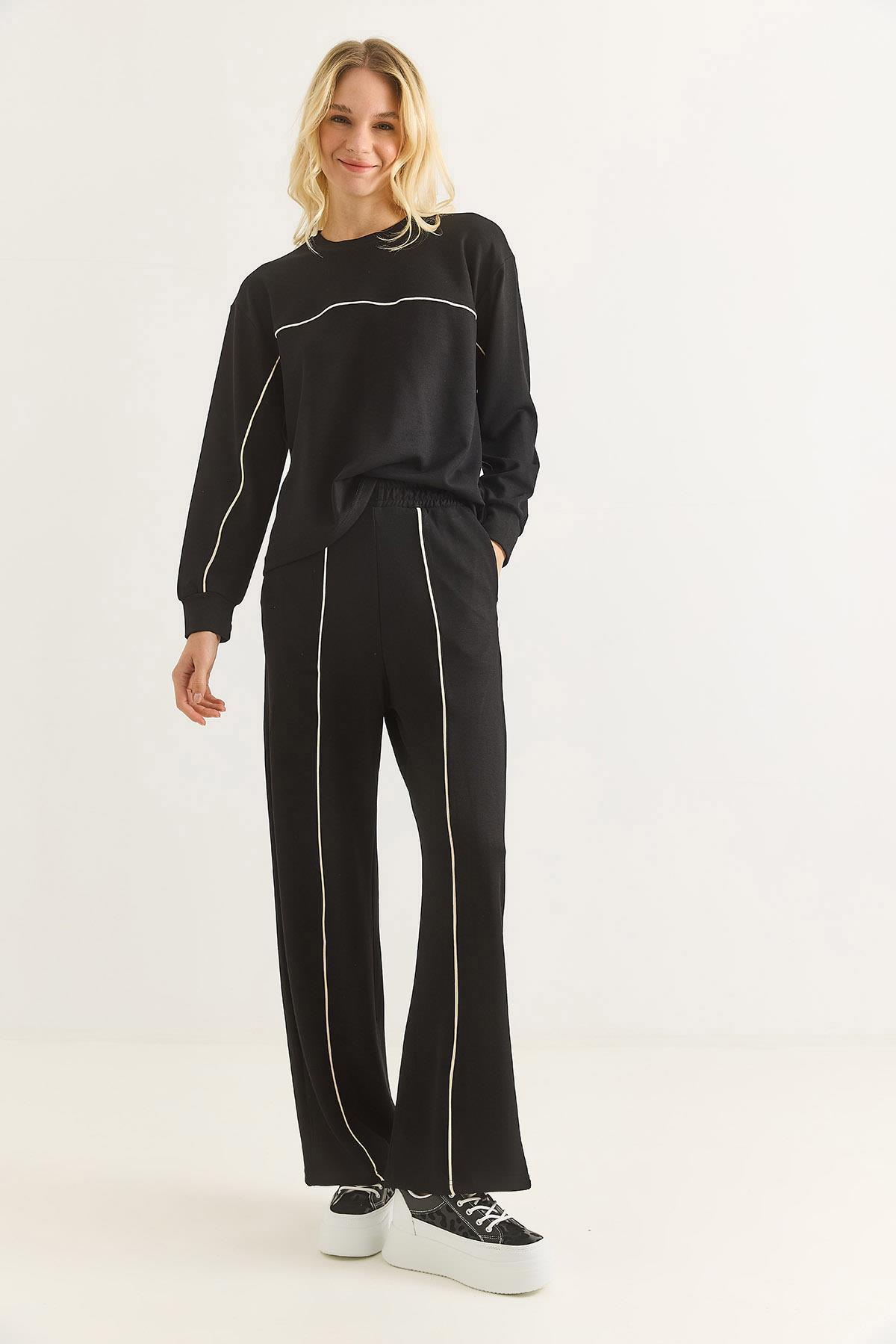 Kadın Modal Kumaş Biyeli Eşofman Takımı Siyah (500816EŞFXSYH)
