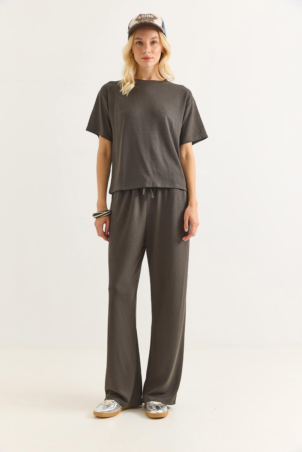 Kadın Modal Yağ Yeşili Alt Üst Basic Eşofman Takımı Antrasit (500790EŞFXANT)