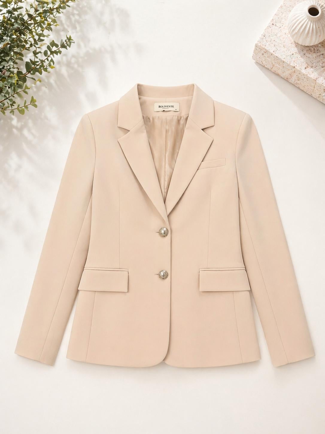 Kadın Oversize Düğmeli Blazer Ceket Bej