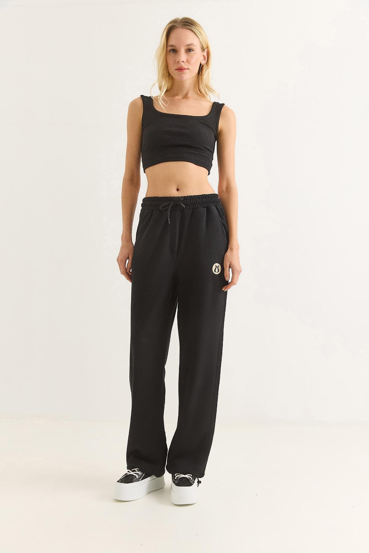 Kadın Paçası Lastıkli Geniş Paça Eşofman Altı Siyah (500826EŞFXSYH)