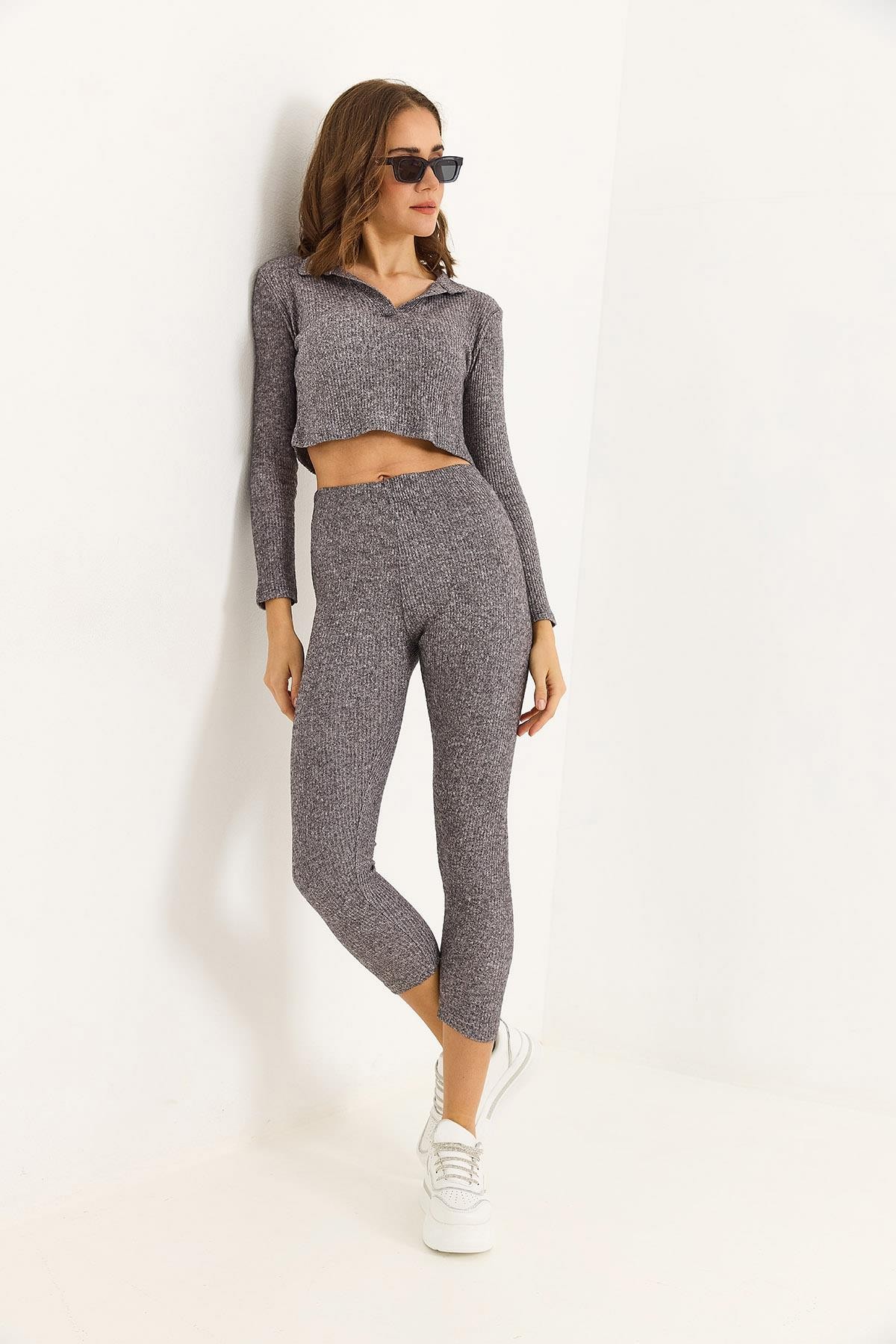 Kadın Polo Yaka İkili Fitilli Takım Gri (500852TKMXGRİ)