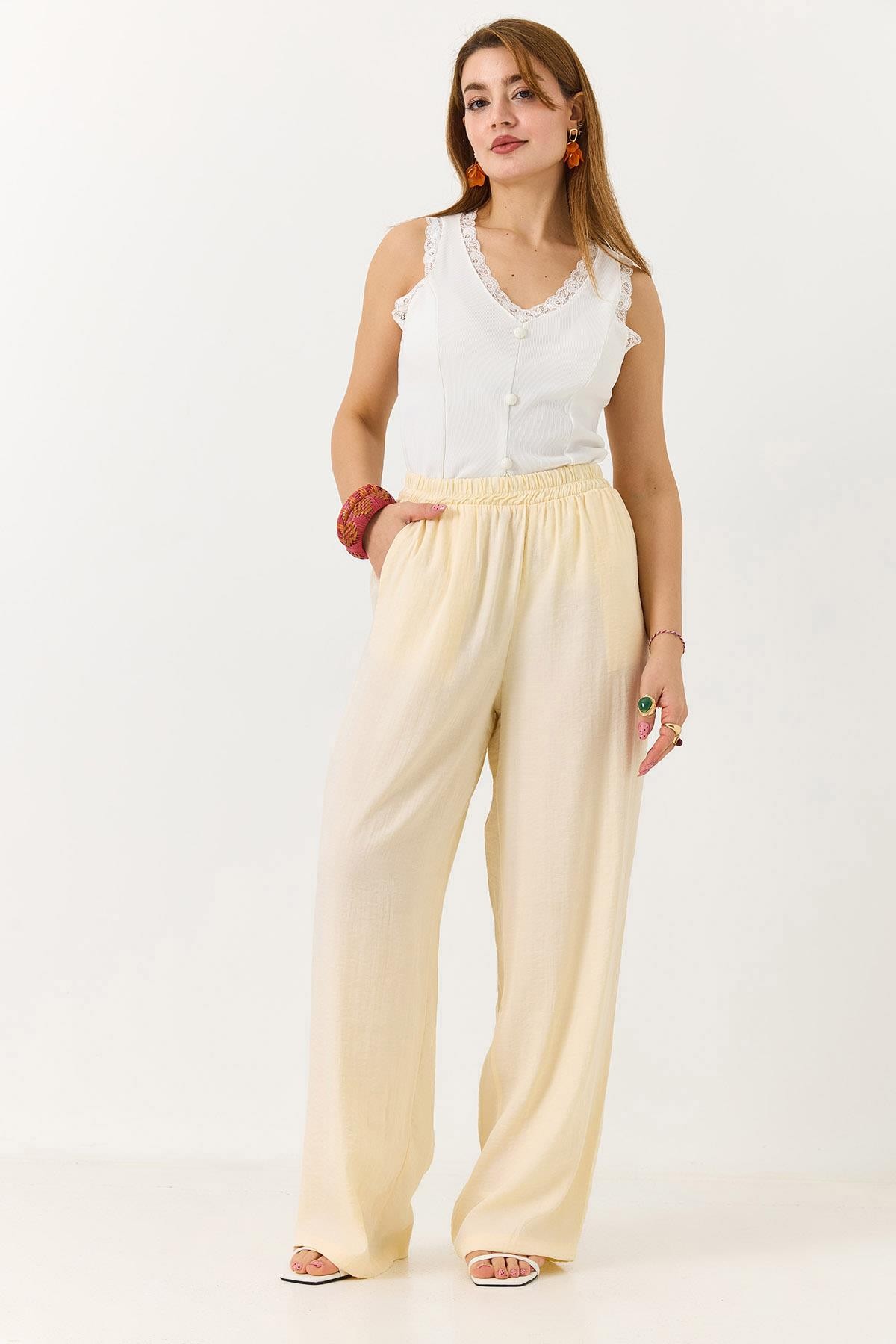 Kadın Rahat Kesim Yüksek Bel Pantolon Sarı (255190PNTXSRI)