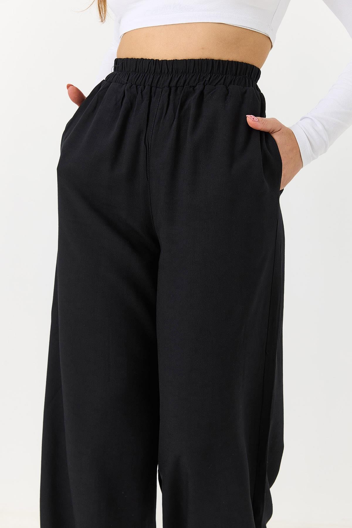 Kadın Rahat Kesim Yüksek Bel Pantolon Siyah (255190PNTXSYH)