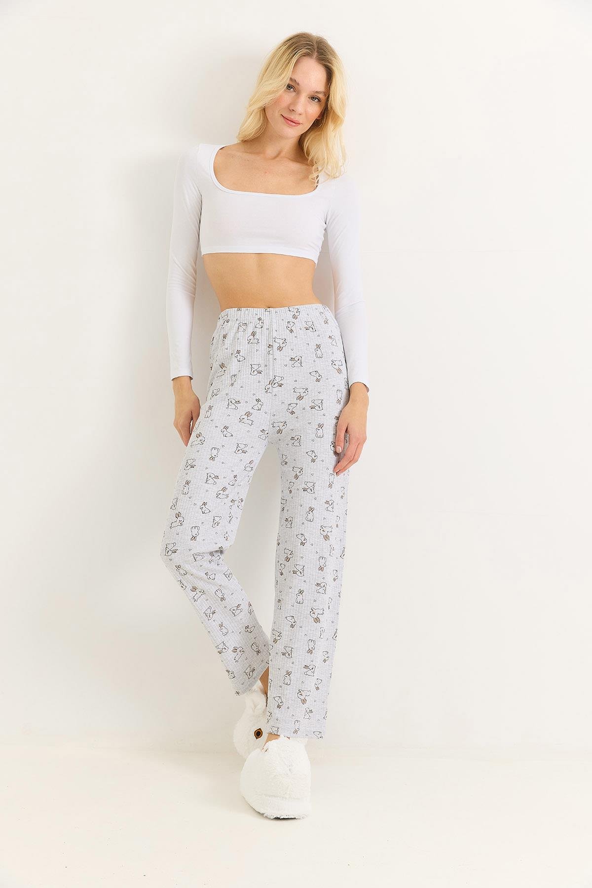 Kadın Renkli Tavşan Baskılı İnterlok Pamuk Pijama Altı Gri (500810PJMXGRİ)