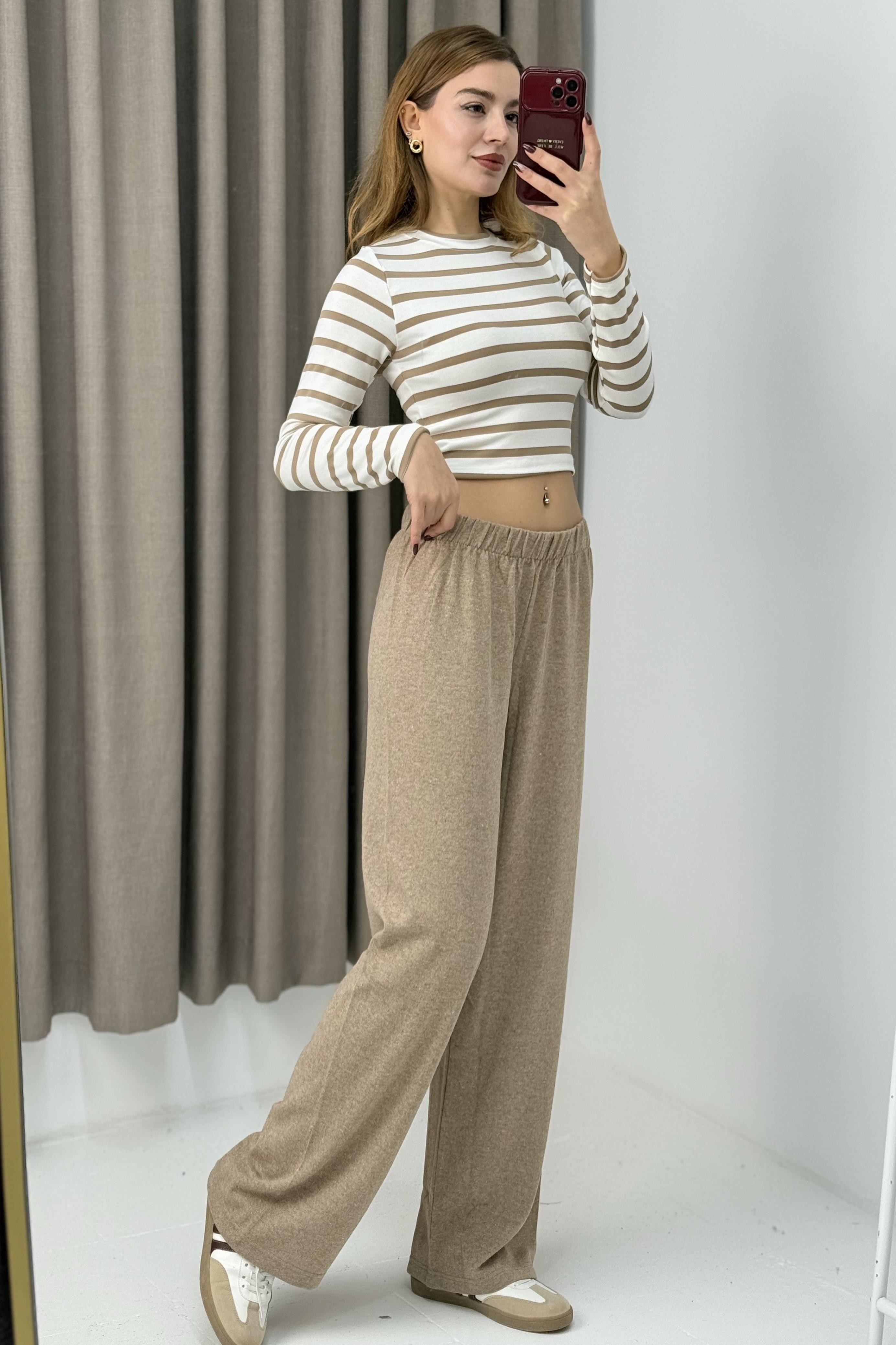 Kadın Triko Bej Salaş Pantolon (600130PNTXBEJ)