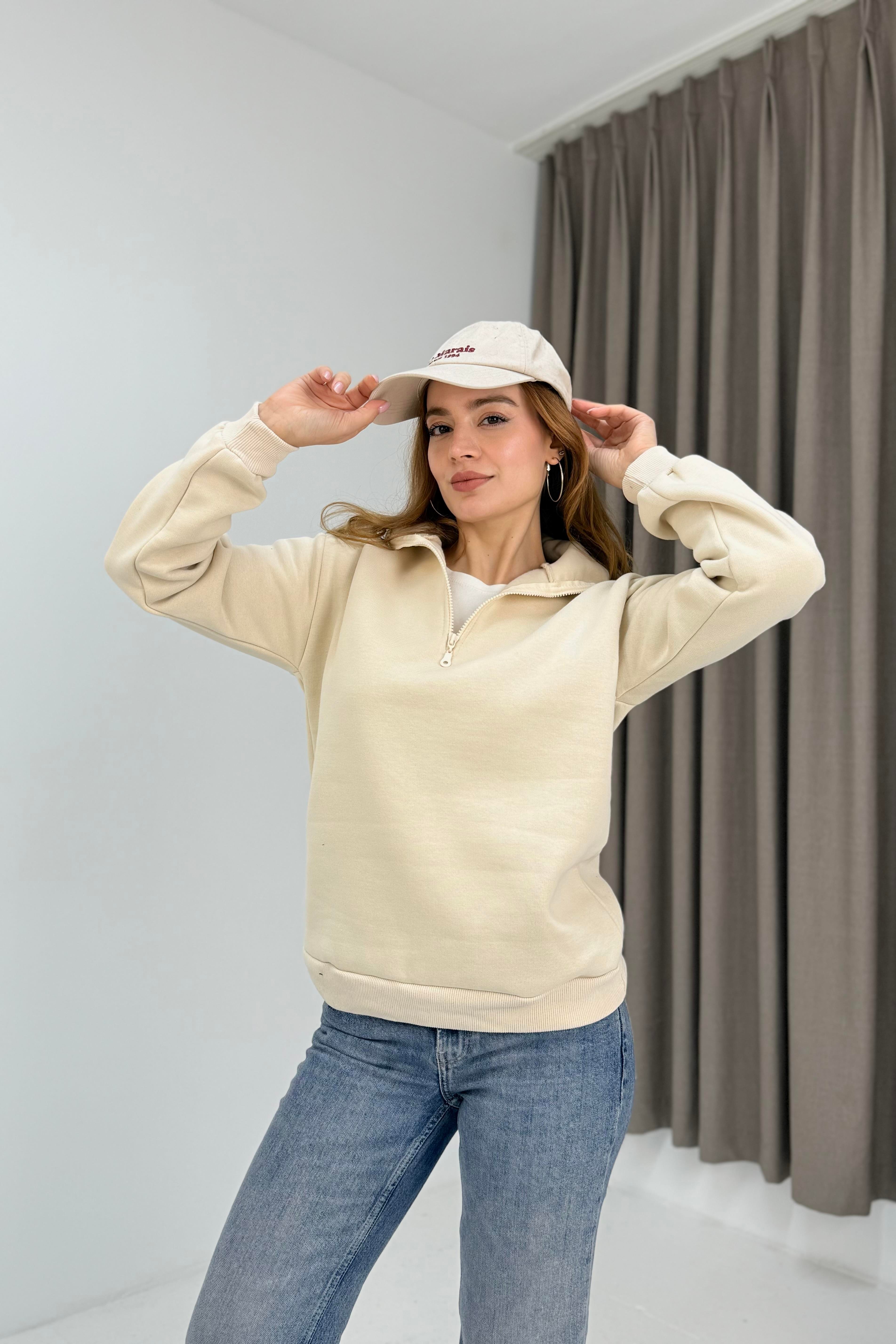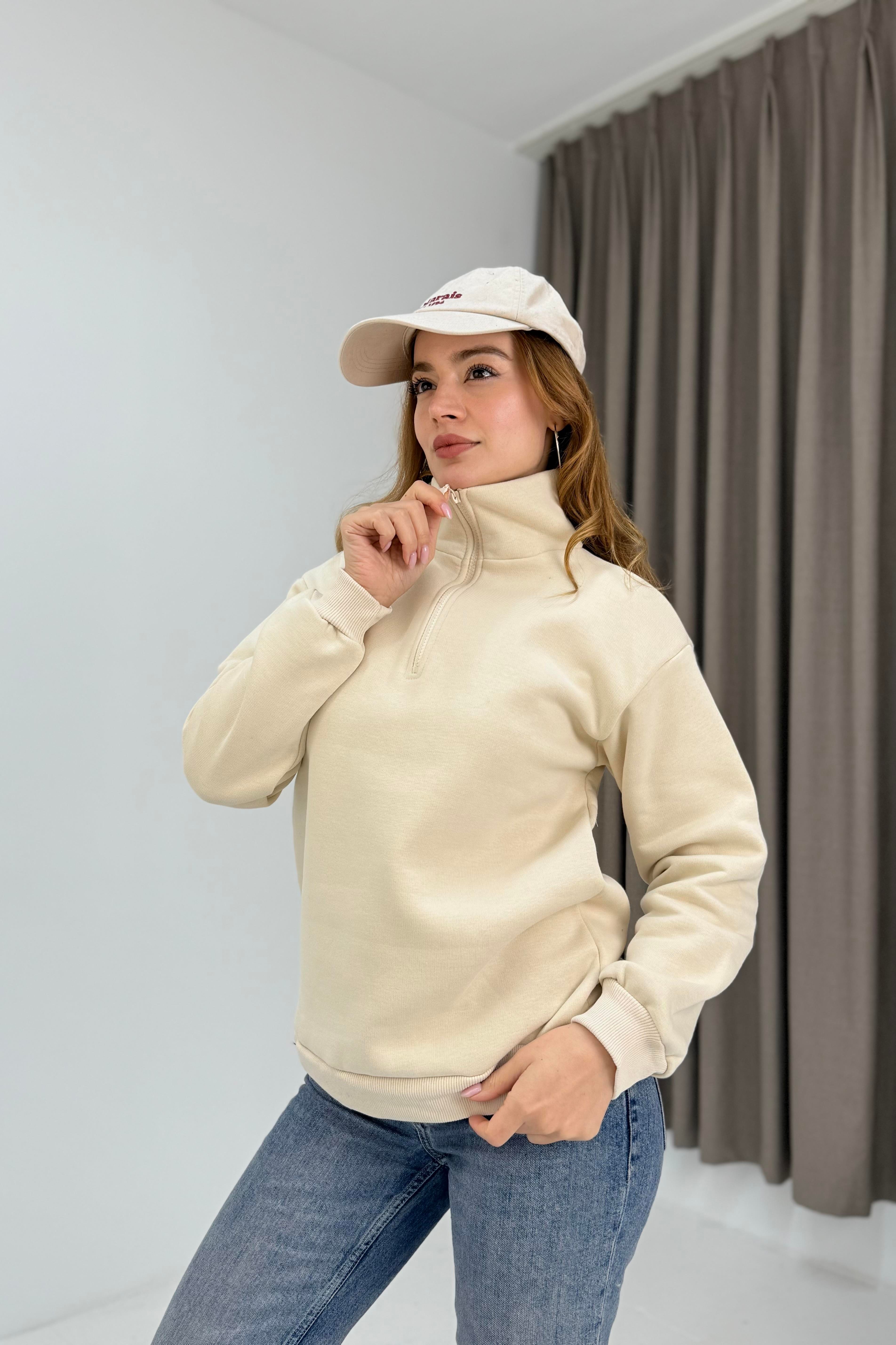 Kadın Vizon Yarım Fermuarlı Üç İplik Sweat (600136SWTXVZN)