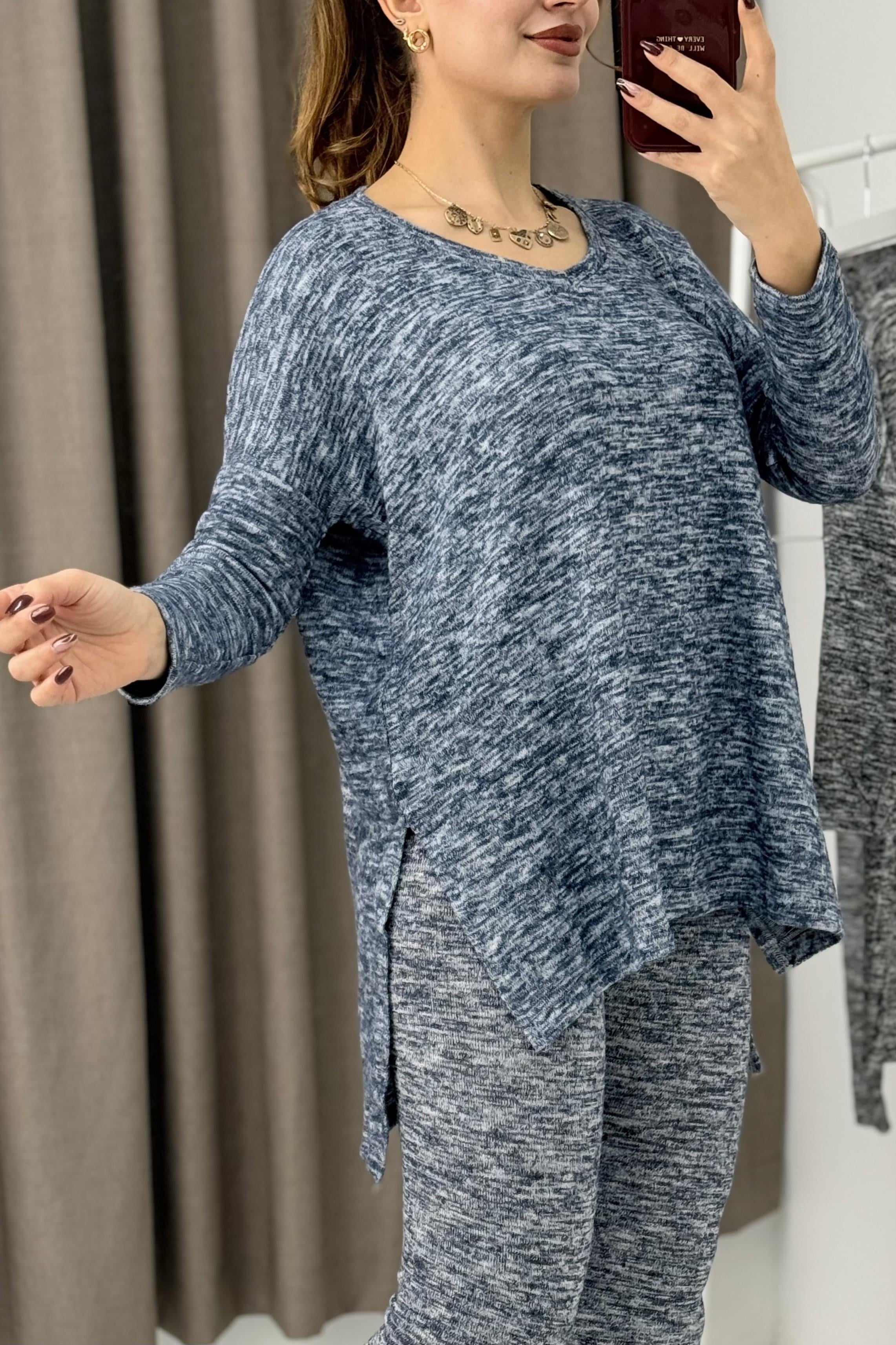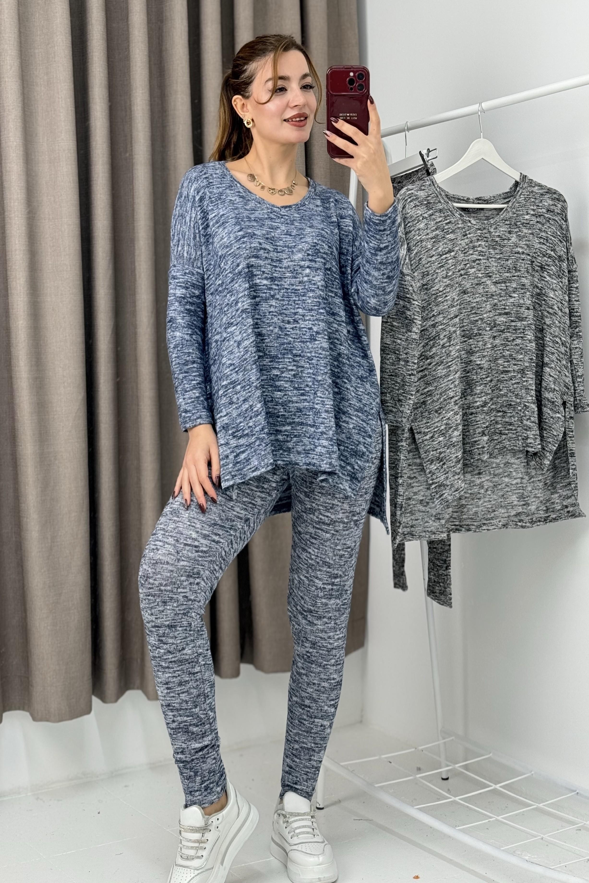 Kadın Yumoş Üstü Bol Altı Tayt İkili Takım Mavi