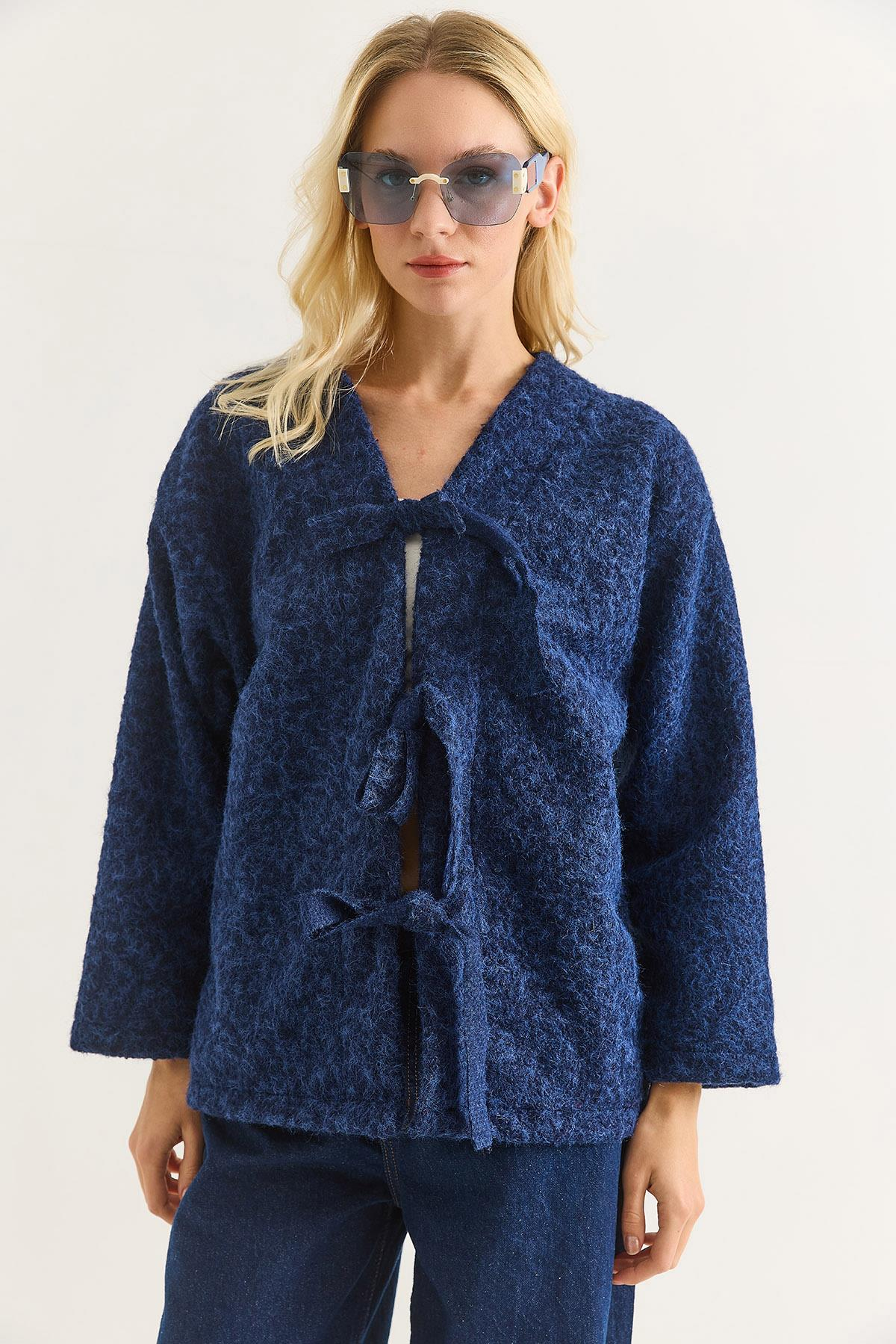 Kadın Kaşe Önden Bağlamalı Ceket Lacivert (500825CKTXLCV)