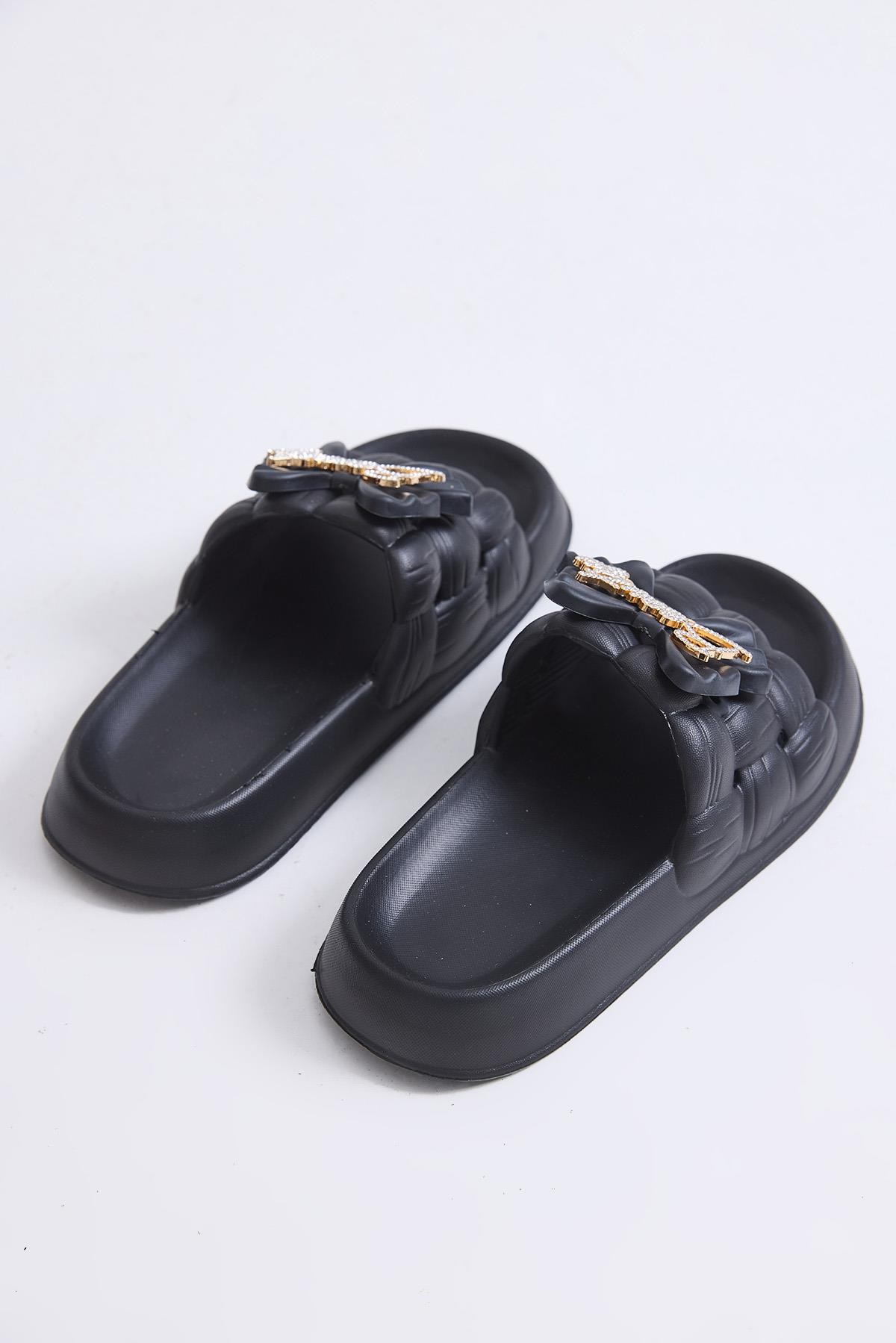 Kalın Tabanlı Bahçe Plaj  Havuz Terliği Siyah