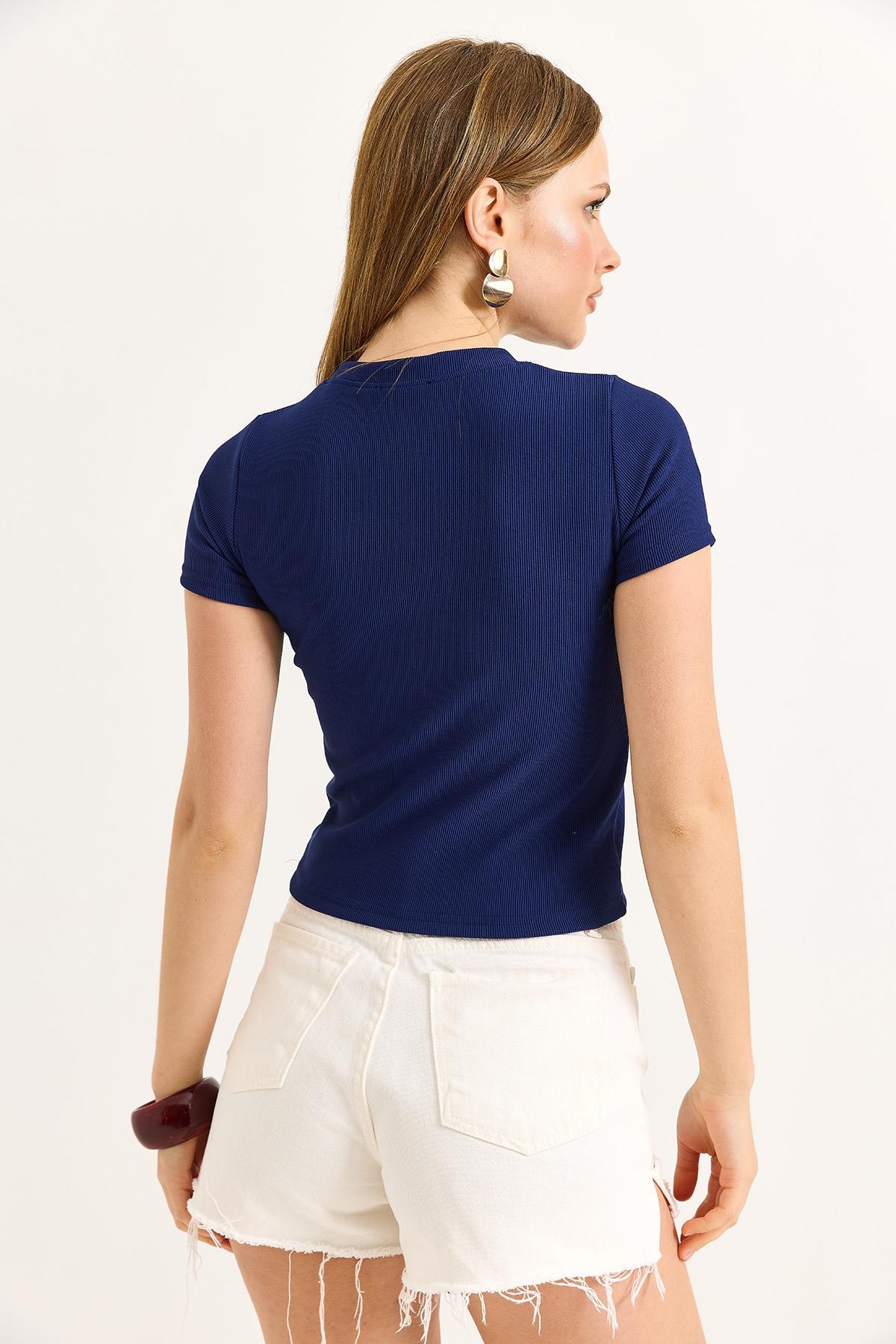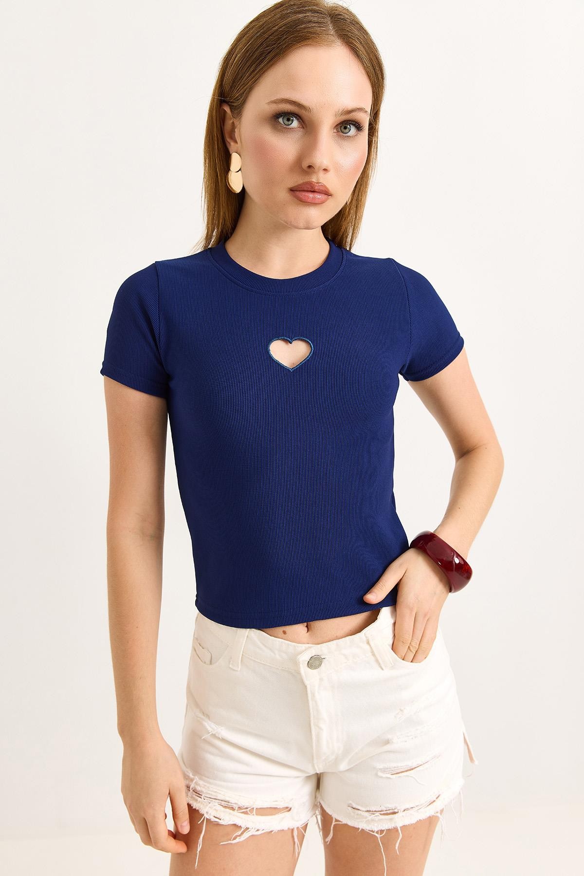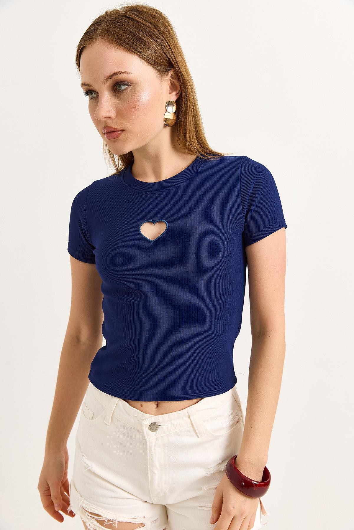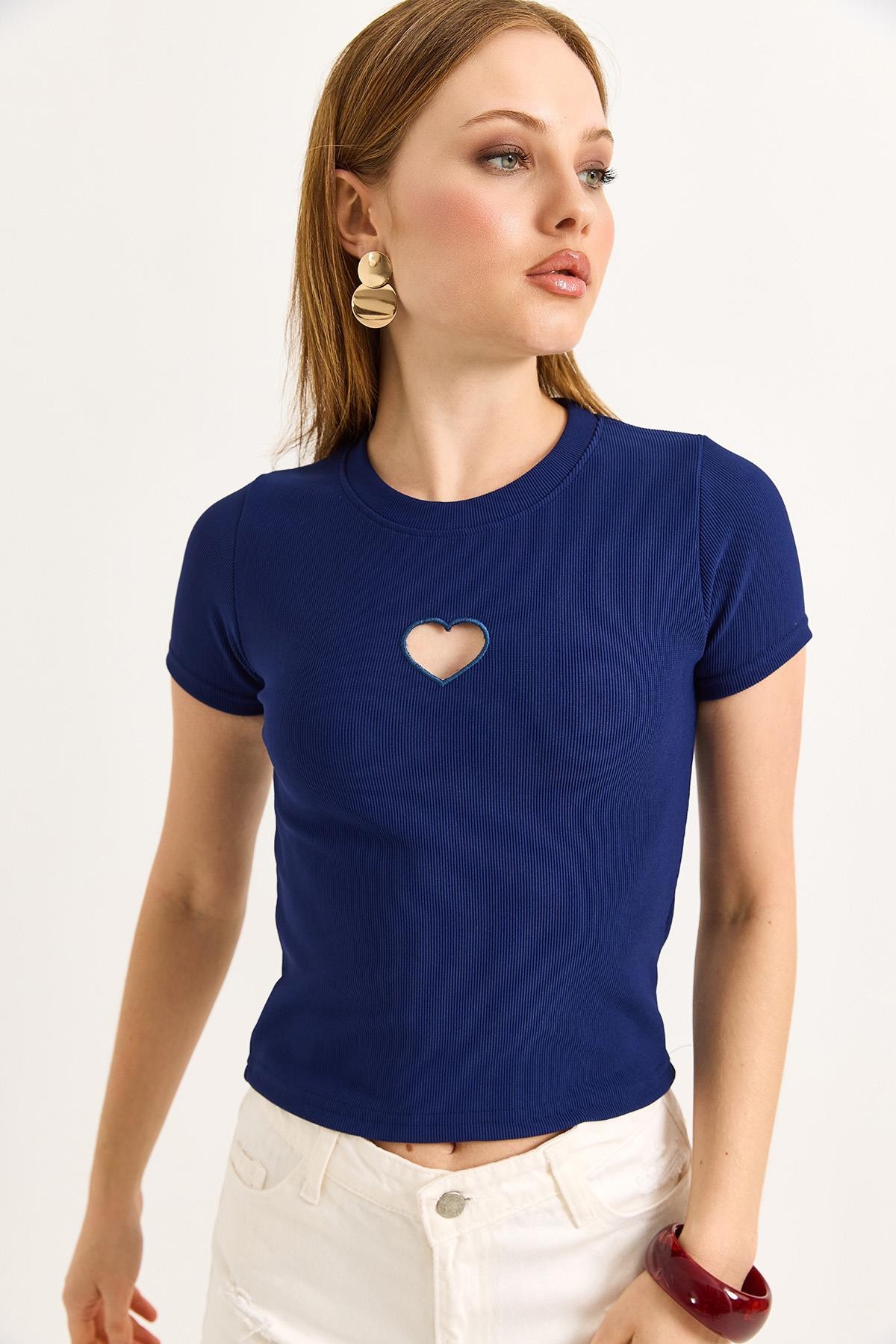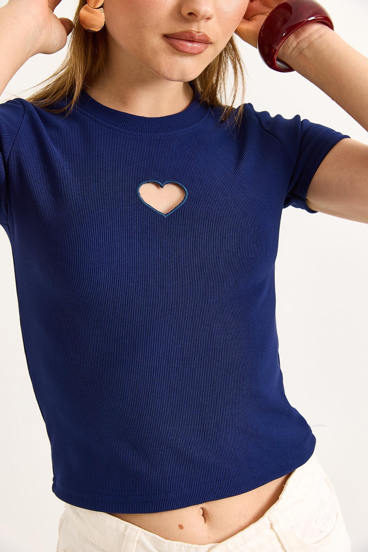 Kalp Detaylı Fitilli Örme Bluz Lacivert (500187BLZXLCV)