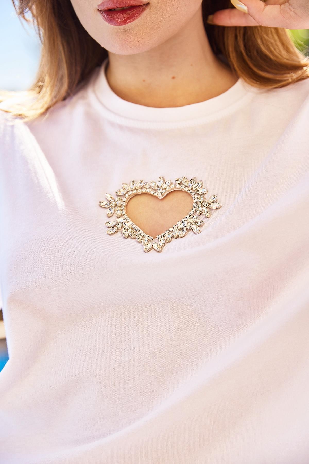 Kalp Detaylı Oversize Kadın Tshirt Beyaz (252029TSHXBYZ)