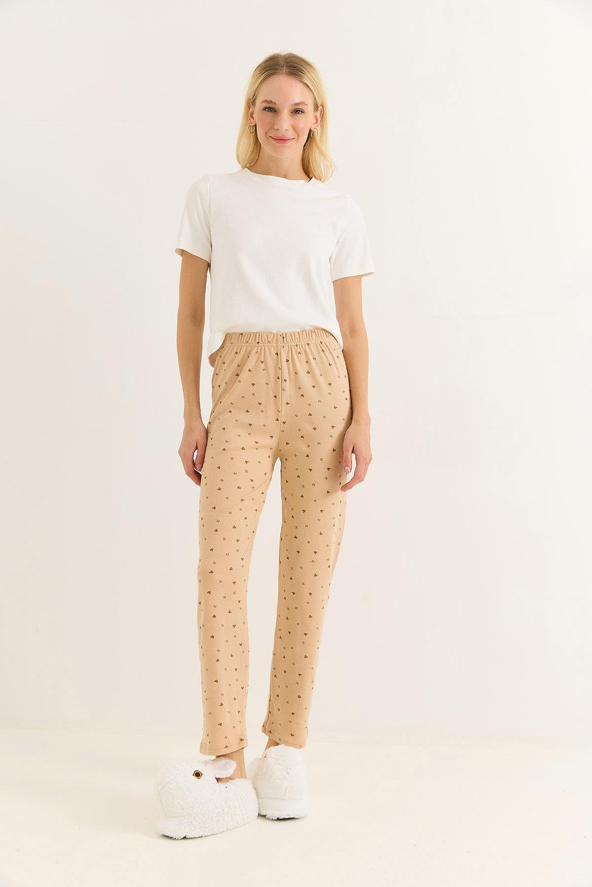 Kalp Detaylı Pamuk Düz Pijama Altı Vizon (500811PJMXVZN)