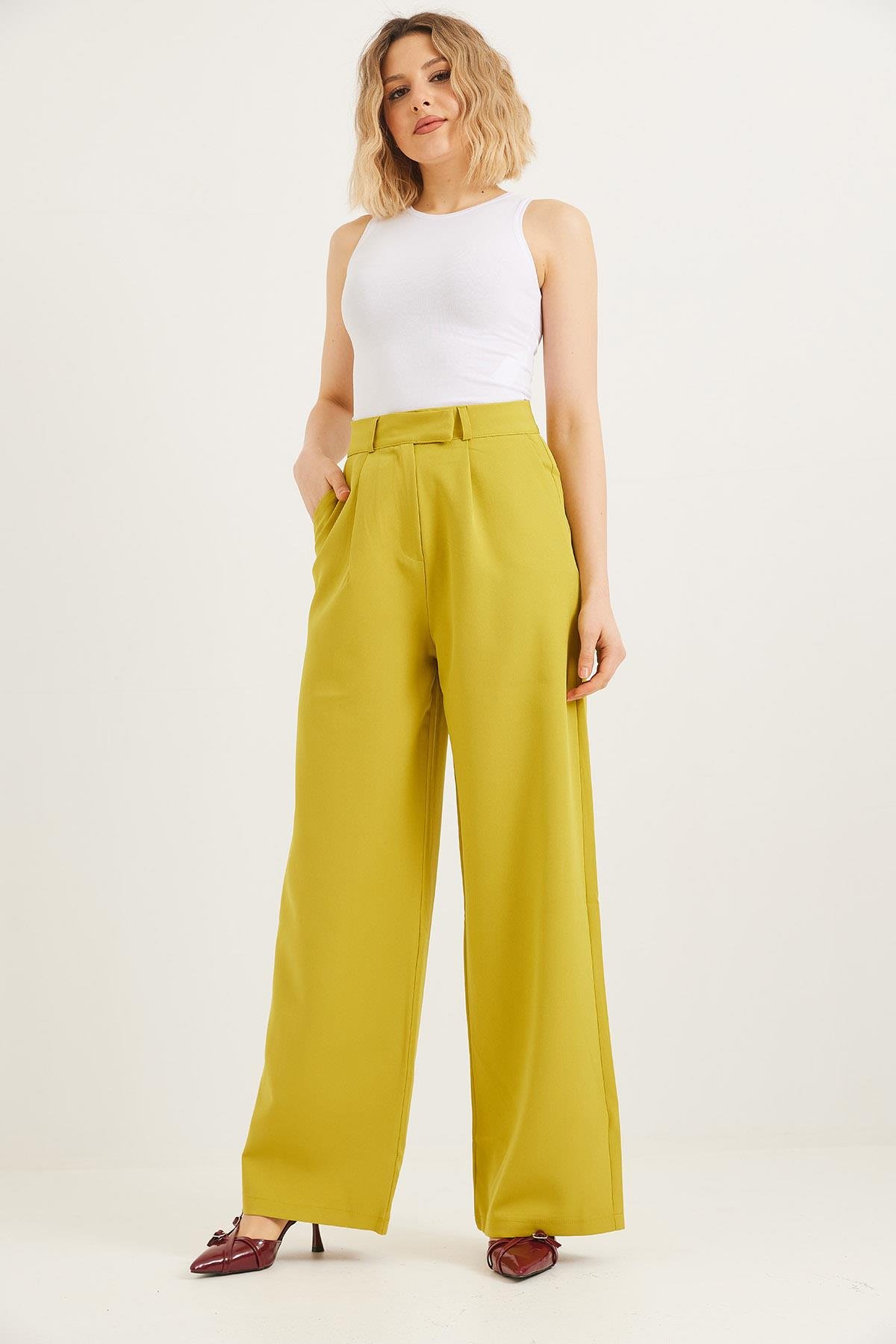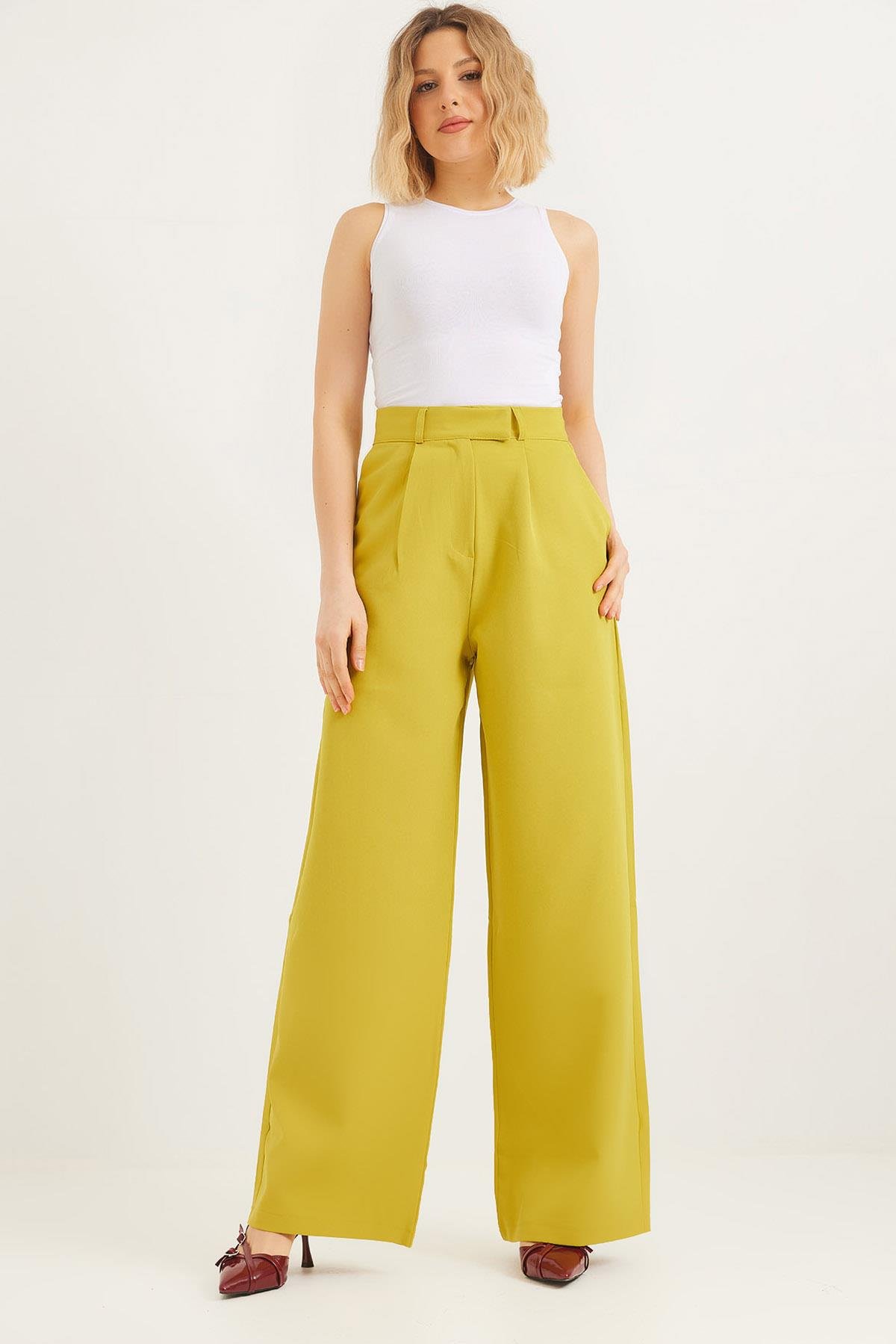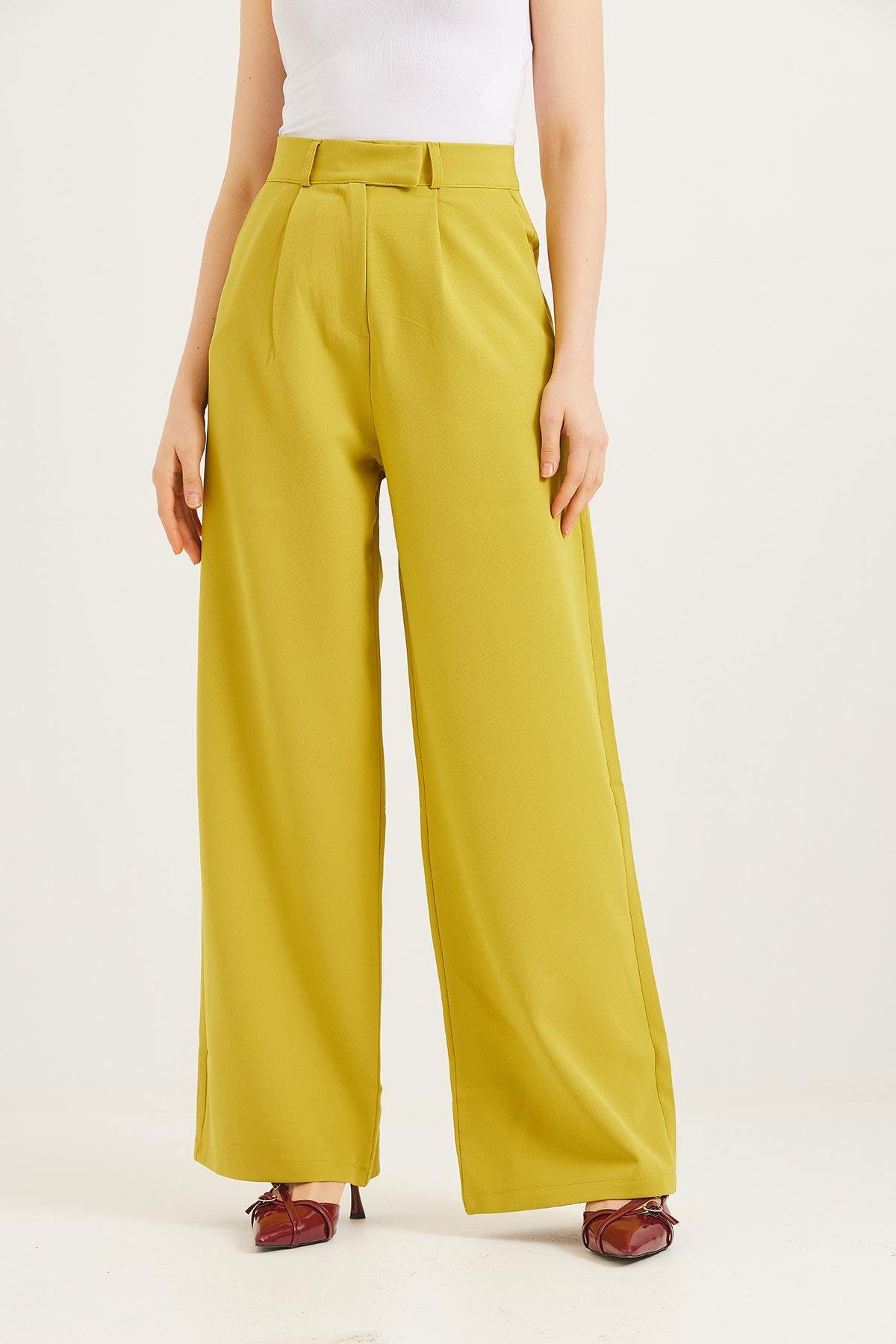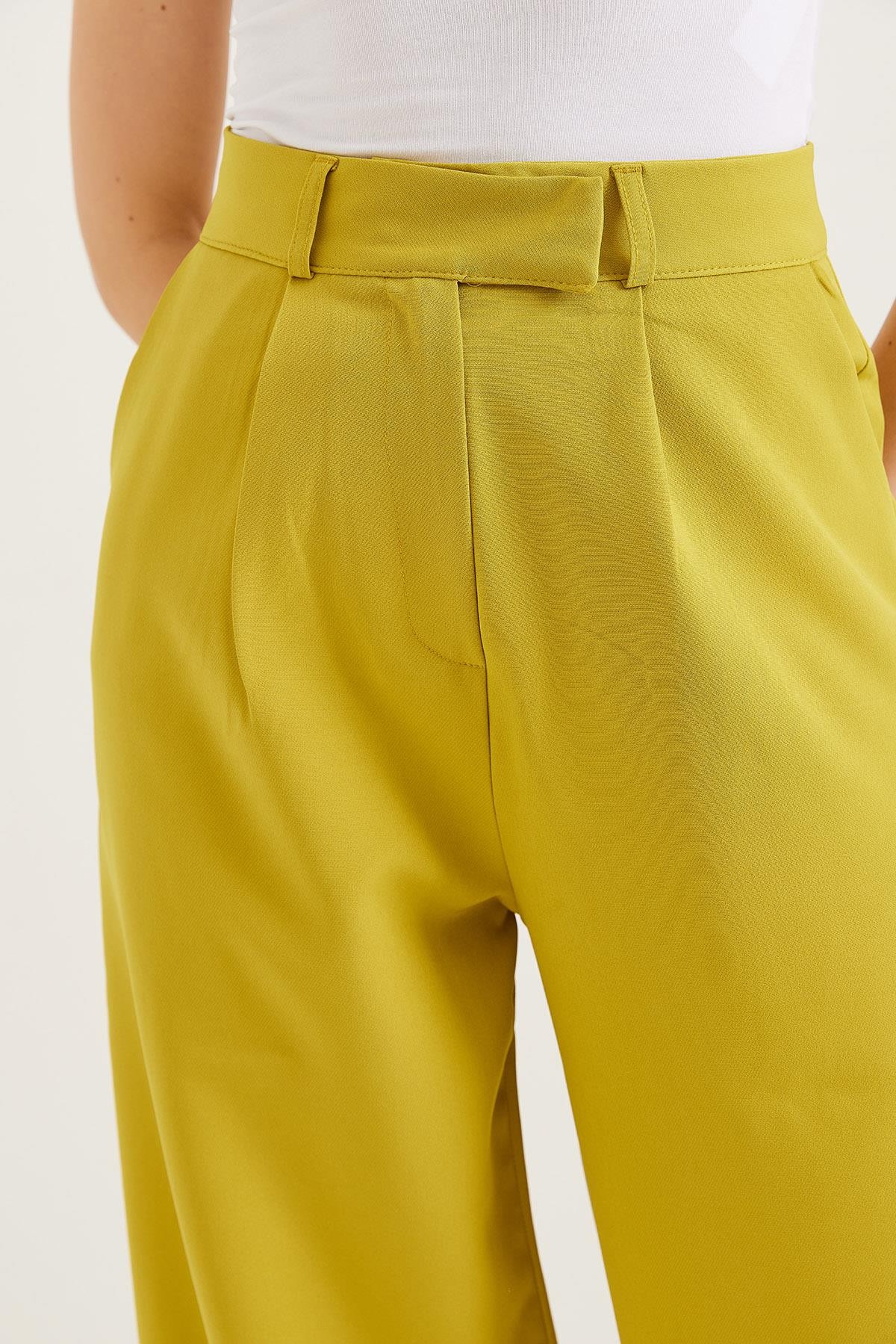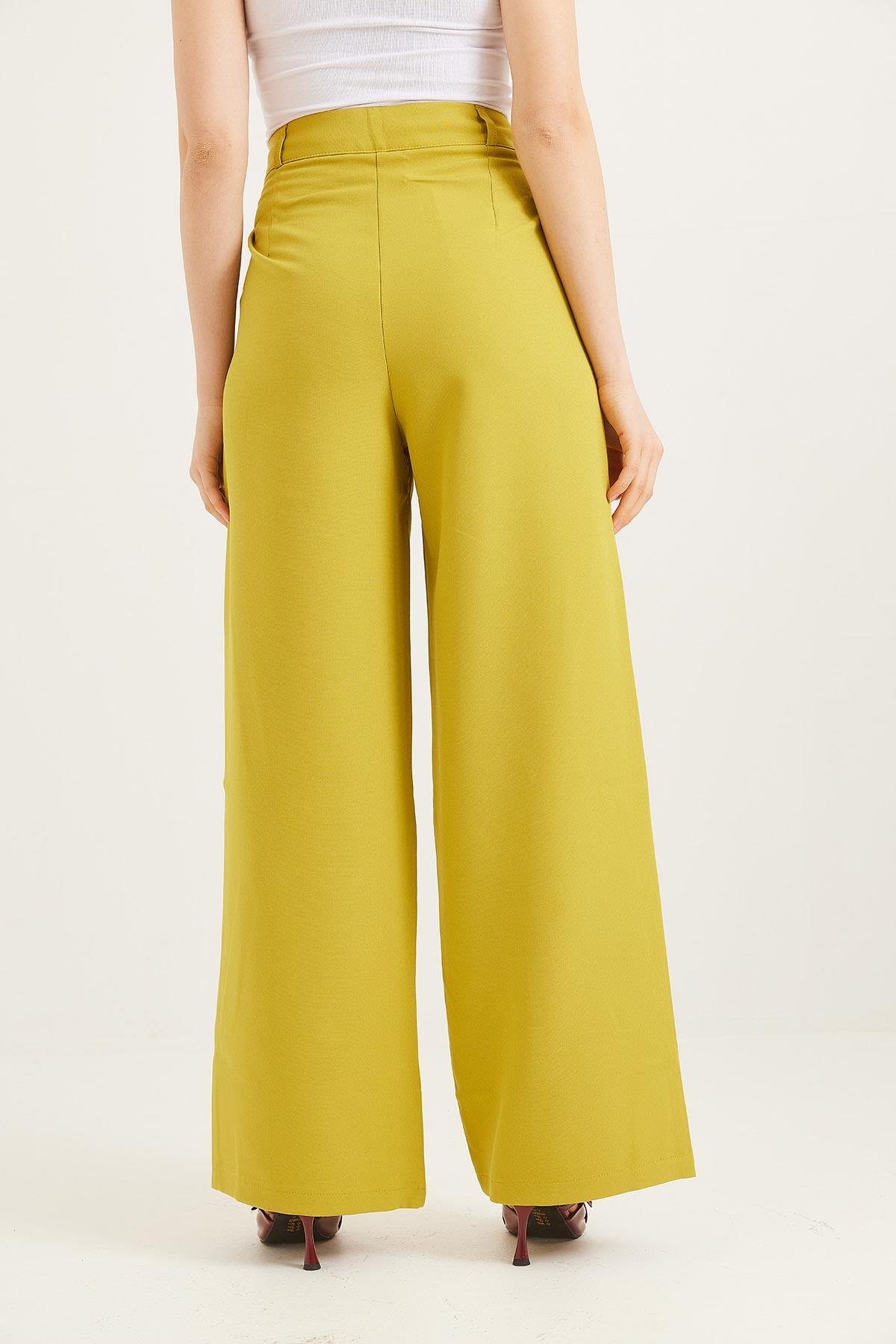 Kancalı Yüksek Bel Salaş Palazzo Pantolon Yağ Yeşili (250570PNTXYSL)
