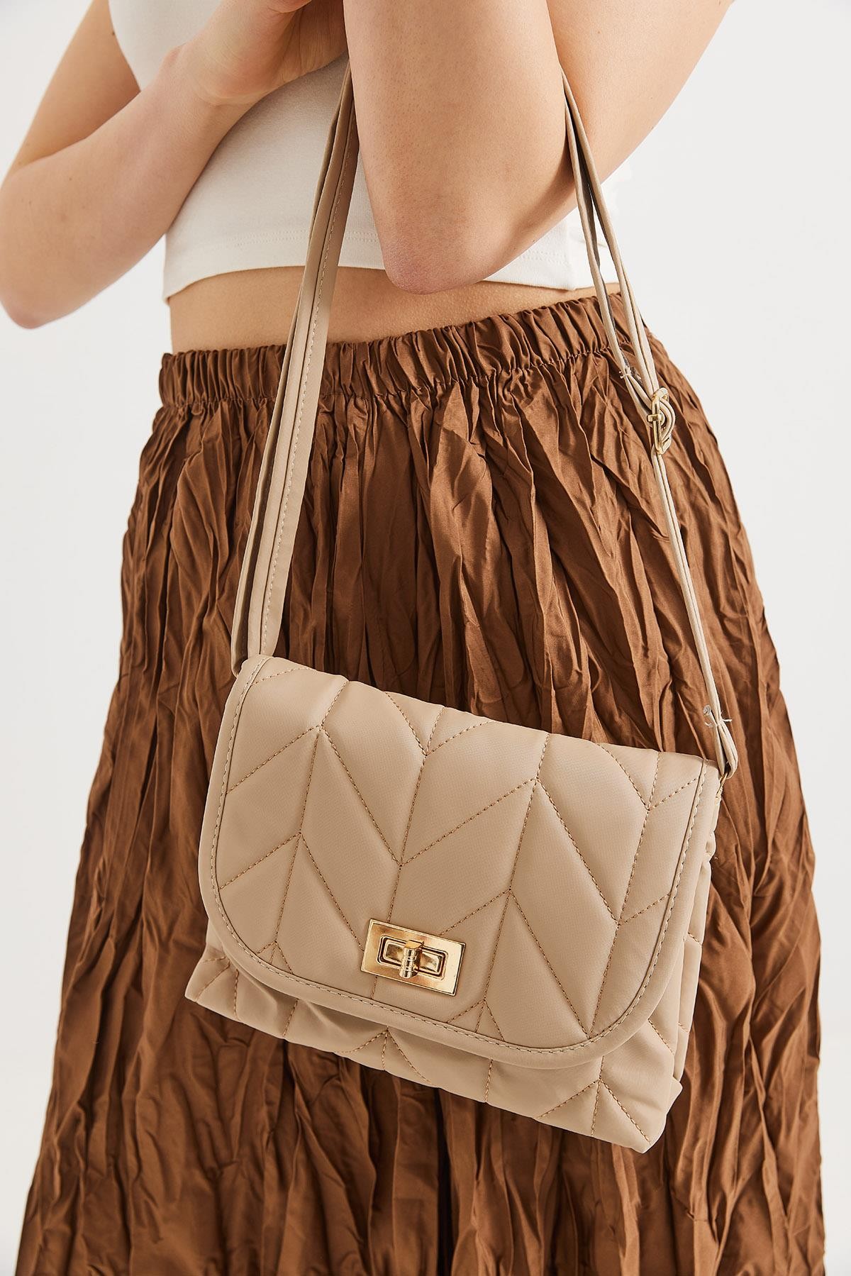 Kapitone Kadın Baget Model Çanta Vizon (250566CNTXVZN)