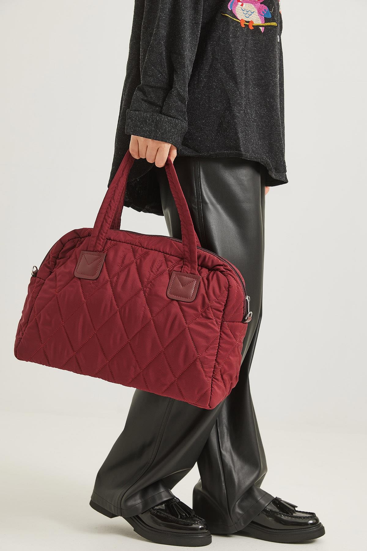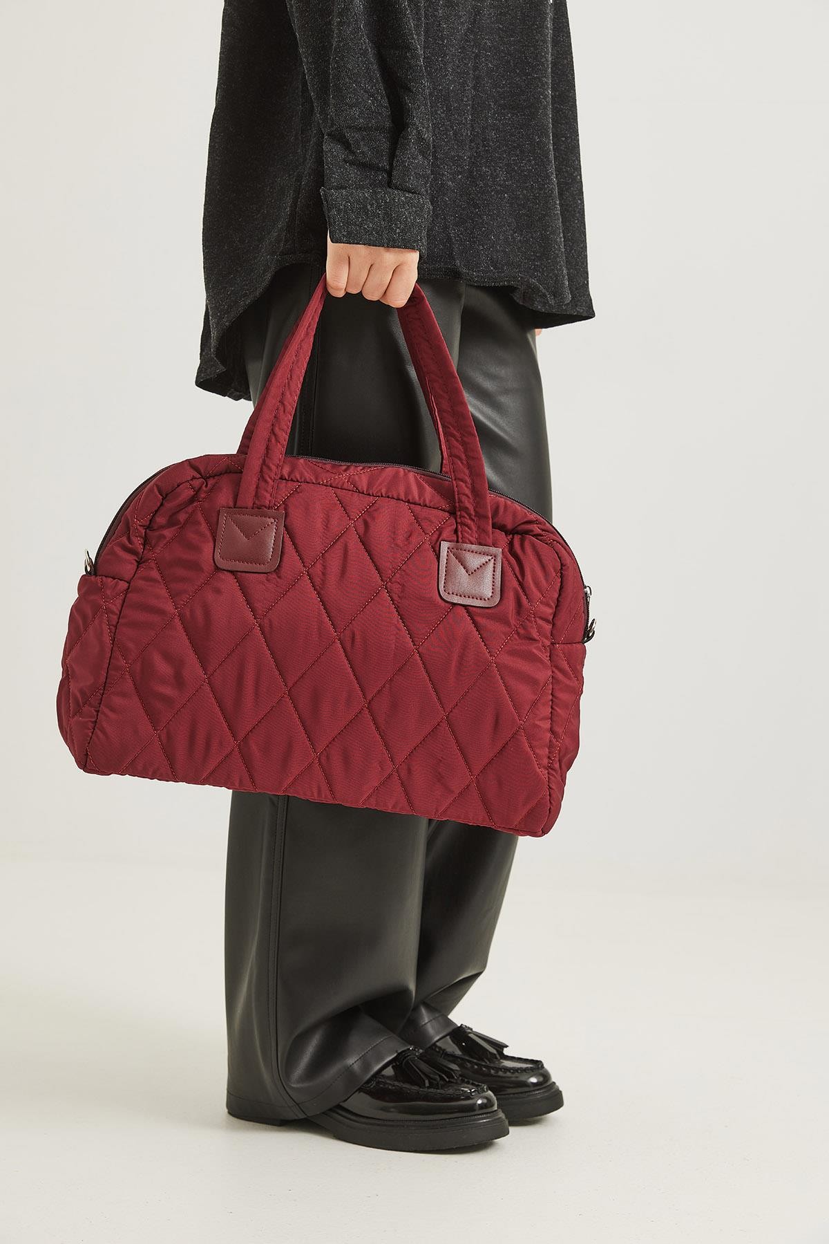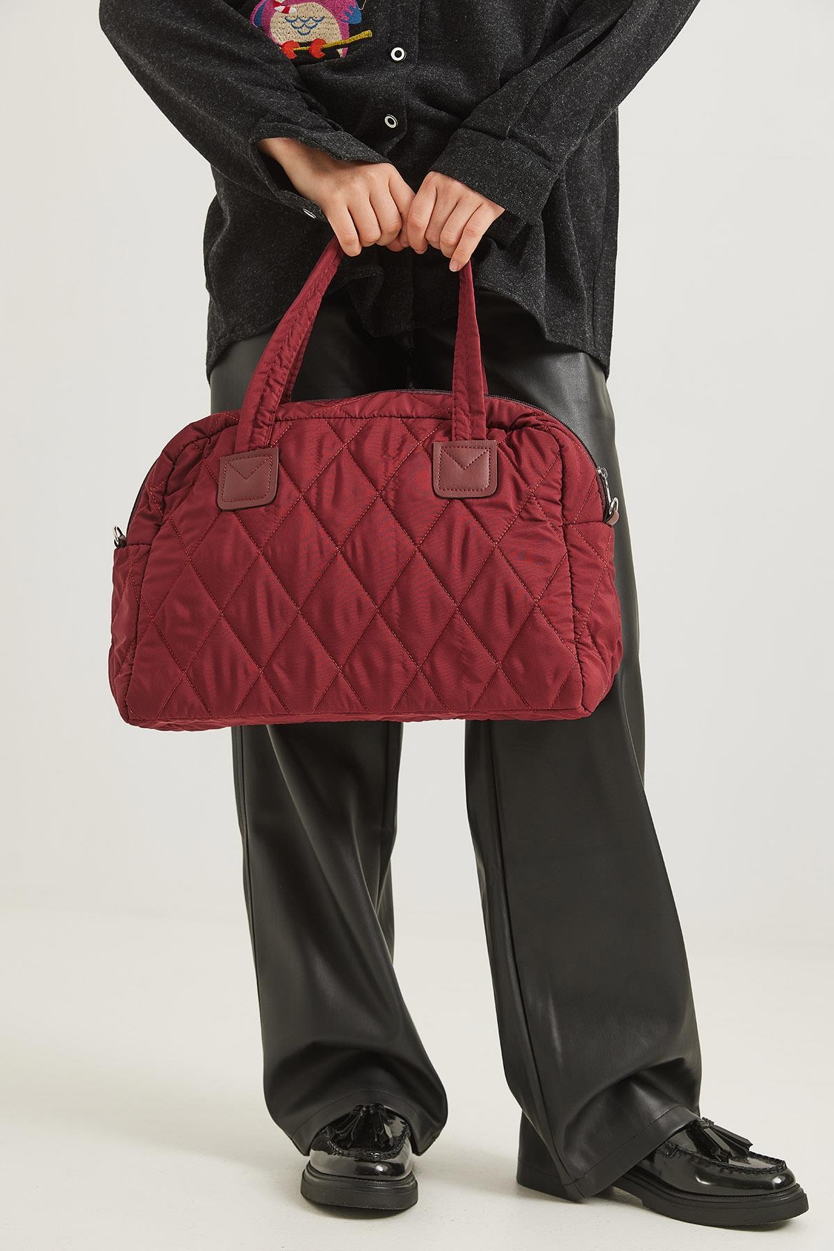 Kapitone Kumaş Cüzdanlı El Ve Omuz Çantası Bordo (250628CNTXBRD)