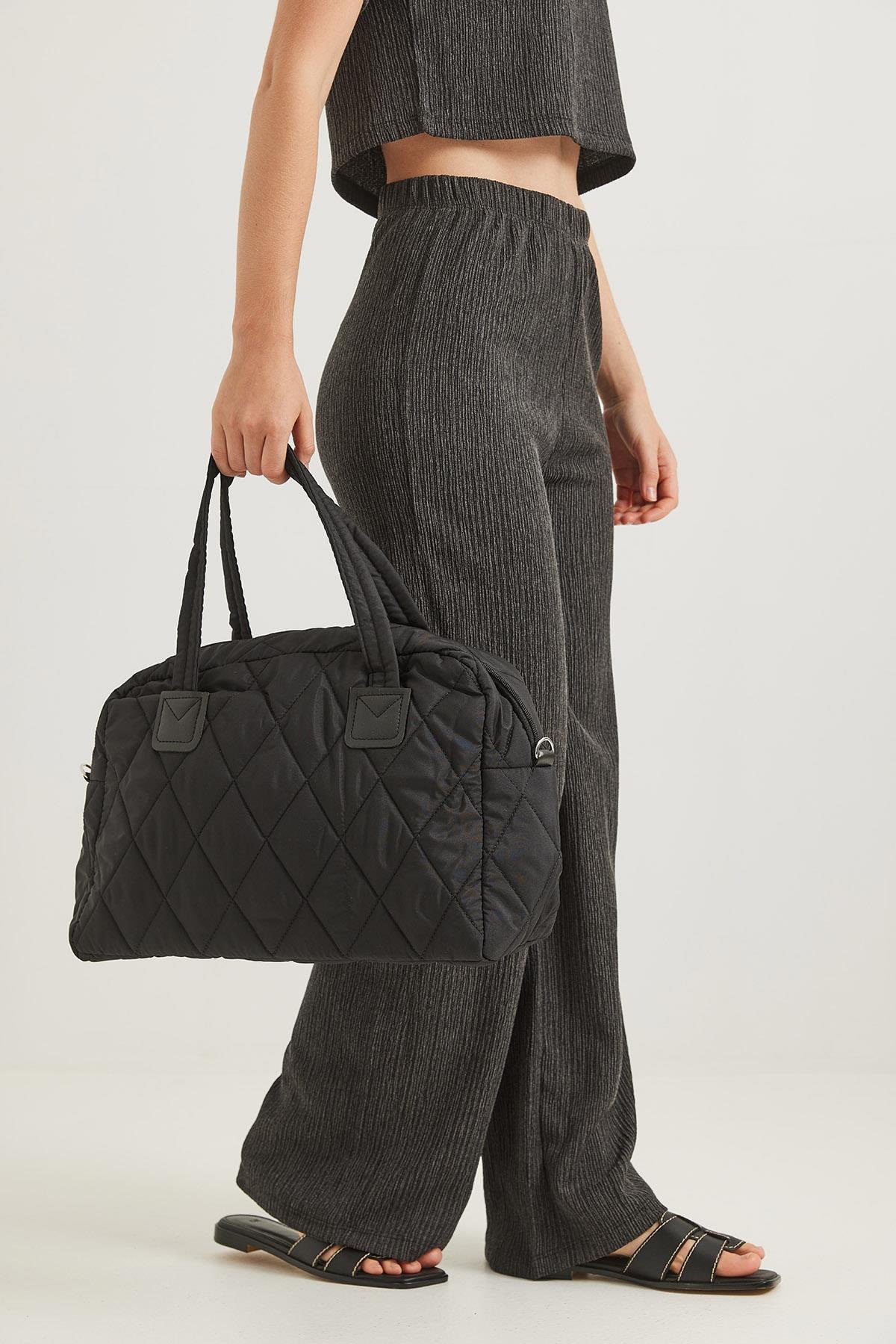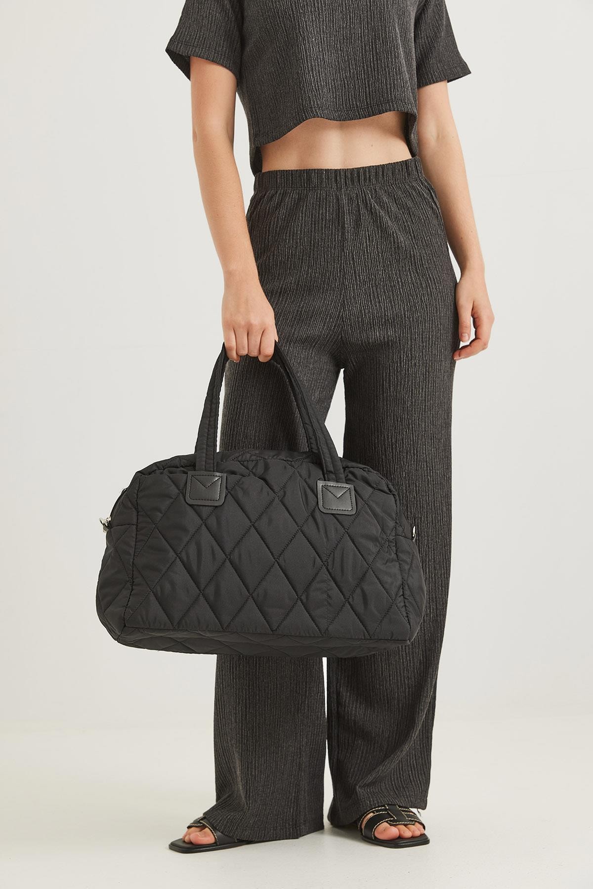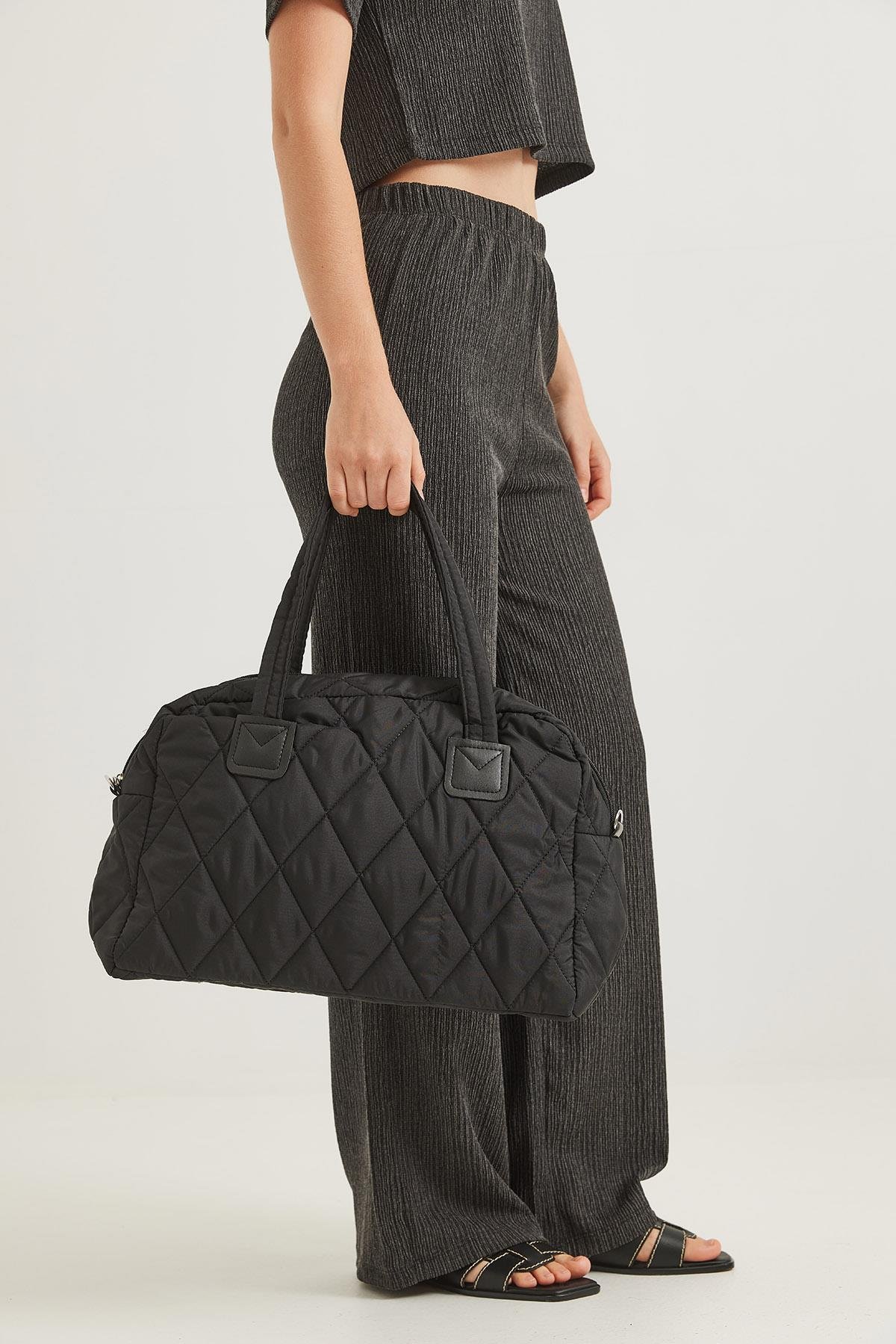 Kapitone Kumaş Cüzdanlı El Ve Omuz Çantası Siyah (250628CNTXSYH)