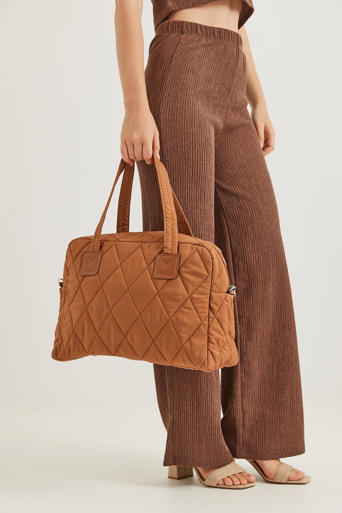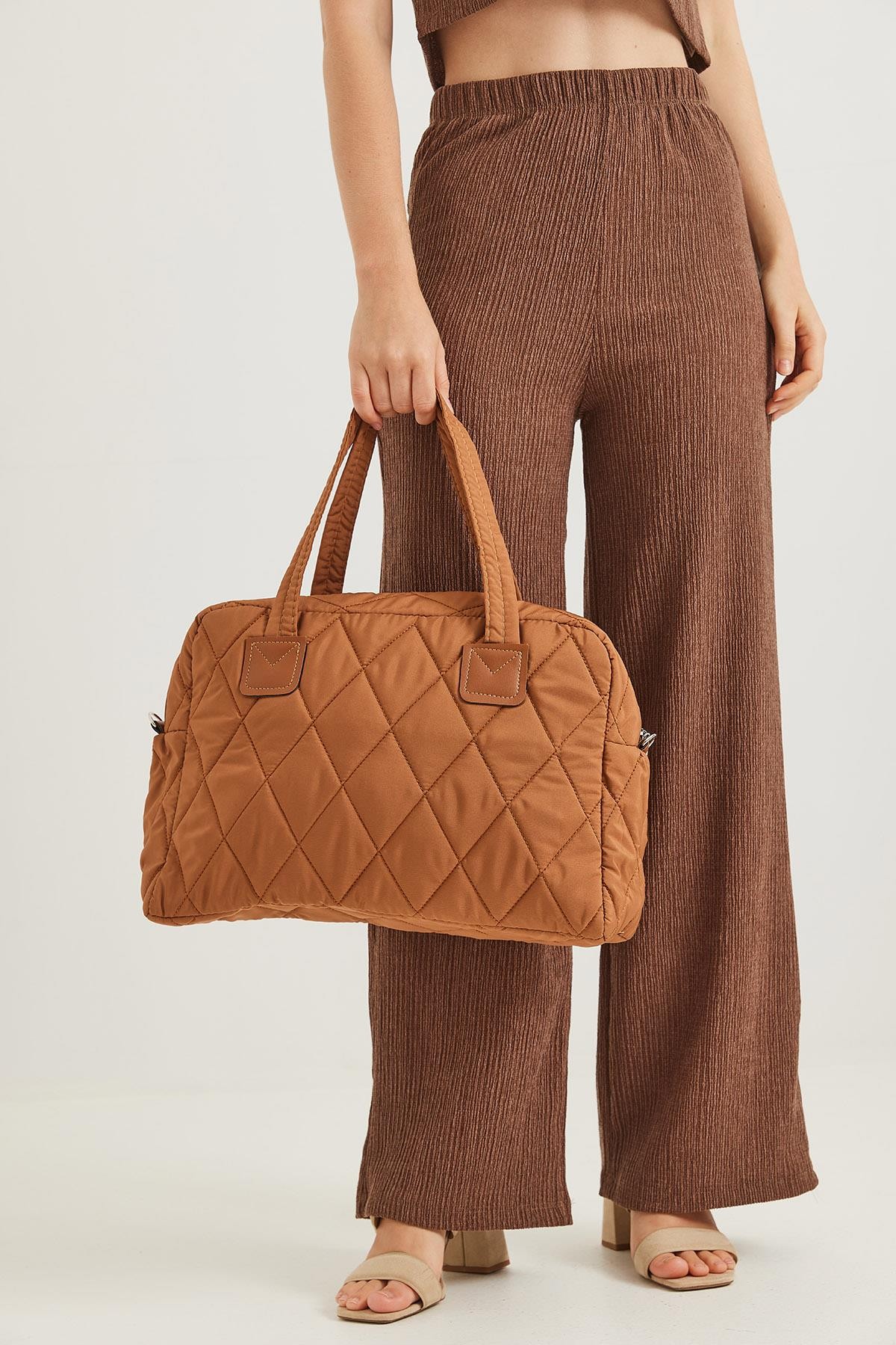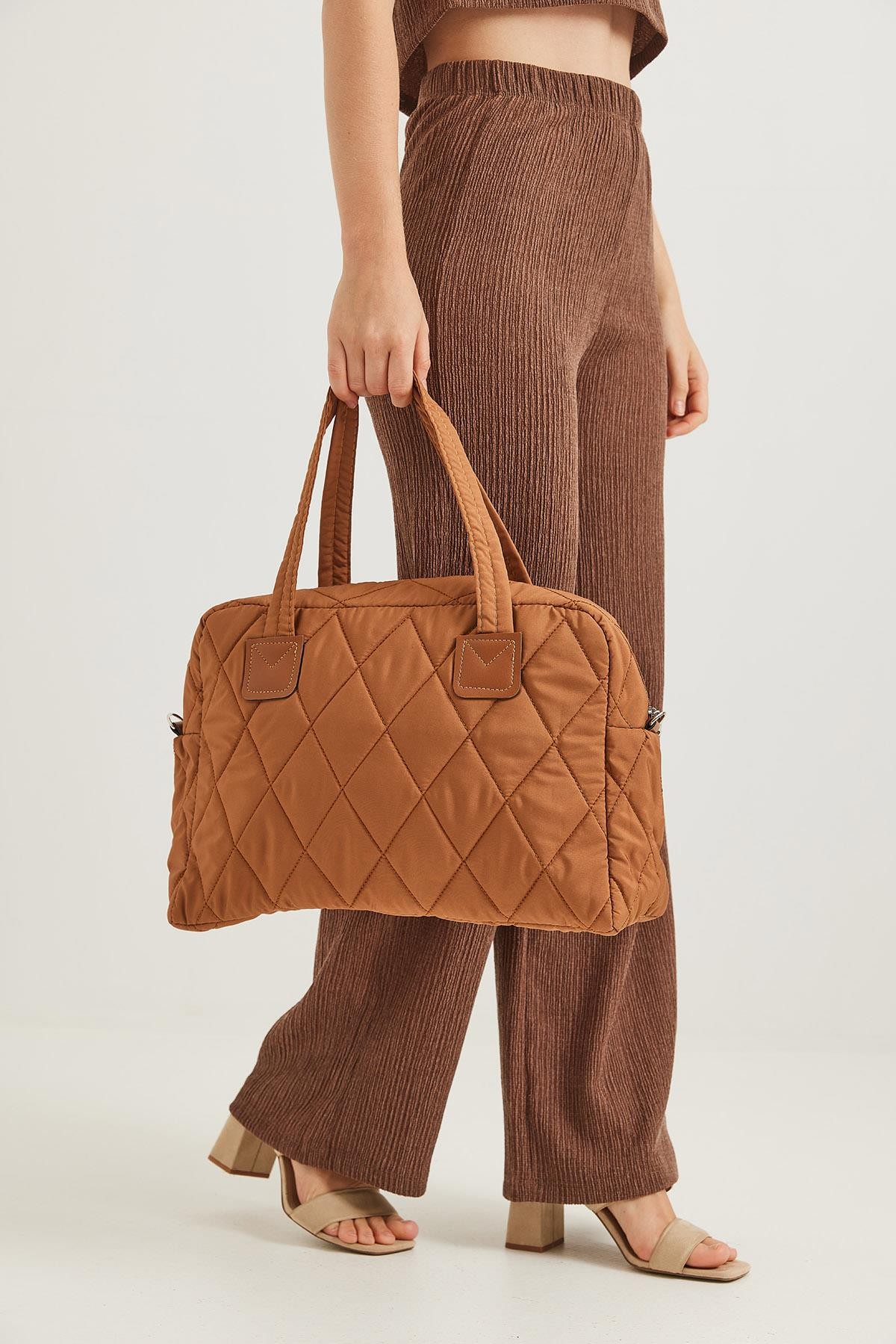 Kapitone Kumaş Cüzdanlı El Ve Omuz Çantası Taba (250628CNTXTBA)