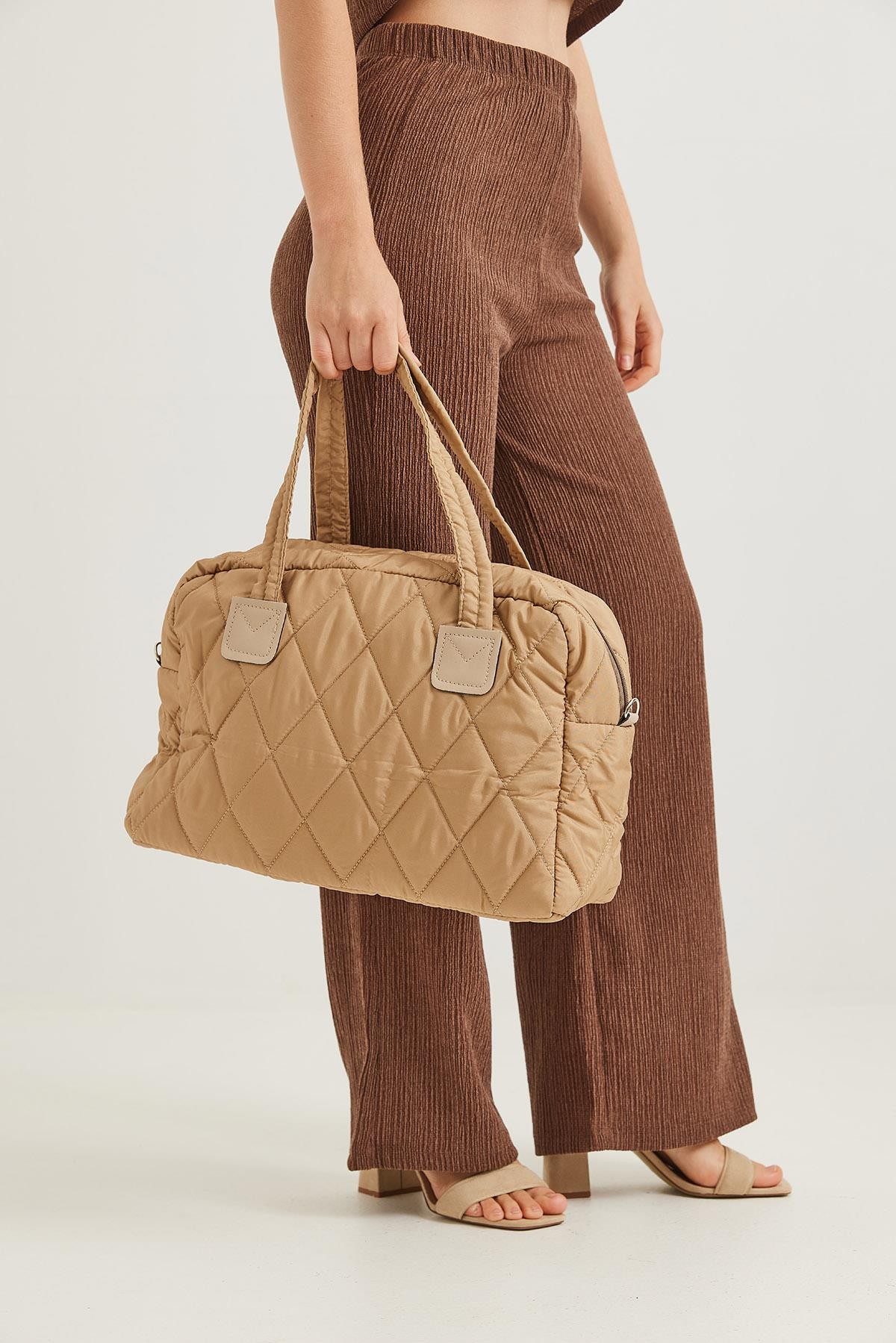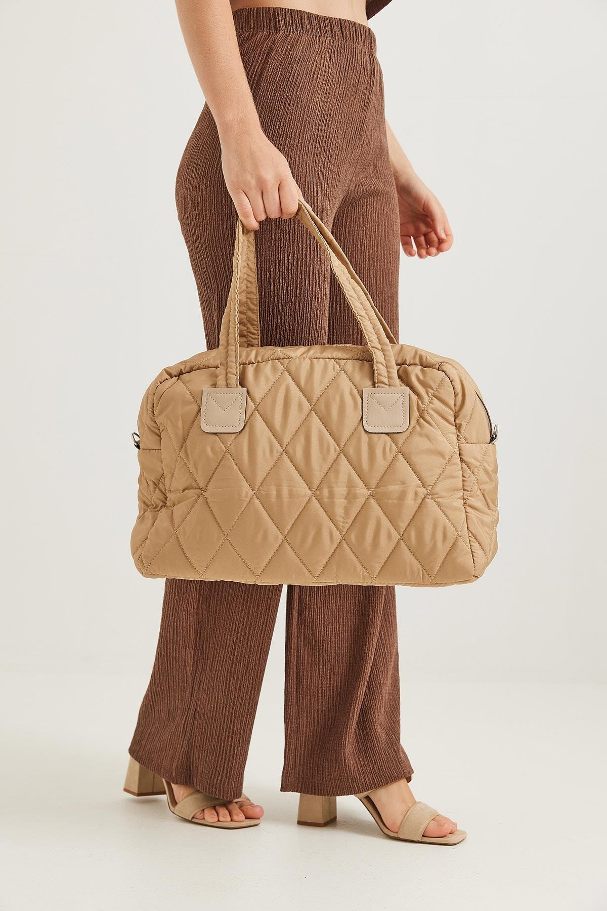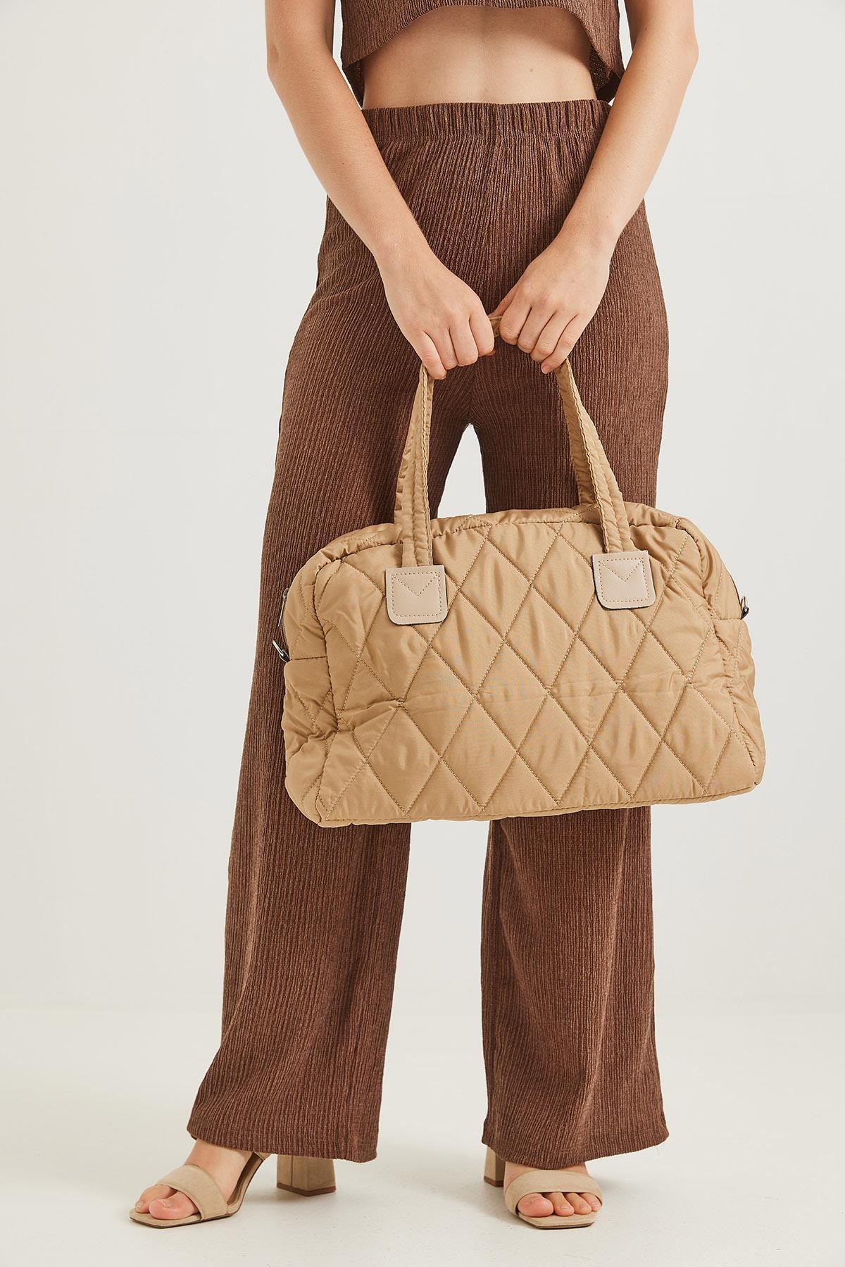 Kapitone Kumaş Cüzdanlı El Ve Omuz Çantası Vizon (250628CNTXVZN)