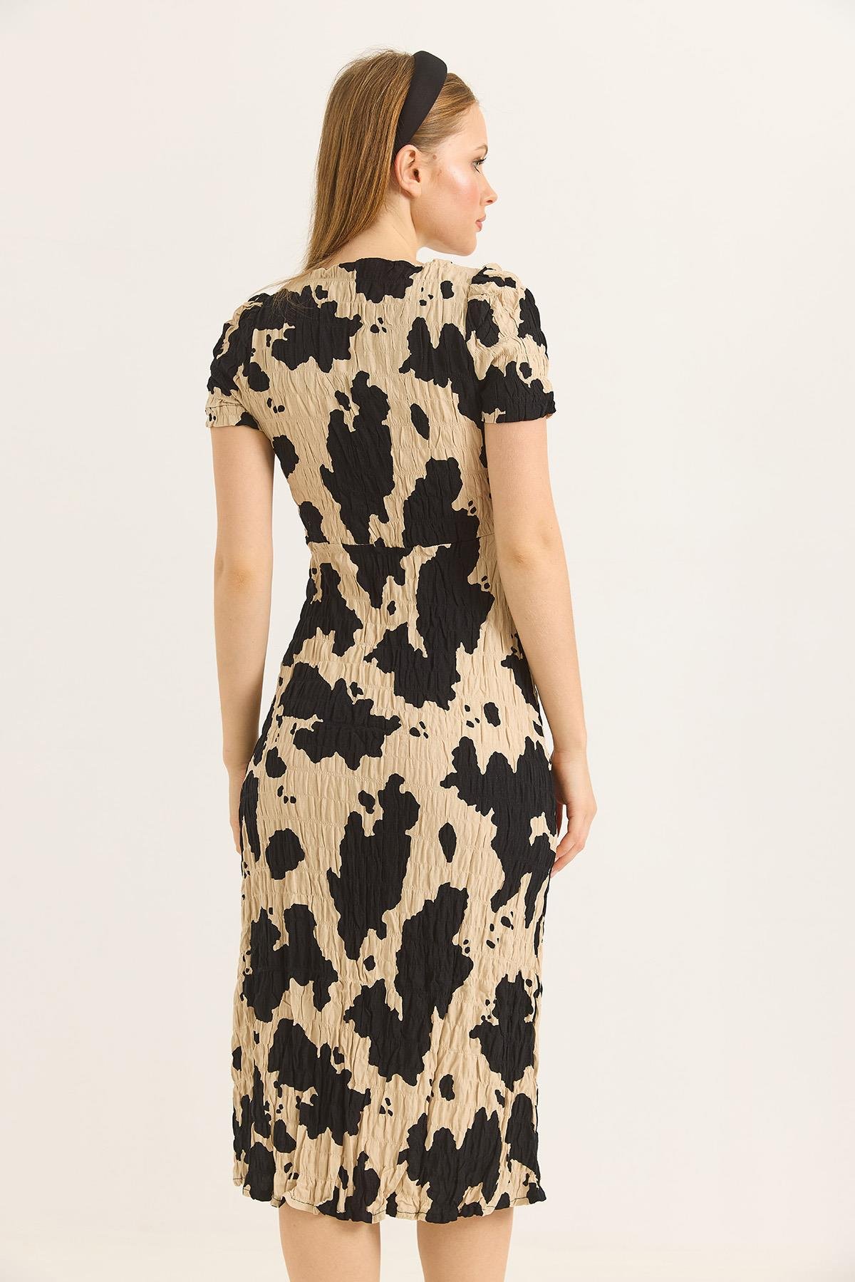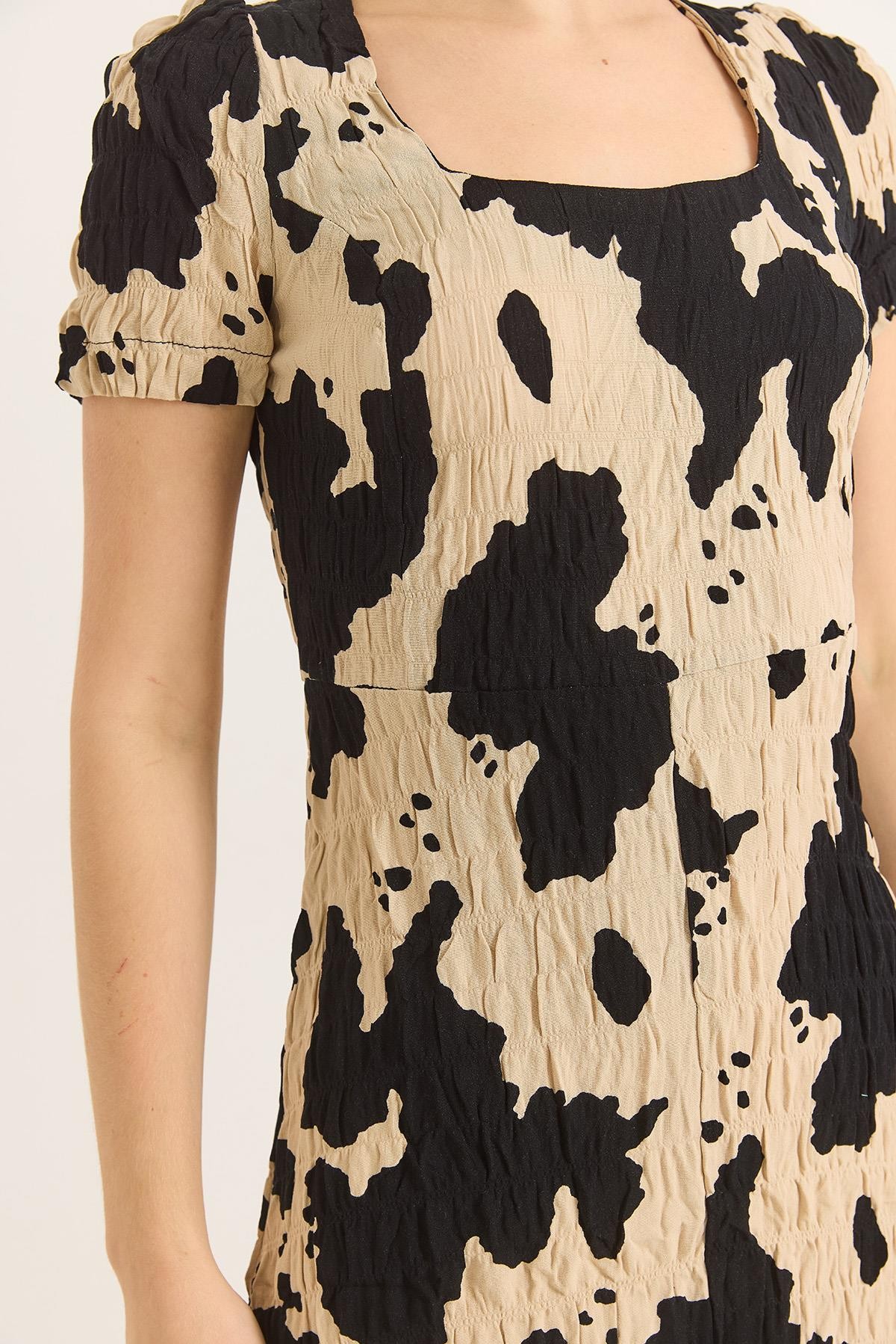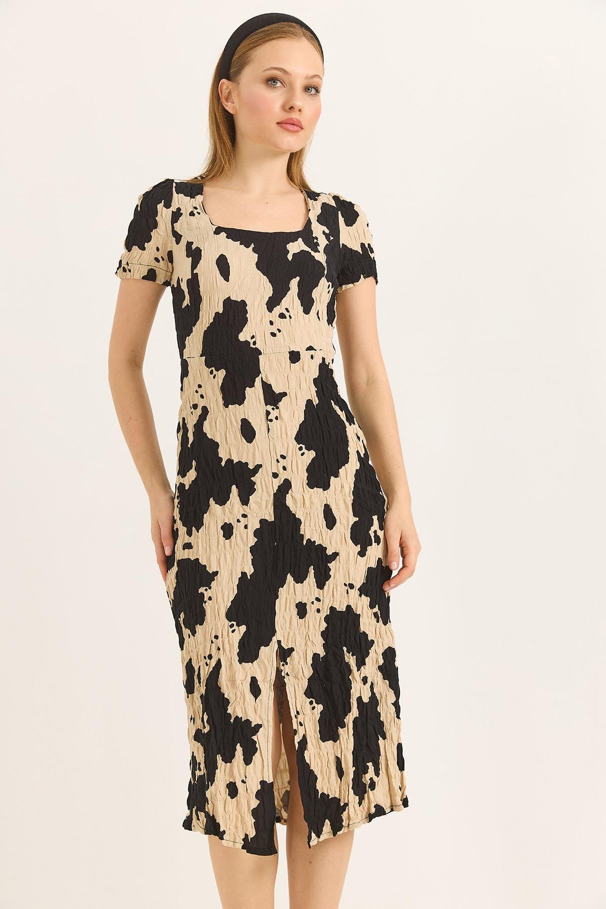 Kare Yaka Yırtmaçlı Kısa Kol Siyah Elbise (500156ELBXSYH)