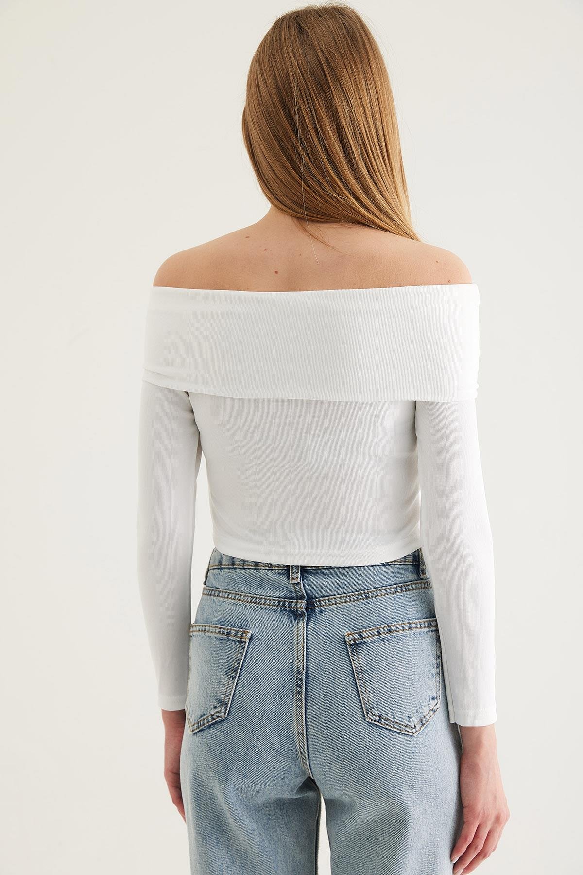 Kayık Yaka Yırtmaçlı Bluz Beyaz (250465BLZXBYZ)