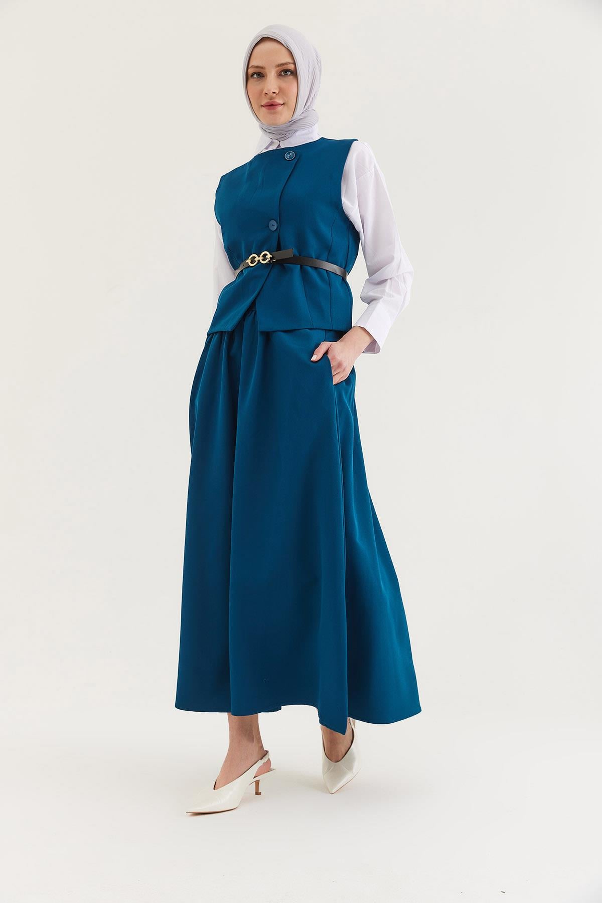 Kemer Detaylı Etekli İkili Takım Petrol (250414TKMXPTRL )