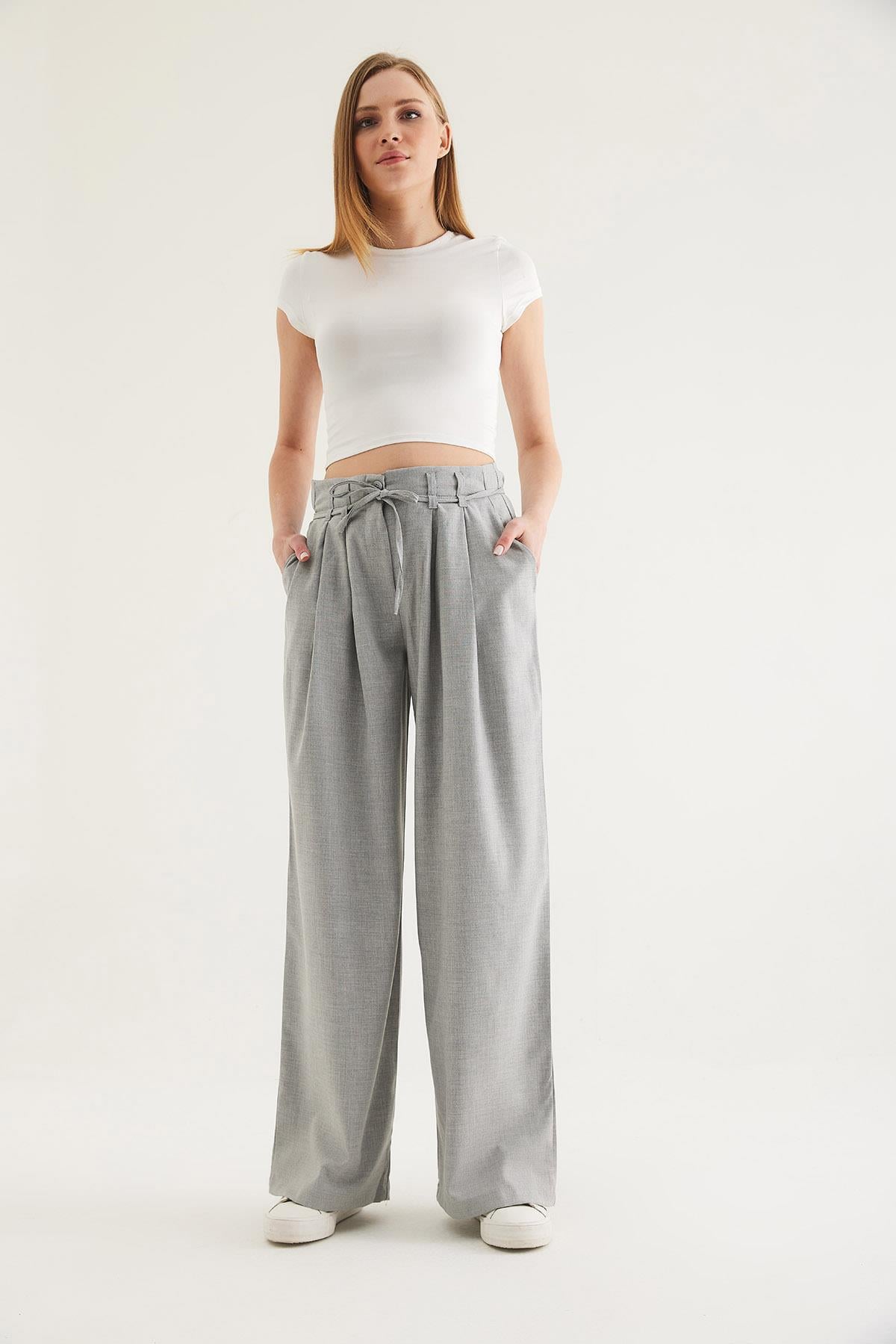 Kendinden Kemerli Cepli Bol Pantolon Gri (250027PNTXGRi)