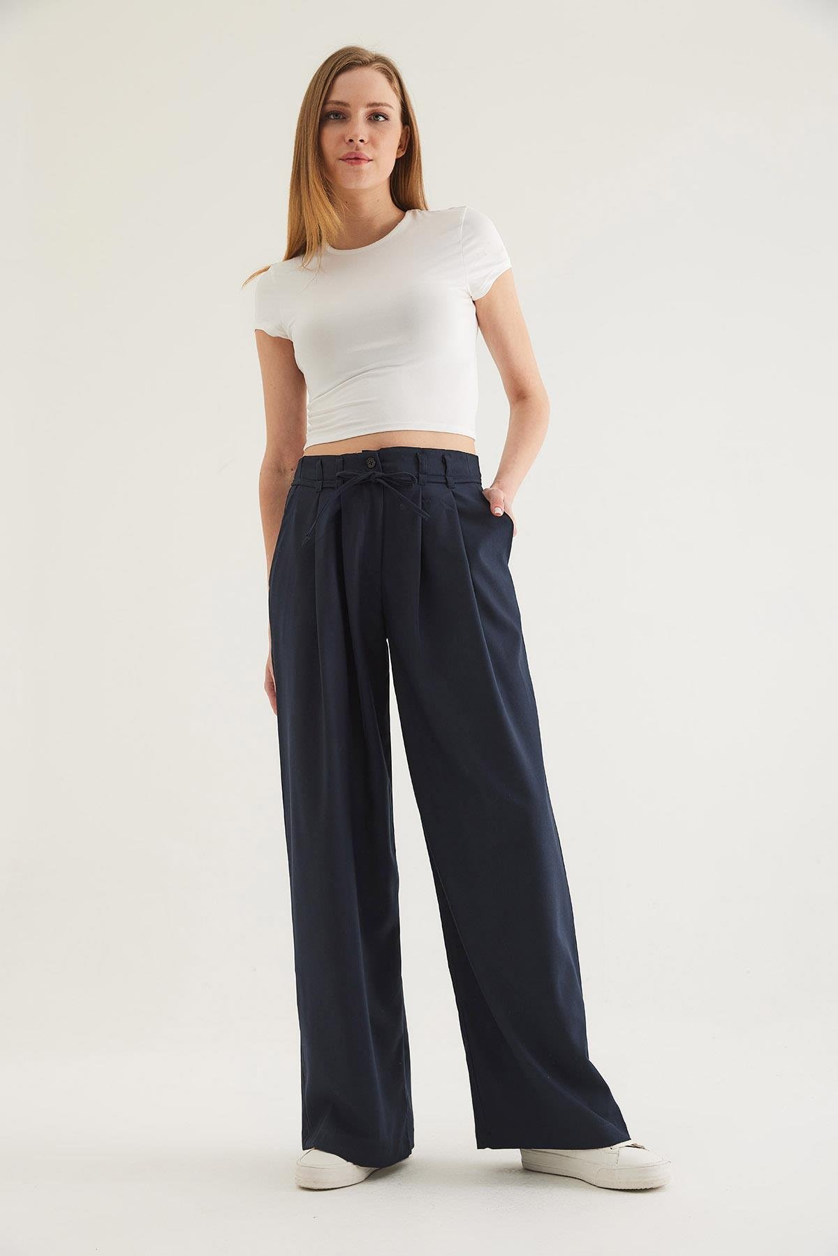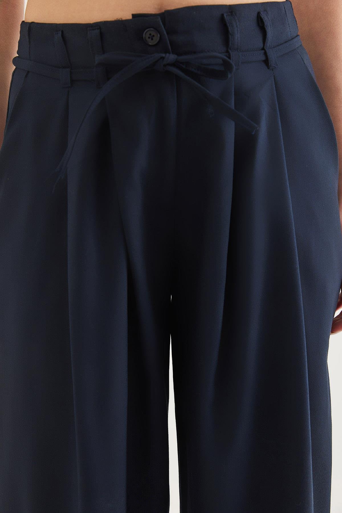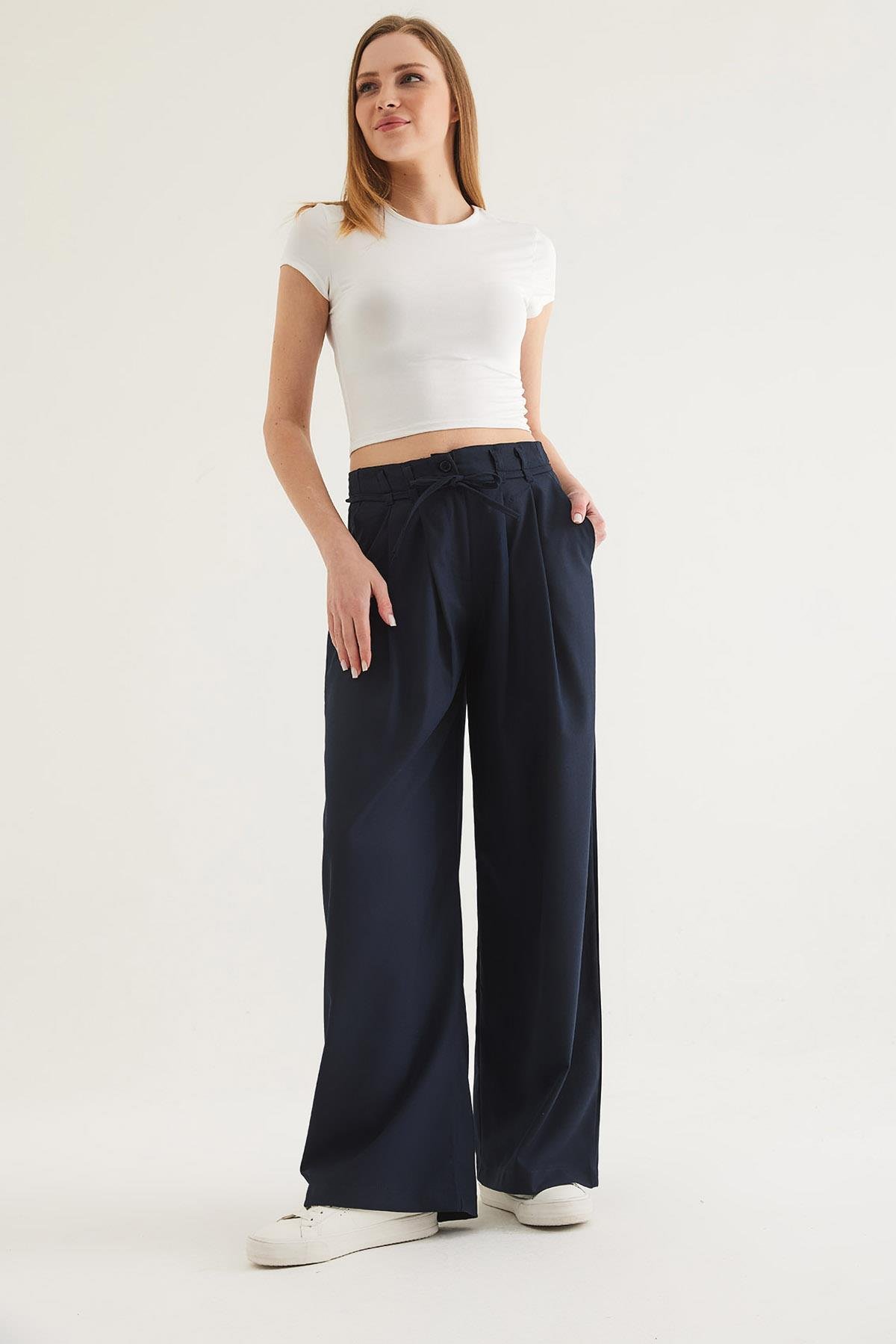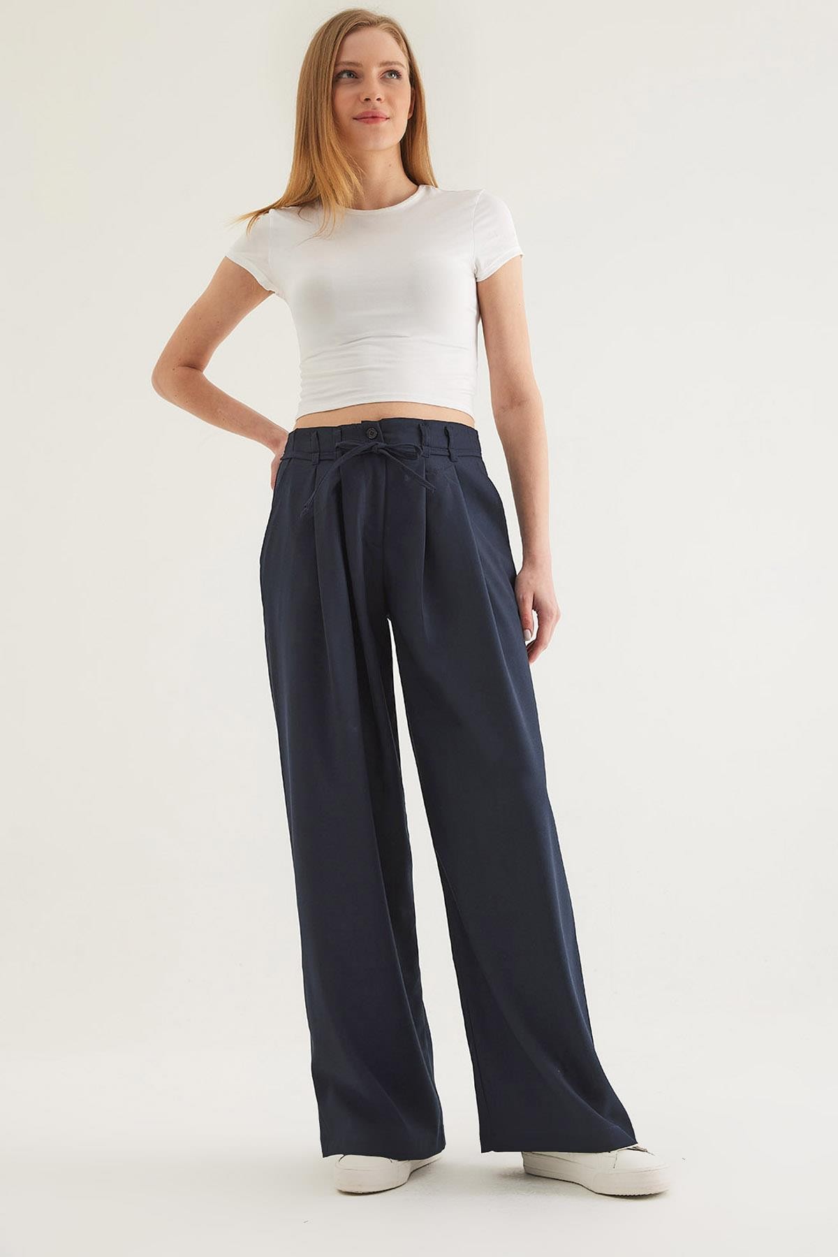 Kendinden Kemerli Cepli Bol Pantolon Lacivert (250027PNTXLACİ)