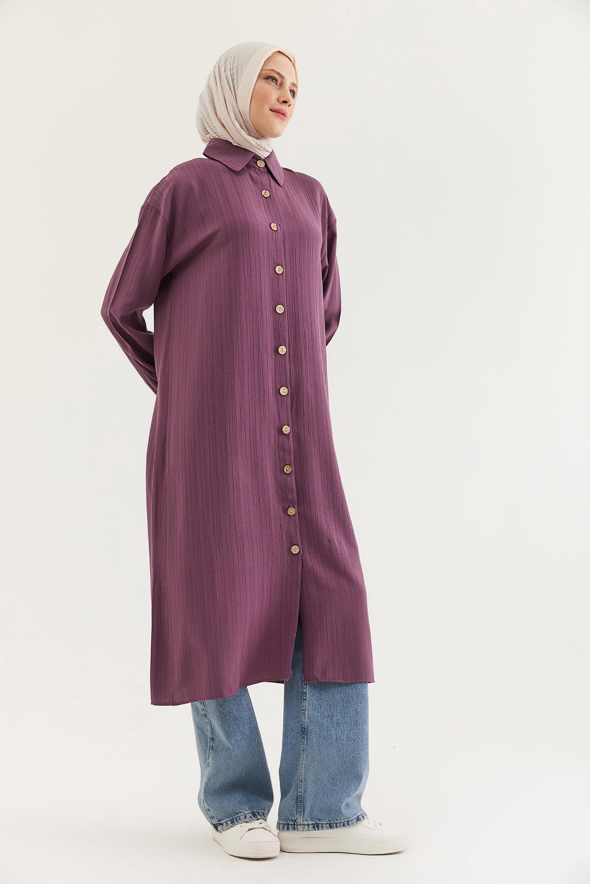 Keten Düğmeli Uzun Tesettür Tunik Mürdüm (250425TNKXMRDM)