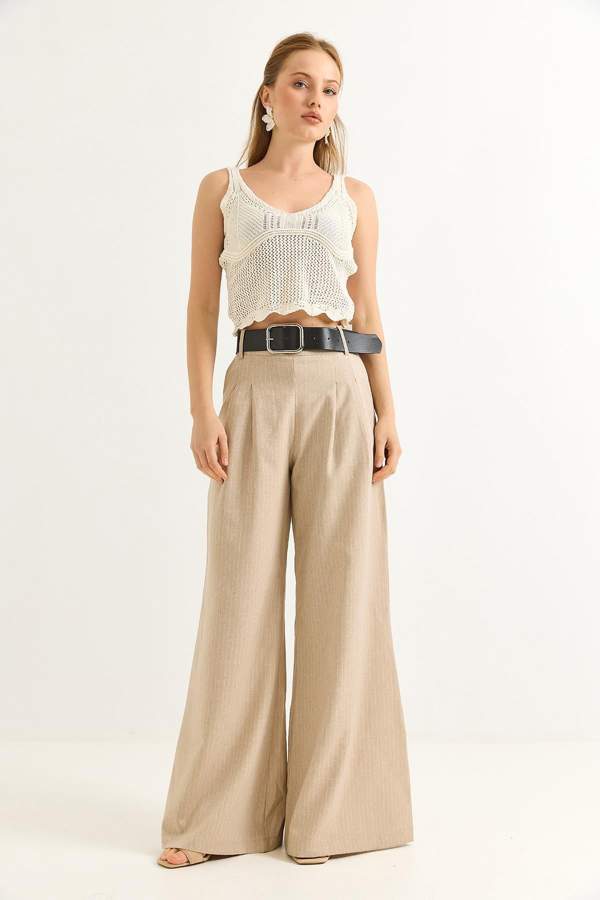 Keten Karışımlı Palazzo Pantolon Bej (251045PNTXBEJ)
