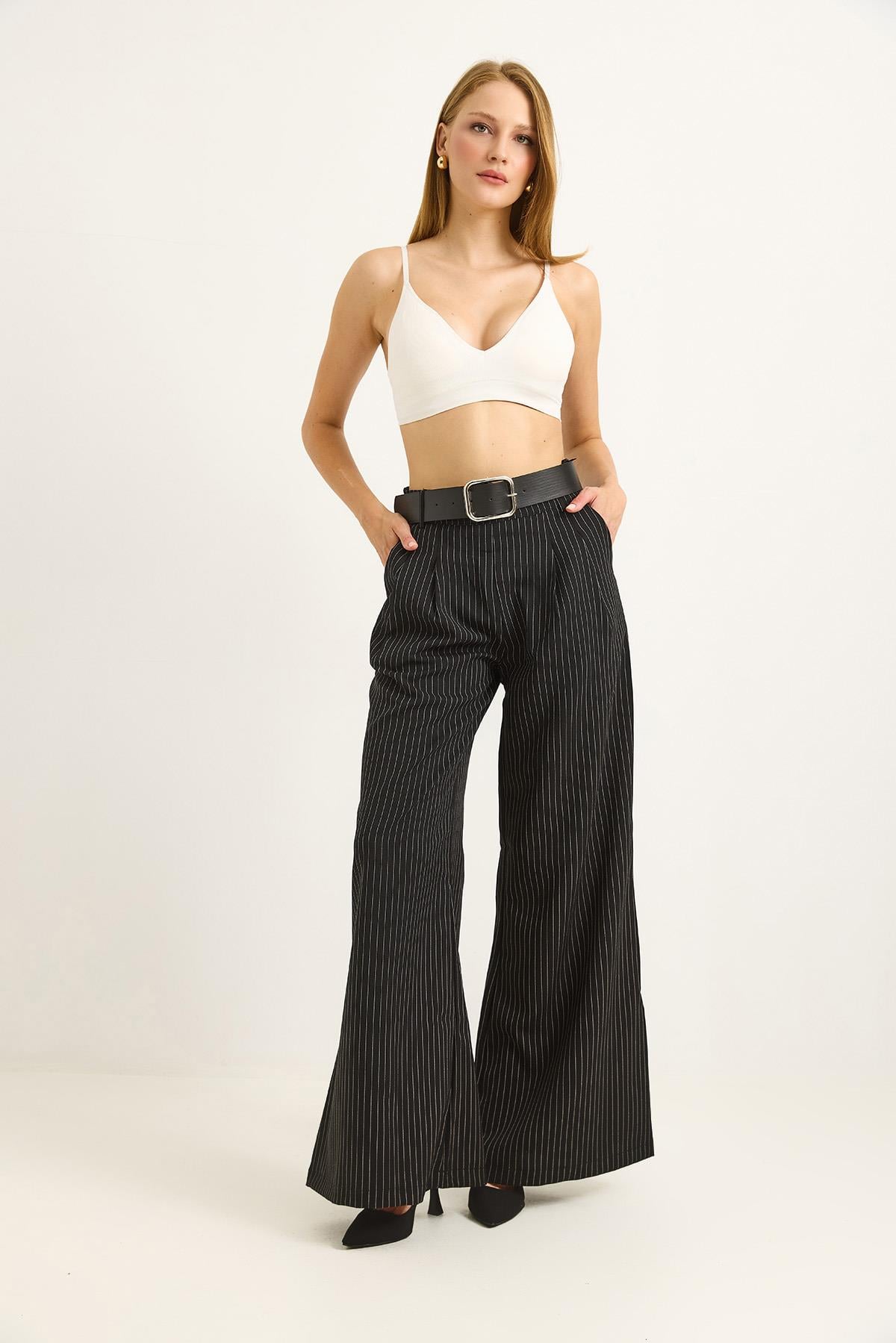 Keten Karışımlı Palazzo Pantolon Siyah (251045PNTXSYH)