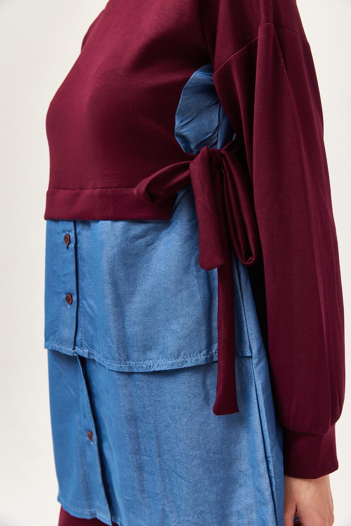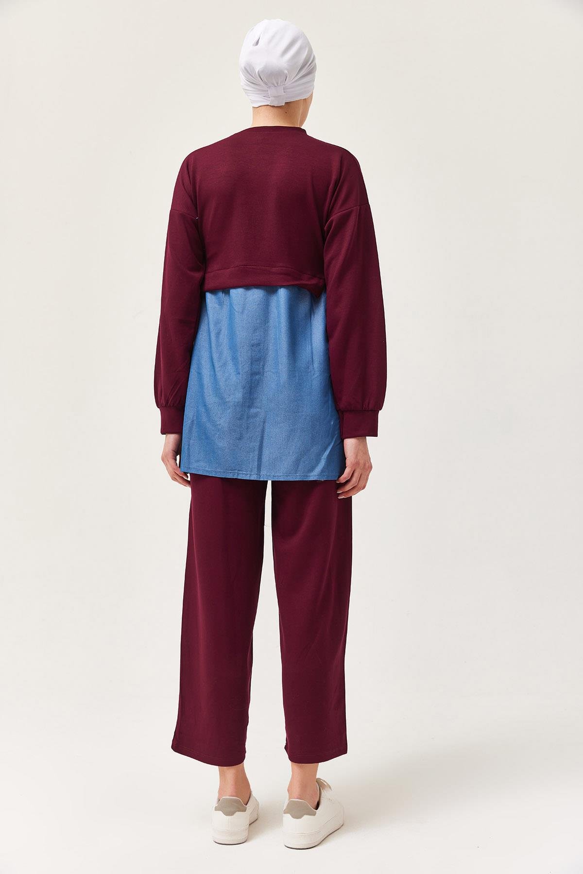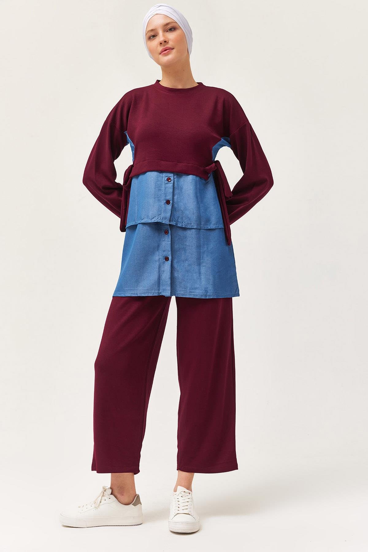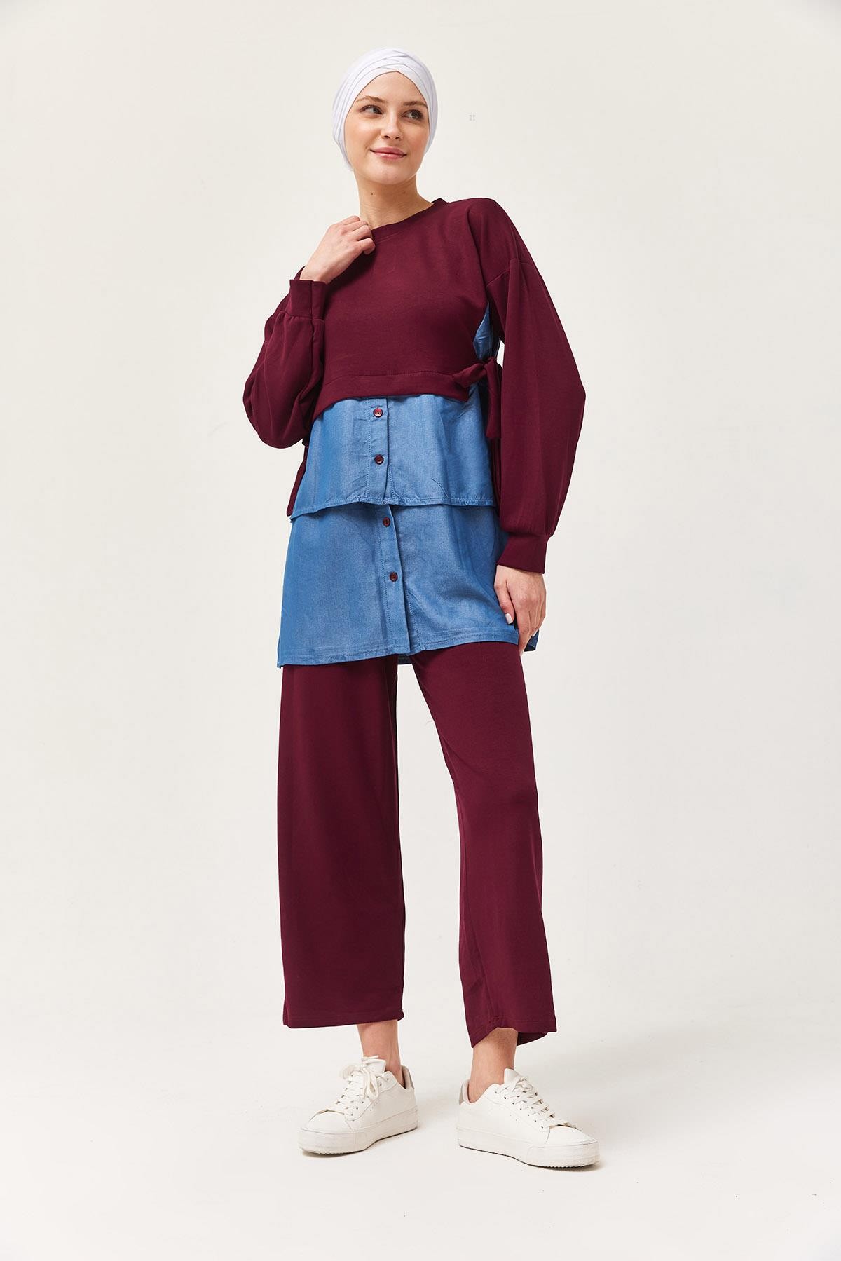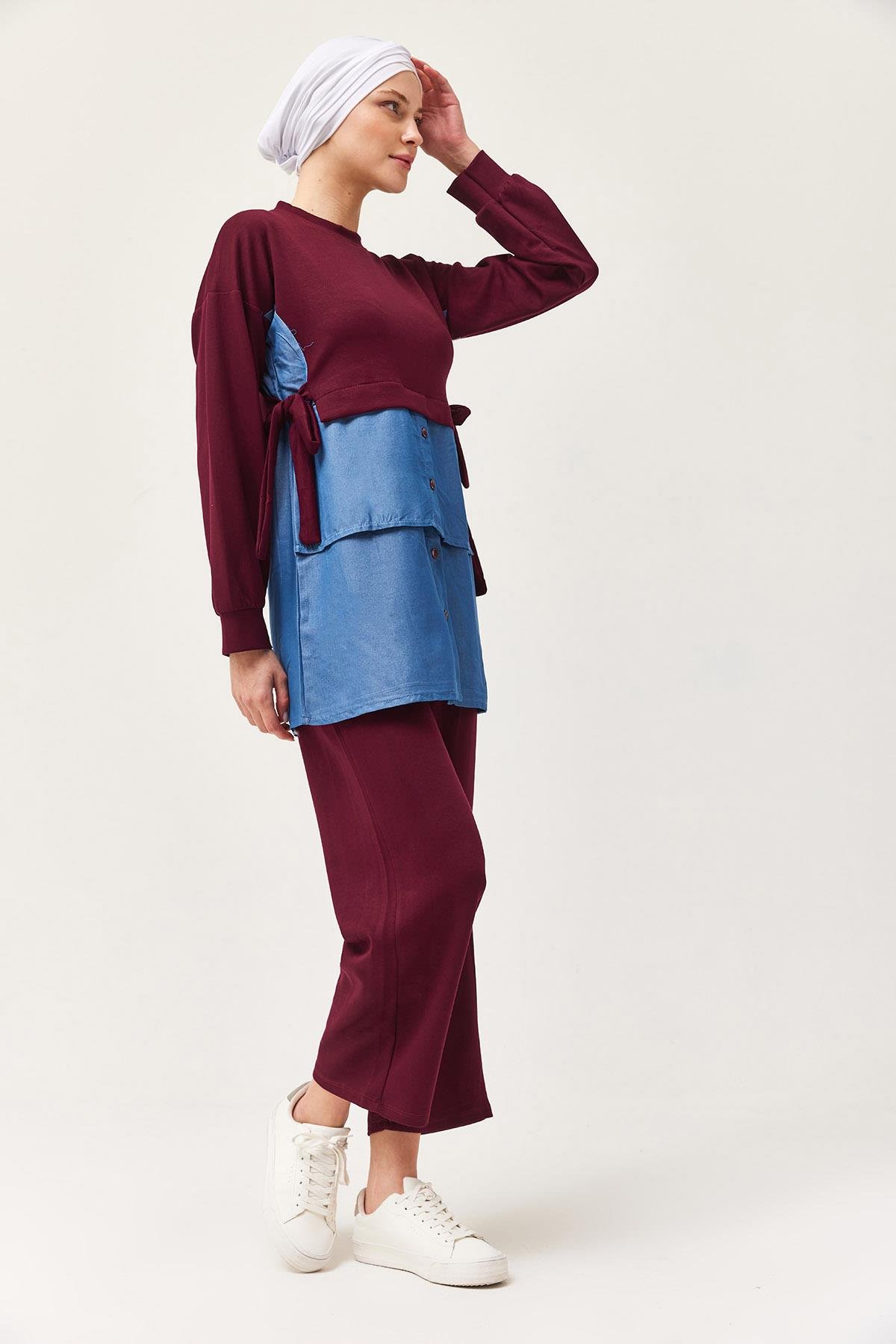 Kot Garnili Bağlamalı İkili Takım Bordo