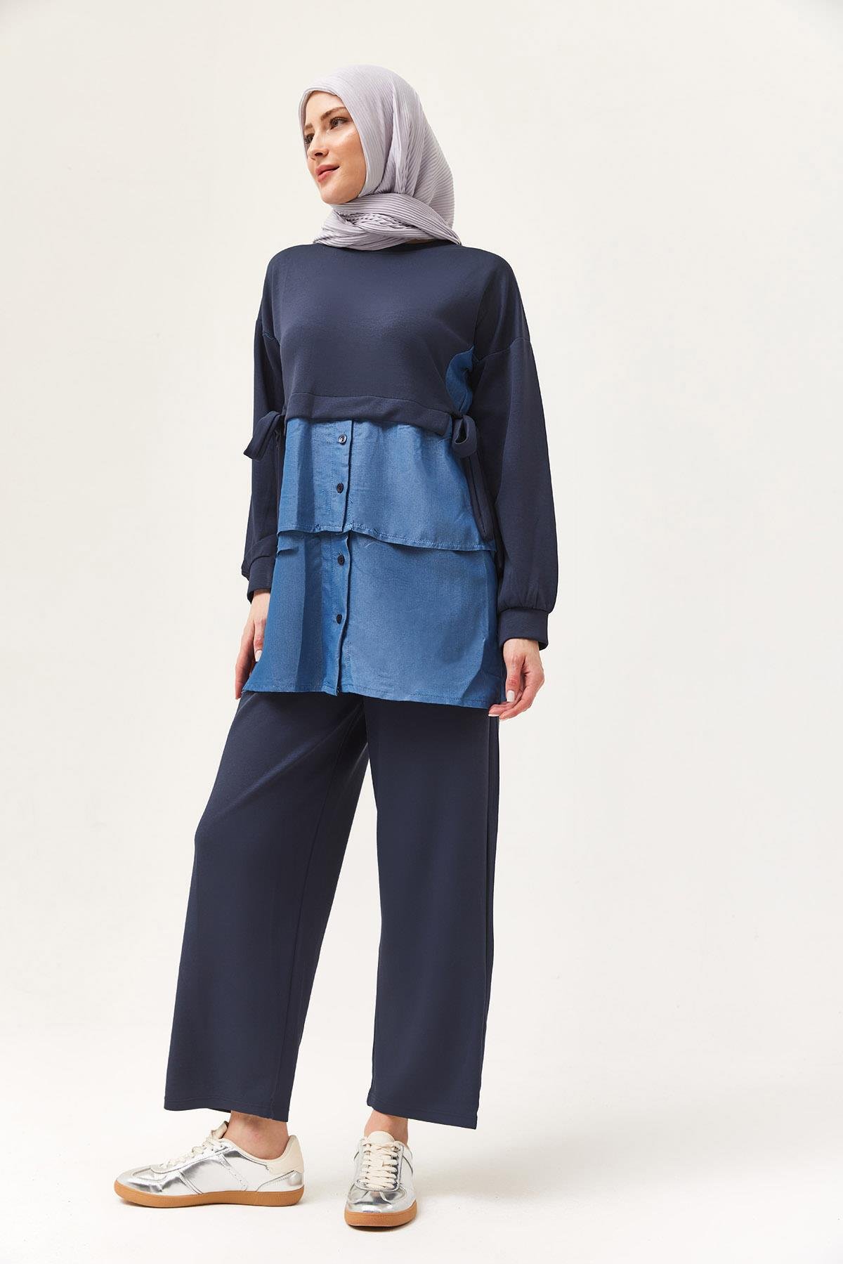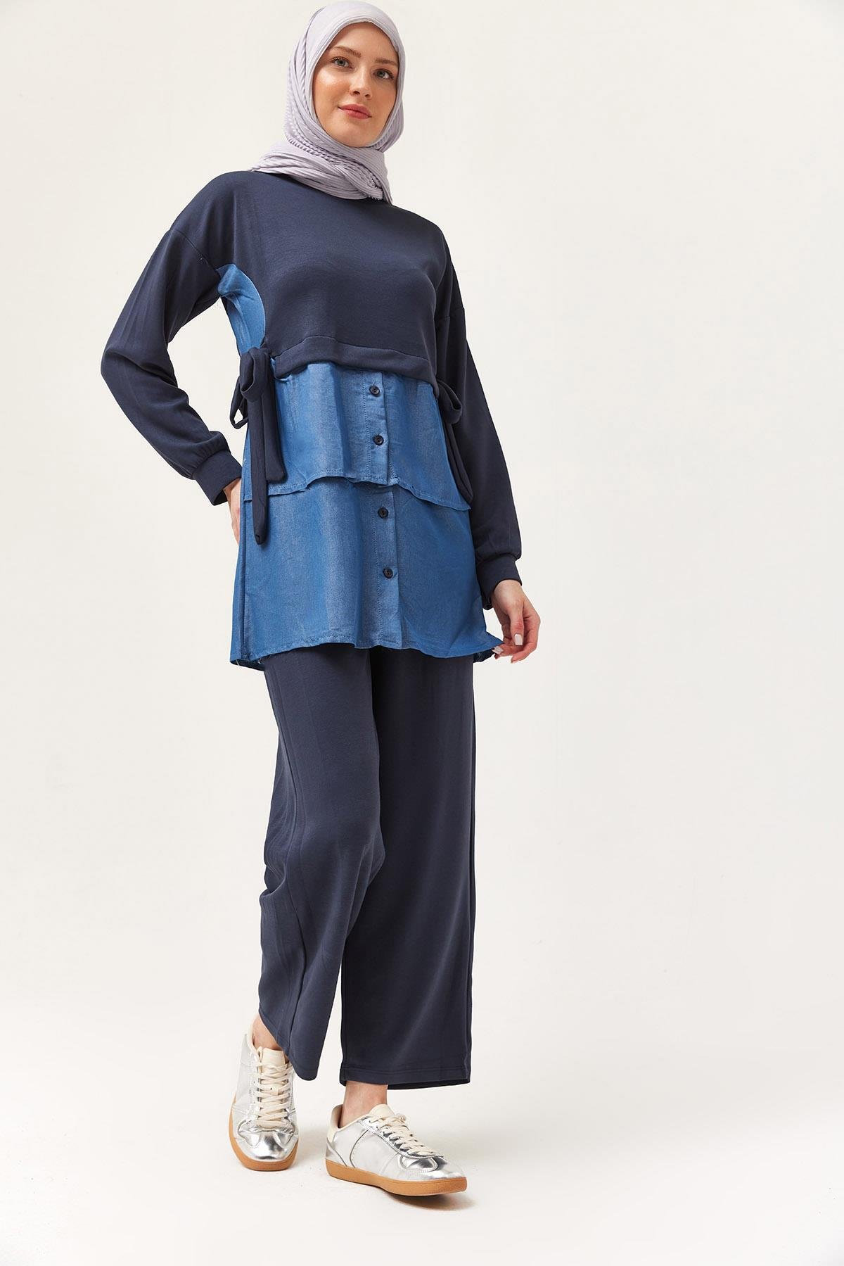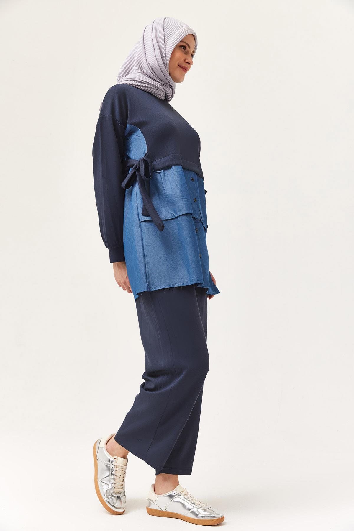 Kot Garnili Bağlamalı İkili Takım İndigo