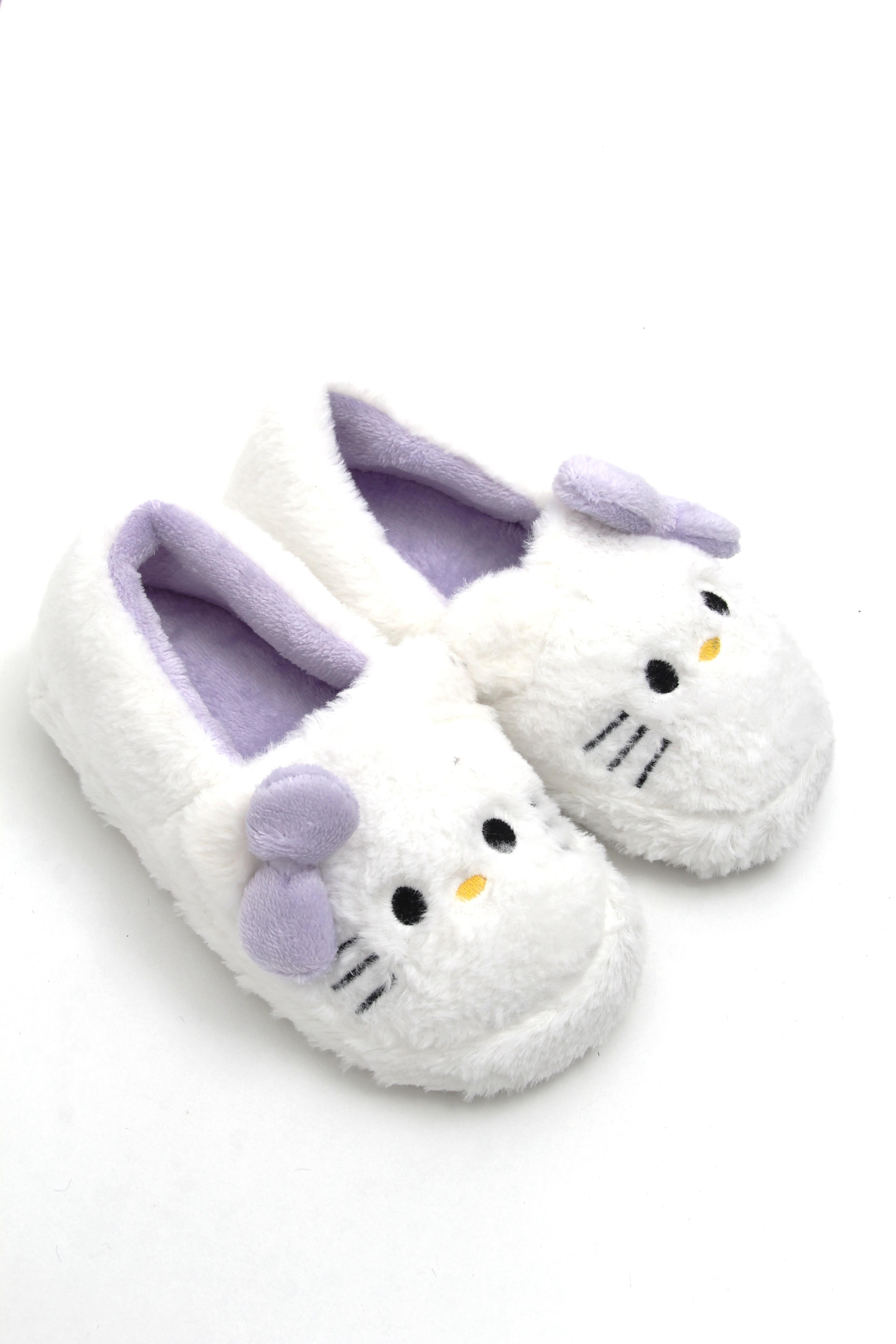 Kurdela Aksesuarlı Peluş Ev Terliği Lila