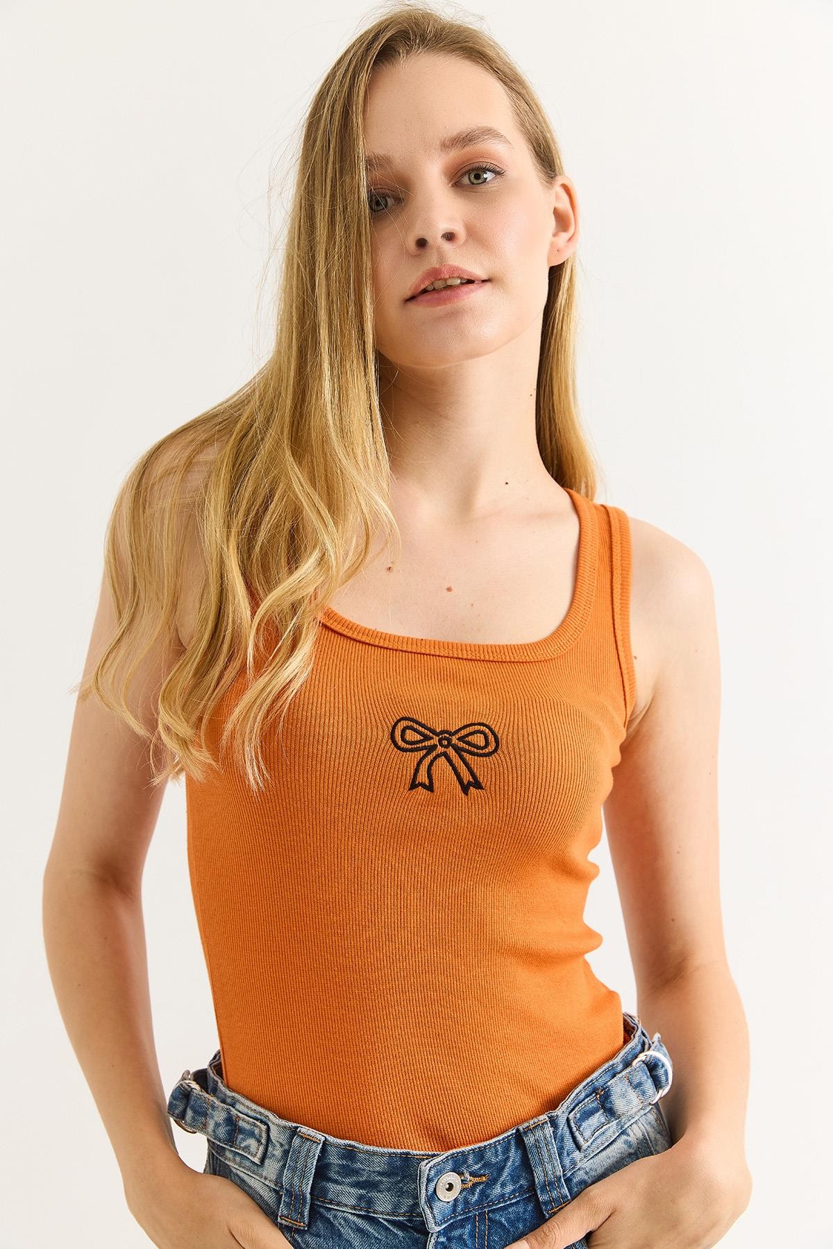 Kurdele İşlemeli Fittili Kalın Askılı Bluz Turuncu (500295BLZXTRN)