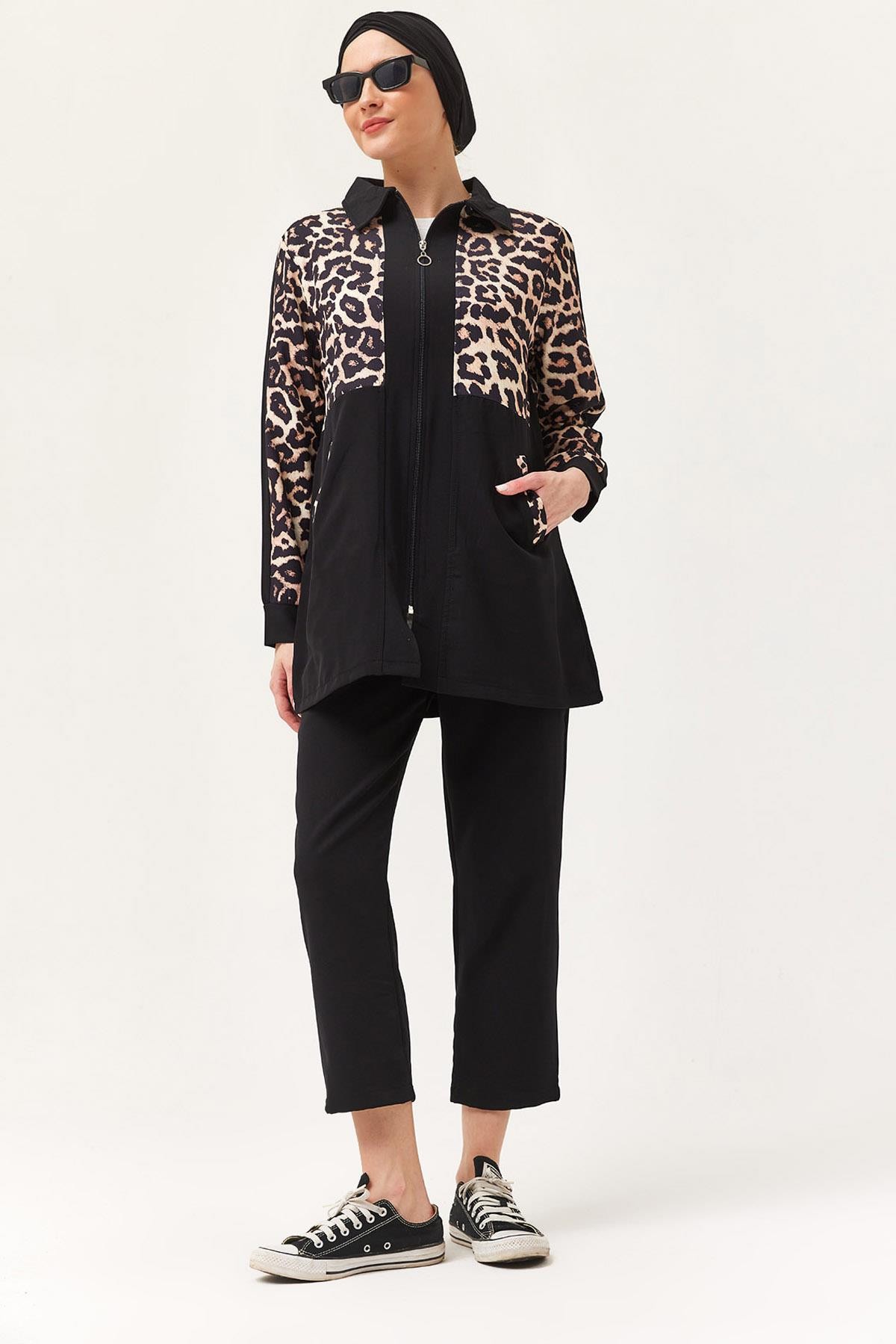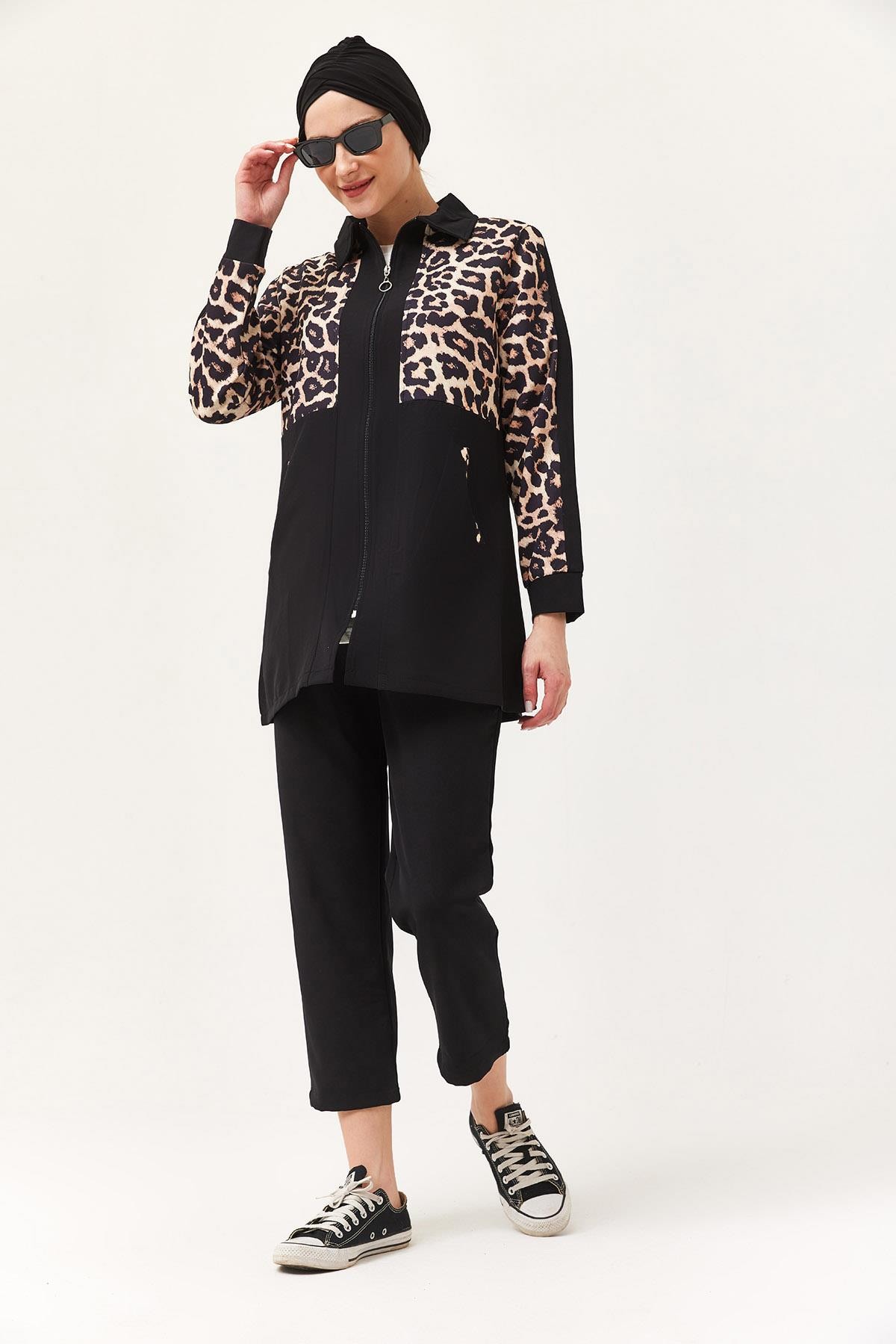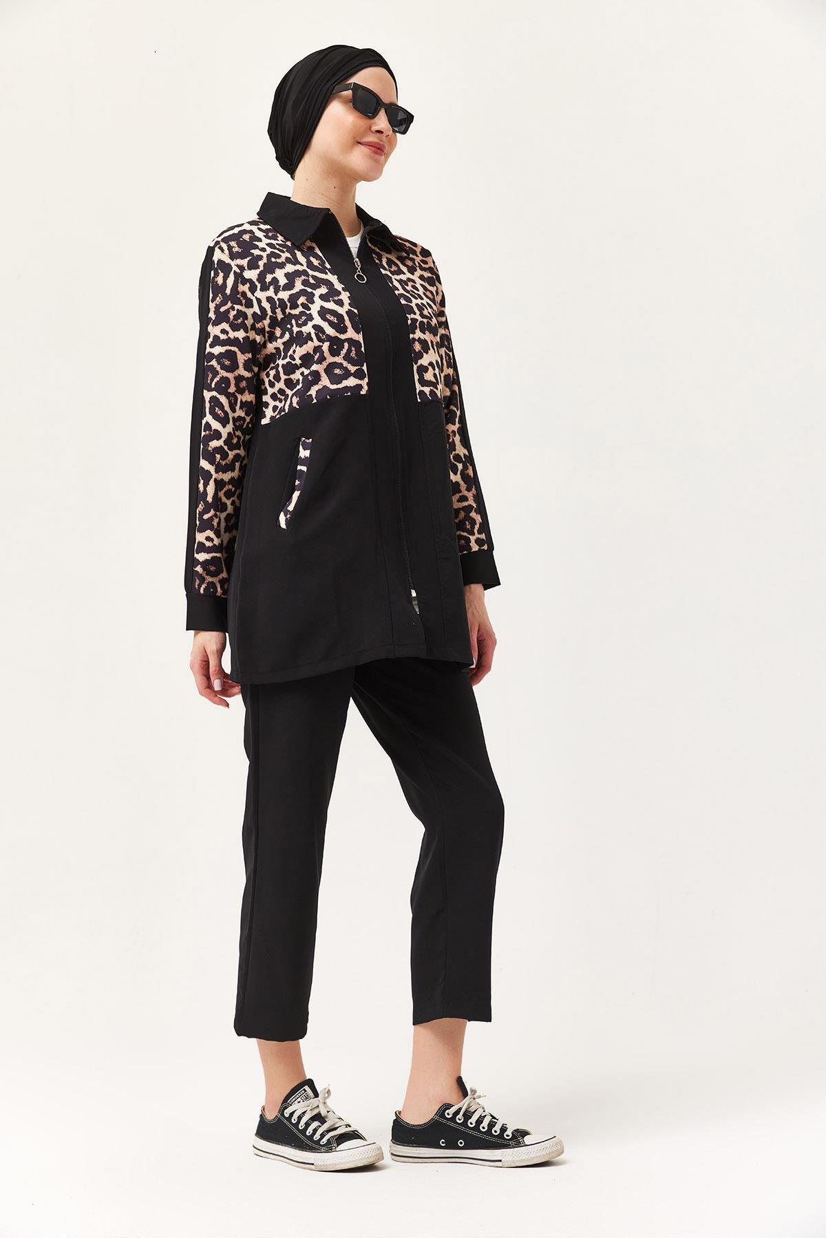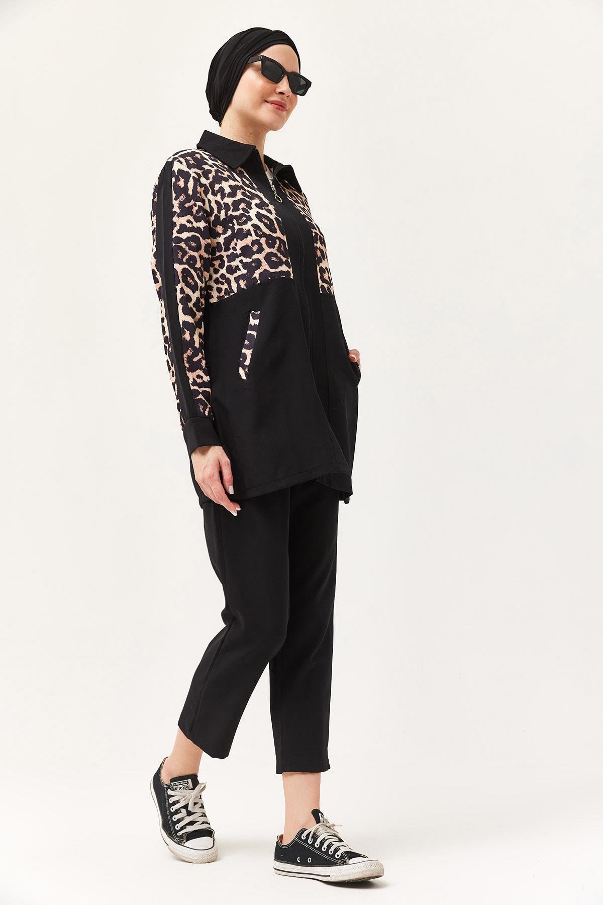 Leopar Garnili Fermuarlı İkili Takım Siyah (250440TKMXSYH)