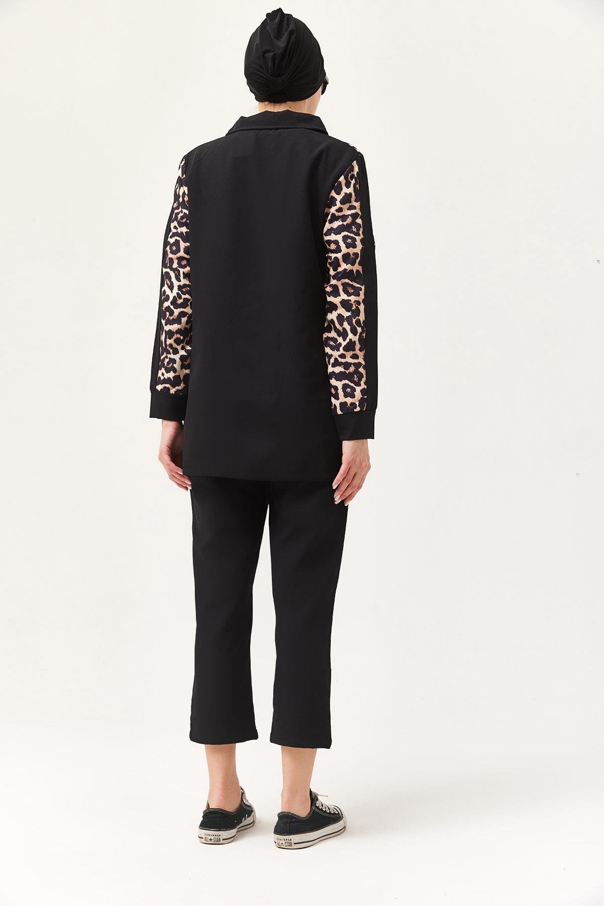 Leopar Garnili Fermuarlı İkili Takım Siyah