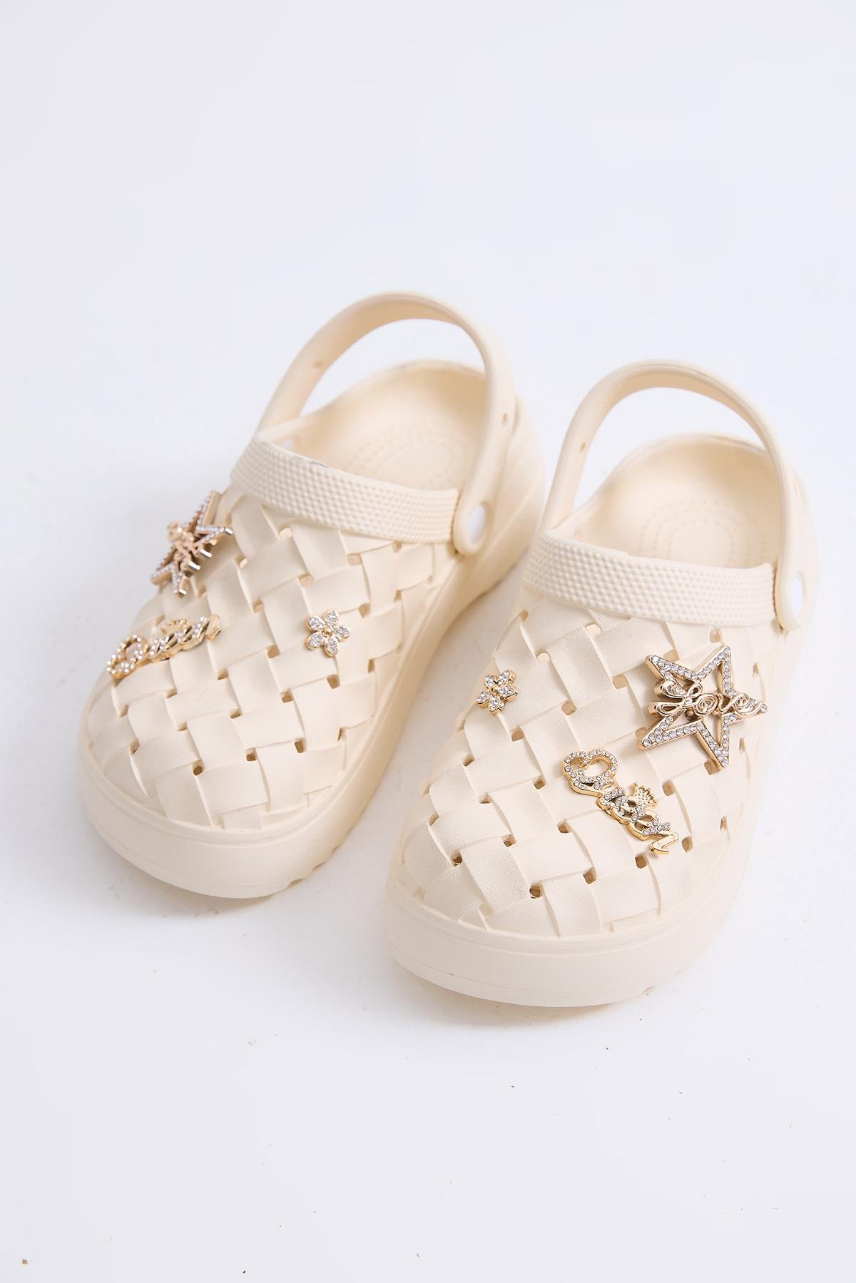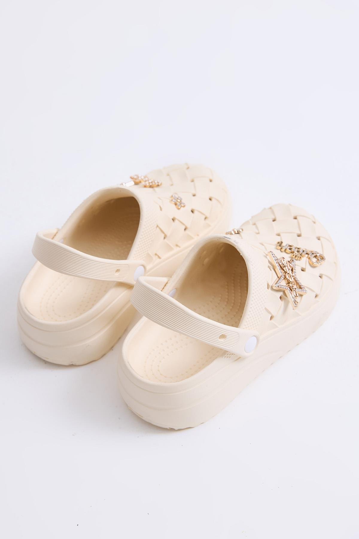 Masaj Tabanlı  Aksesuarlı Crocs Terlik Bej