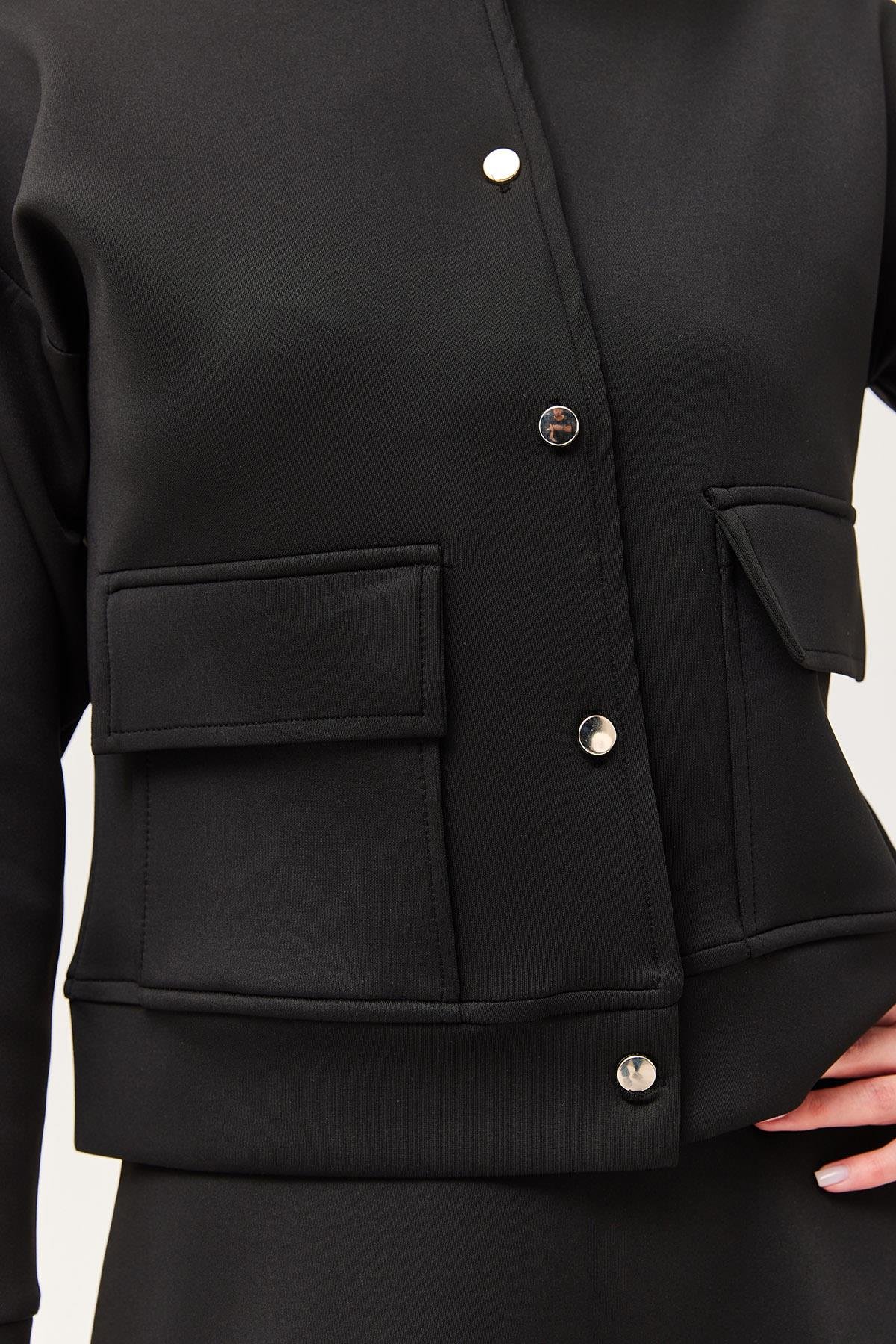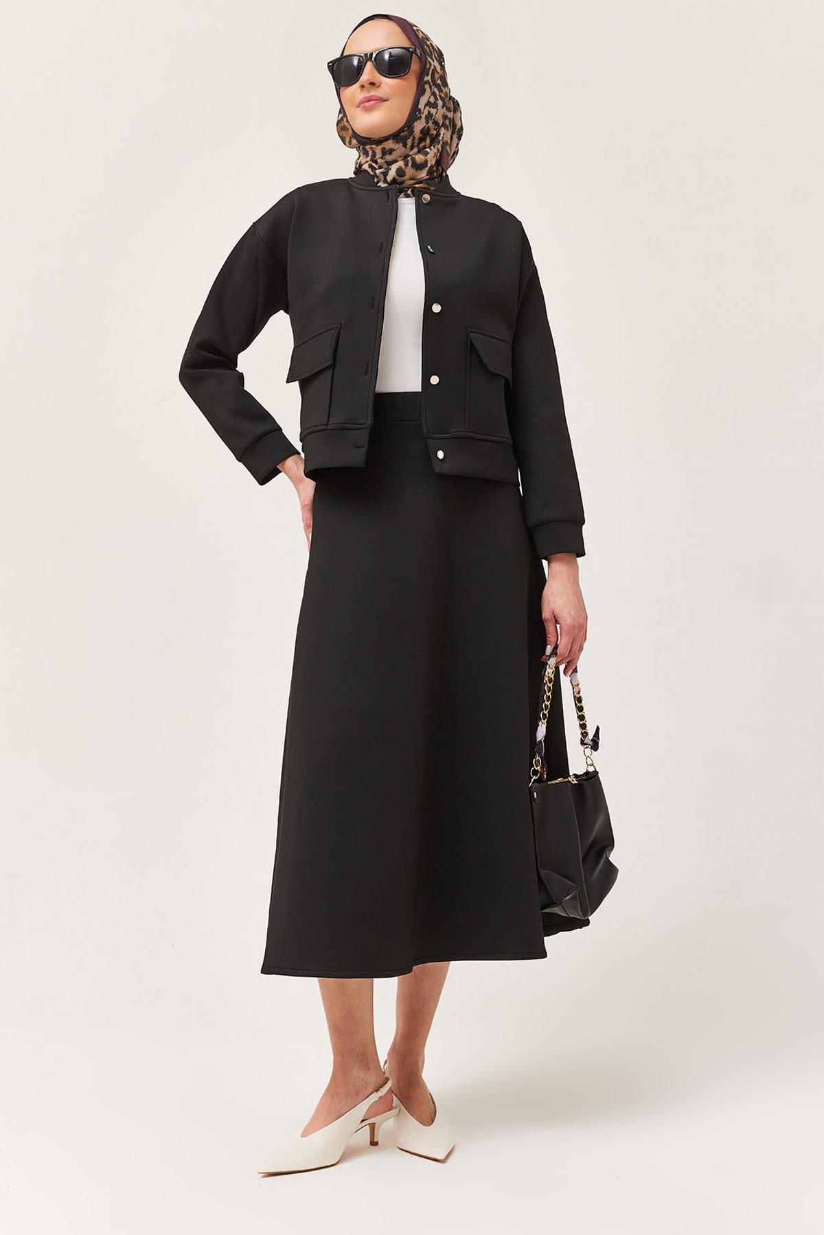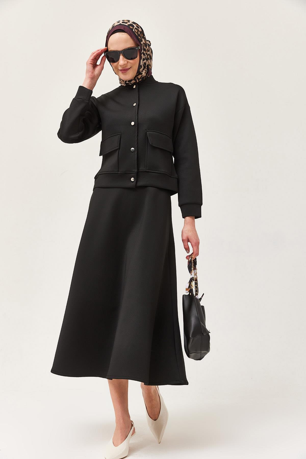 Metal Düğmeli Etekli Scuba İkili Takım Siyah (250389TKMXSYH)