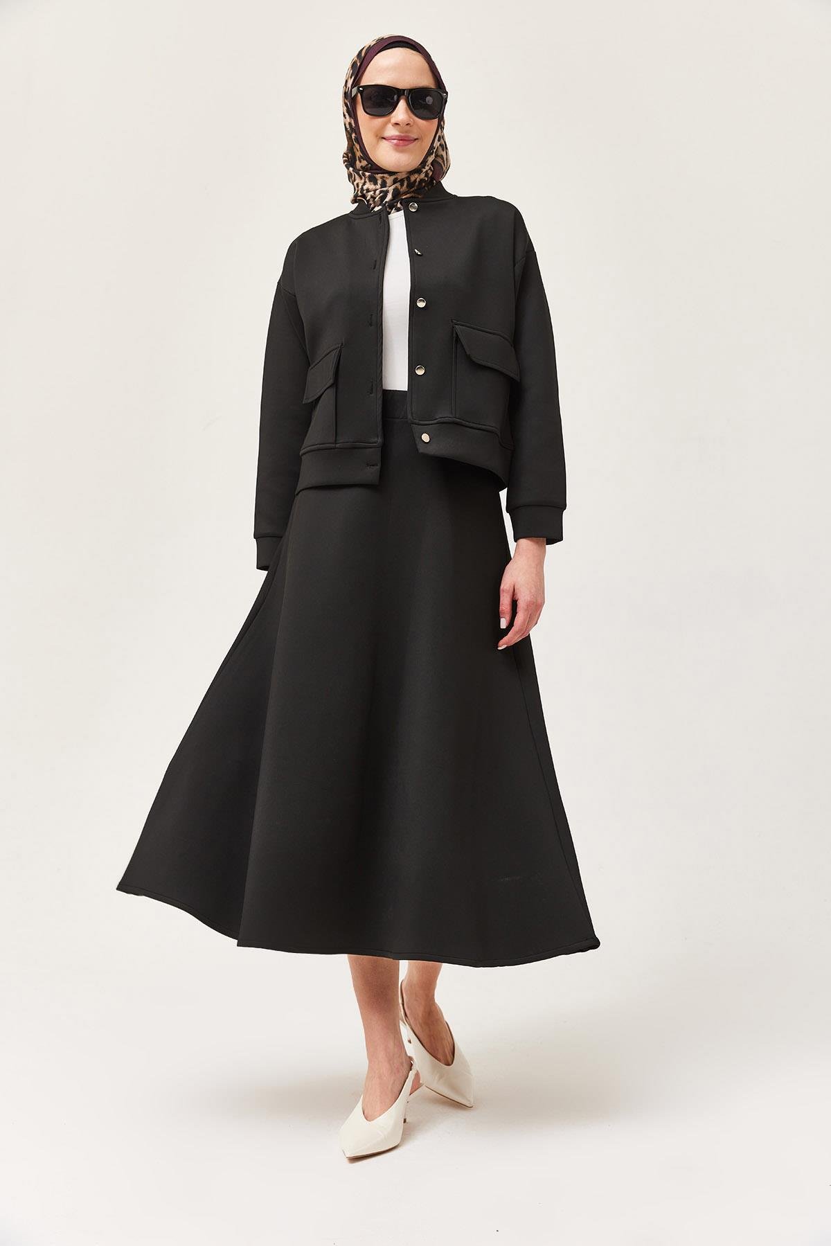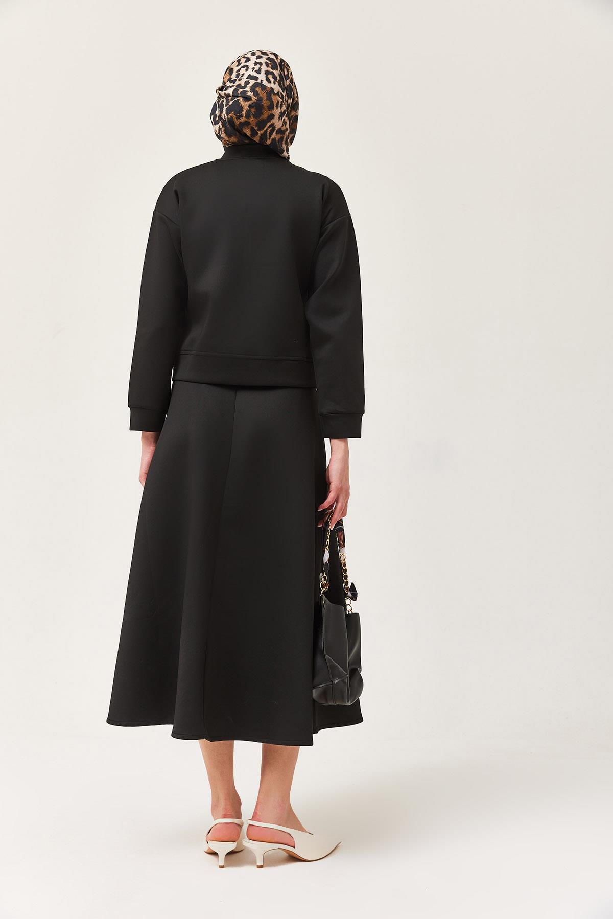 Metal Düğmeli Etekli Scuba İkili Takım Siyah