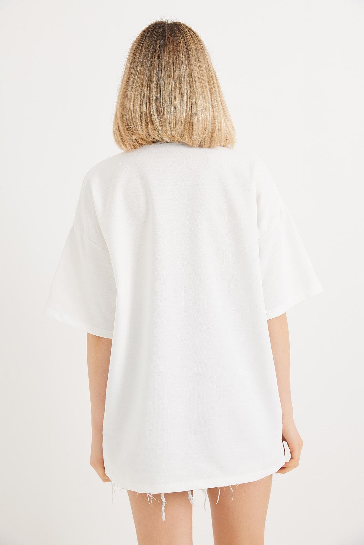 Nakışlı Bisiklet Yaka Tshirt Beyaz (250558TSHXBYZ)