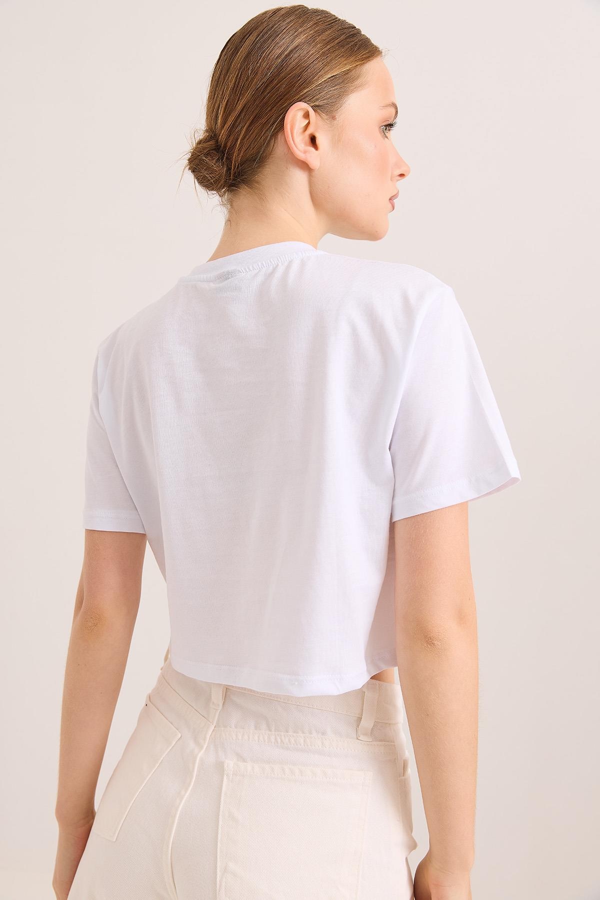 Nakışlı Örme Pamuk Crop Tshirt Beyaz (250727TSHXBYZ)