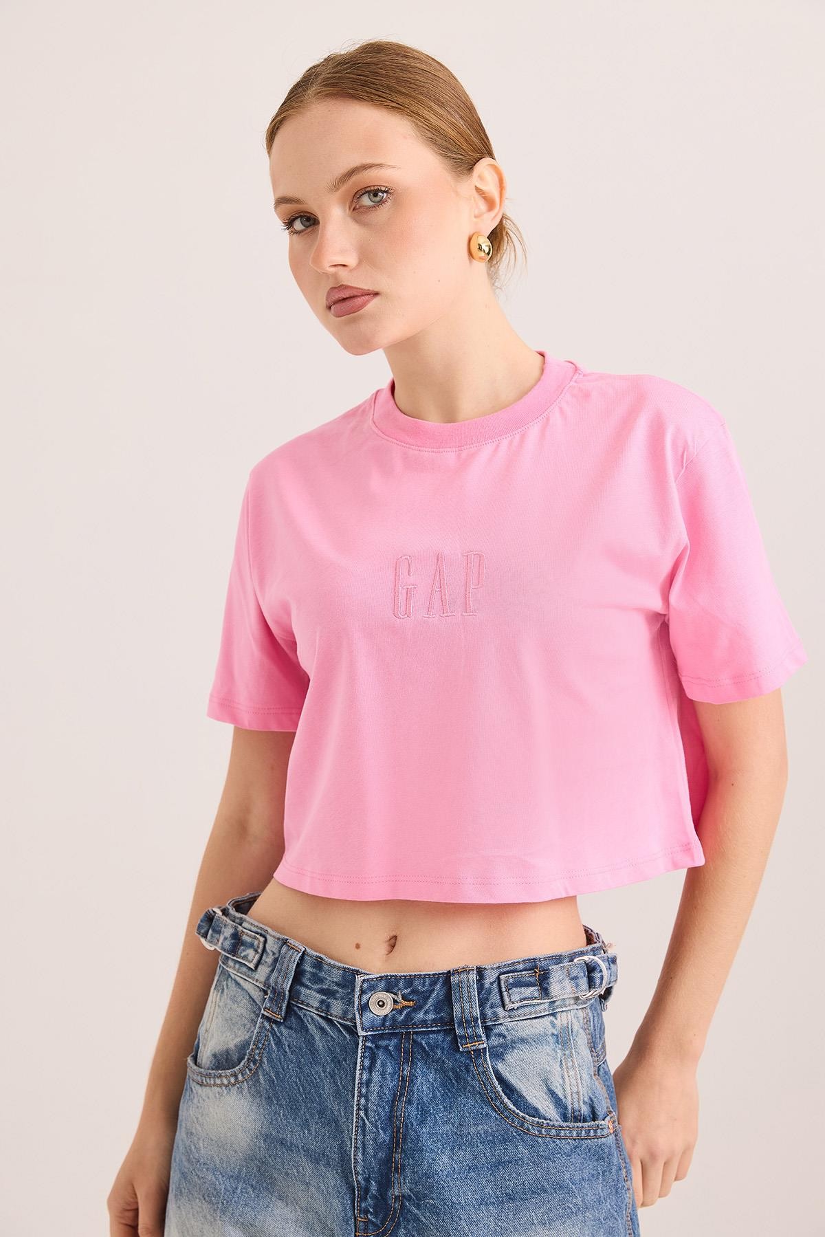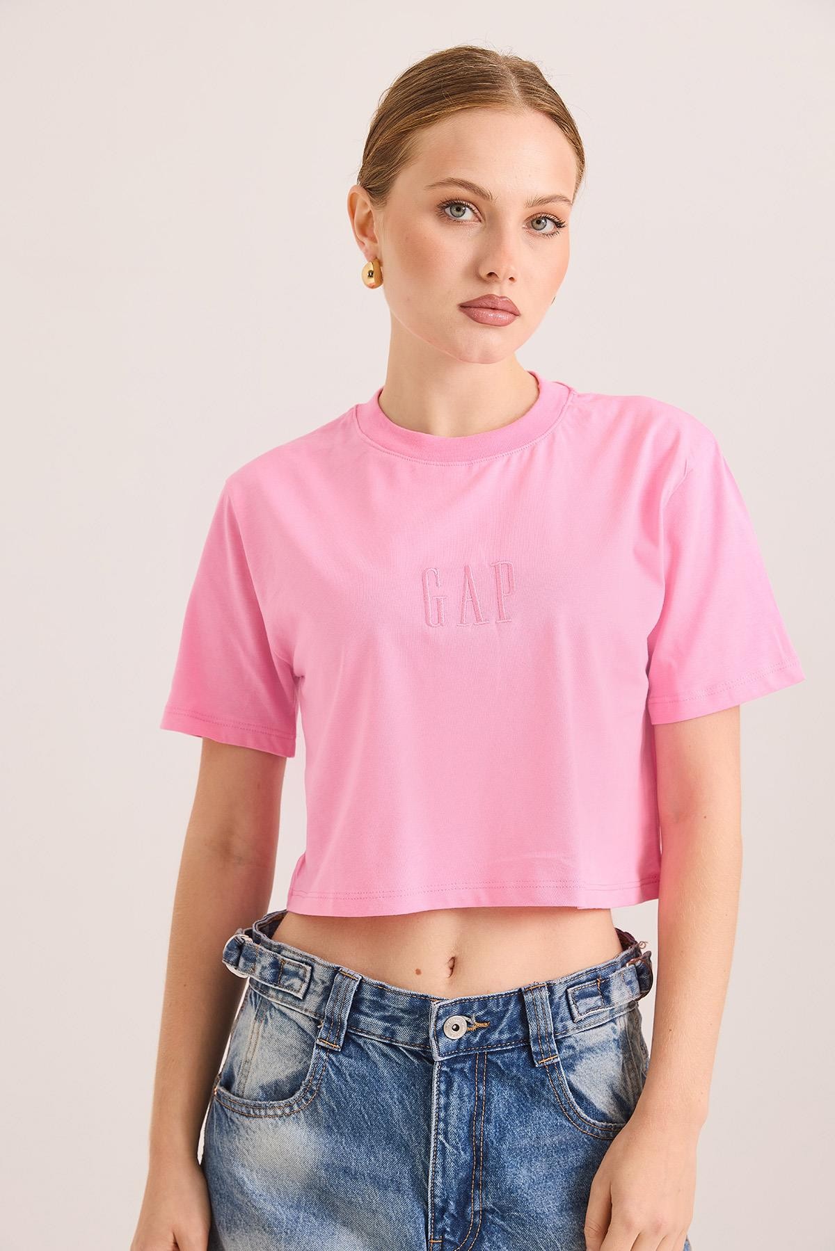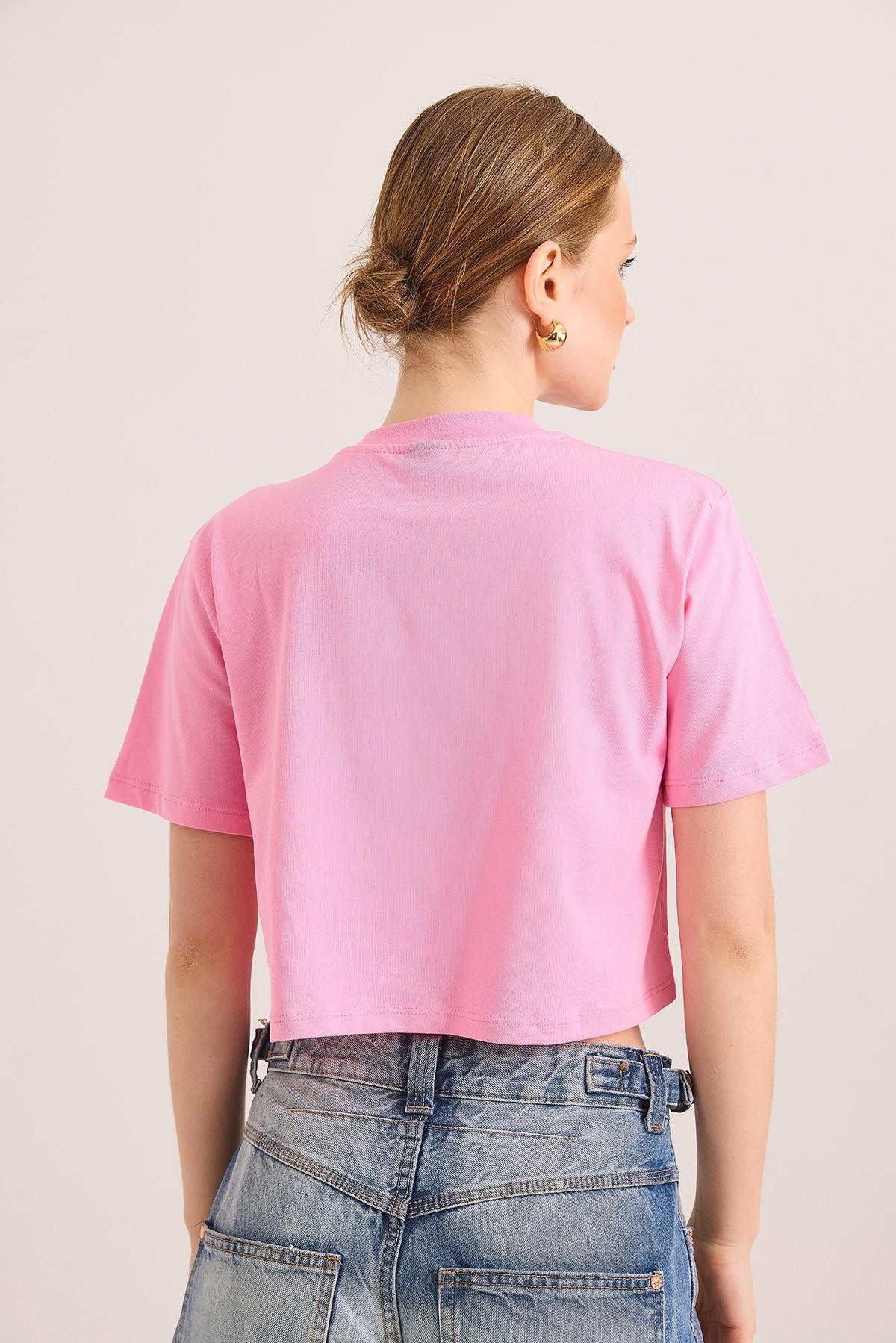 Nakışlı Örme Pamuk Crop Tshirt Pembe (250727TSHXPMB)