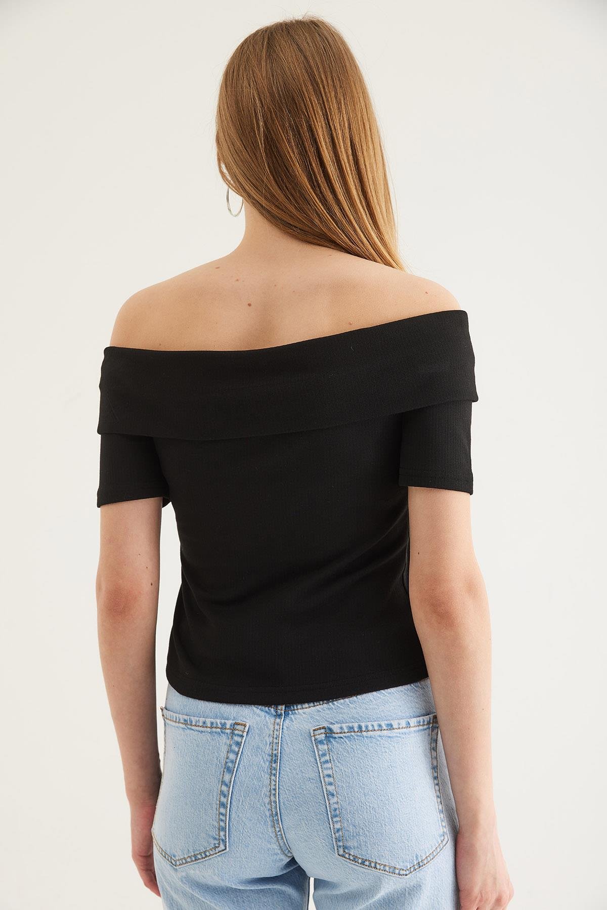 Omuz Açık Düğme Detaylı Bluz Siyah (250455BLZXSYH)