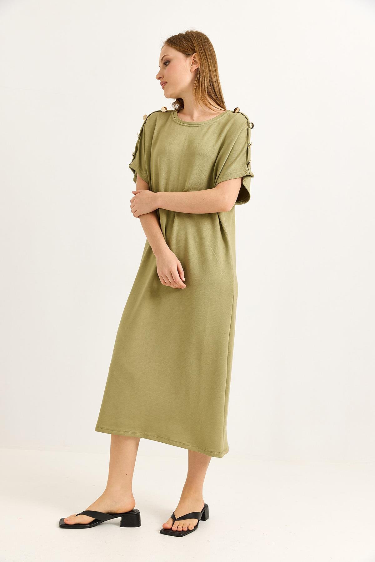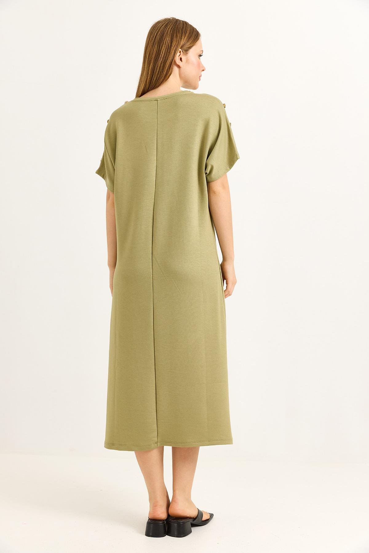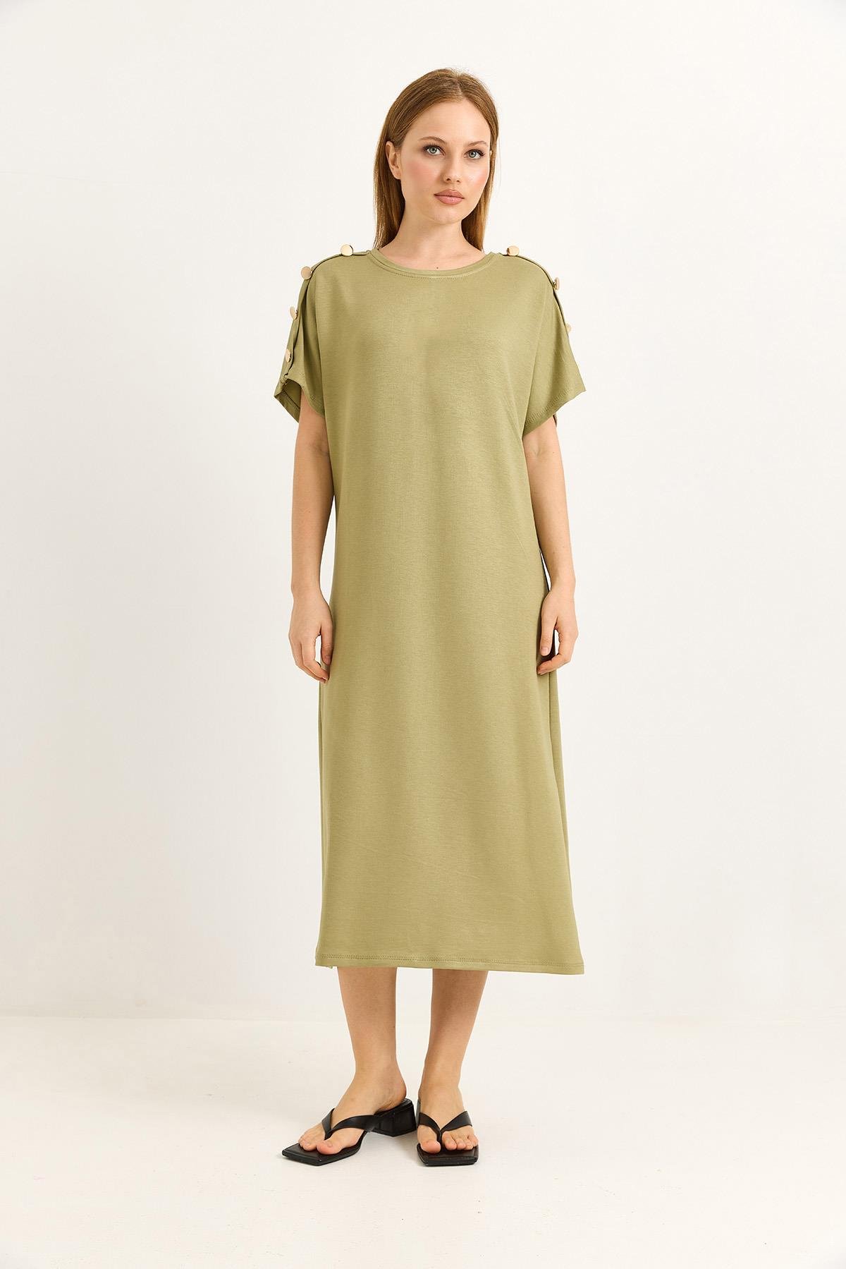 Omuzu Düğme Detaylı Dökümlü Elbise Yeşil (500218ELBXYŞL)