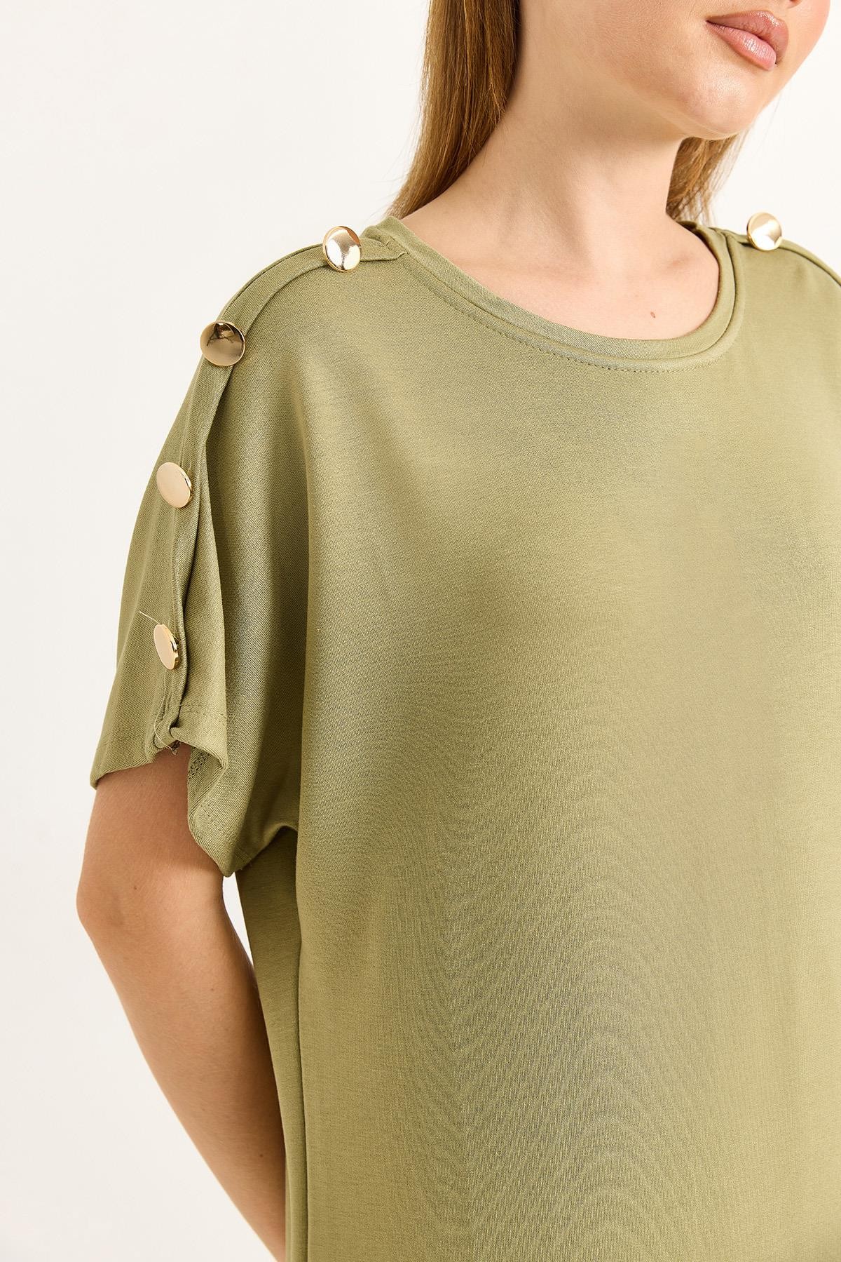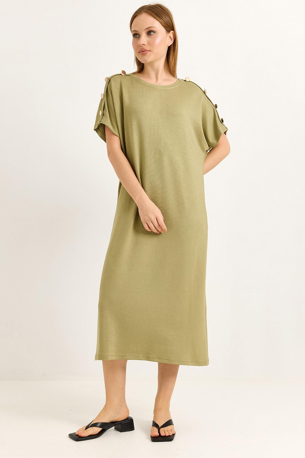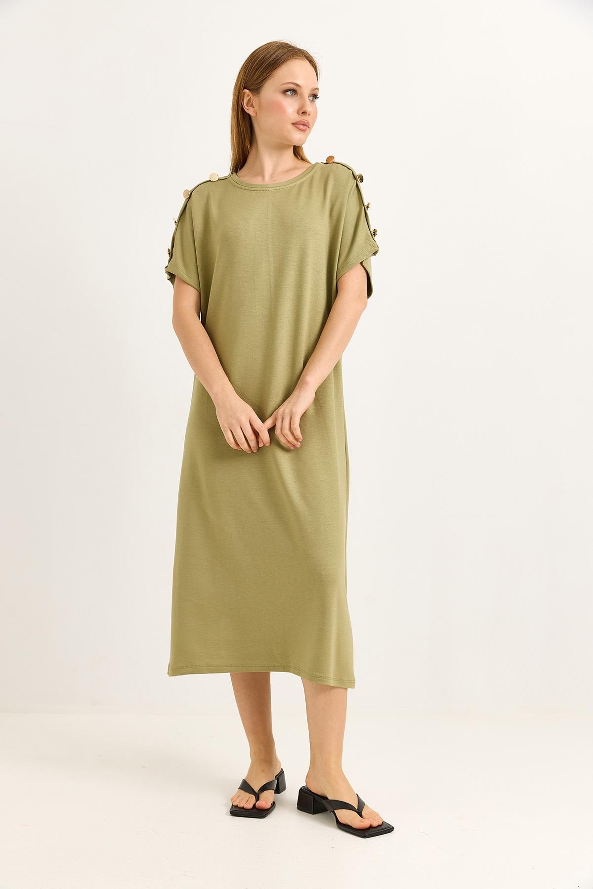 Omuzu Düğme Detaylı Dökümlü Elbise Yeşil (500218ELBXYŞL)